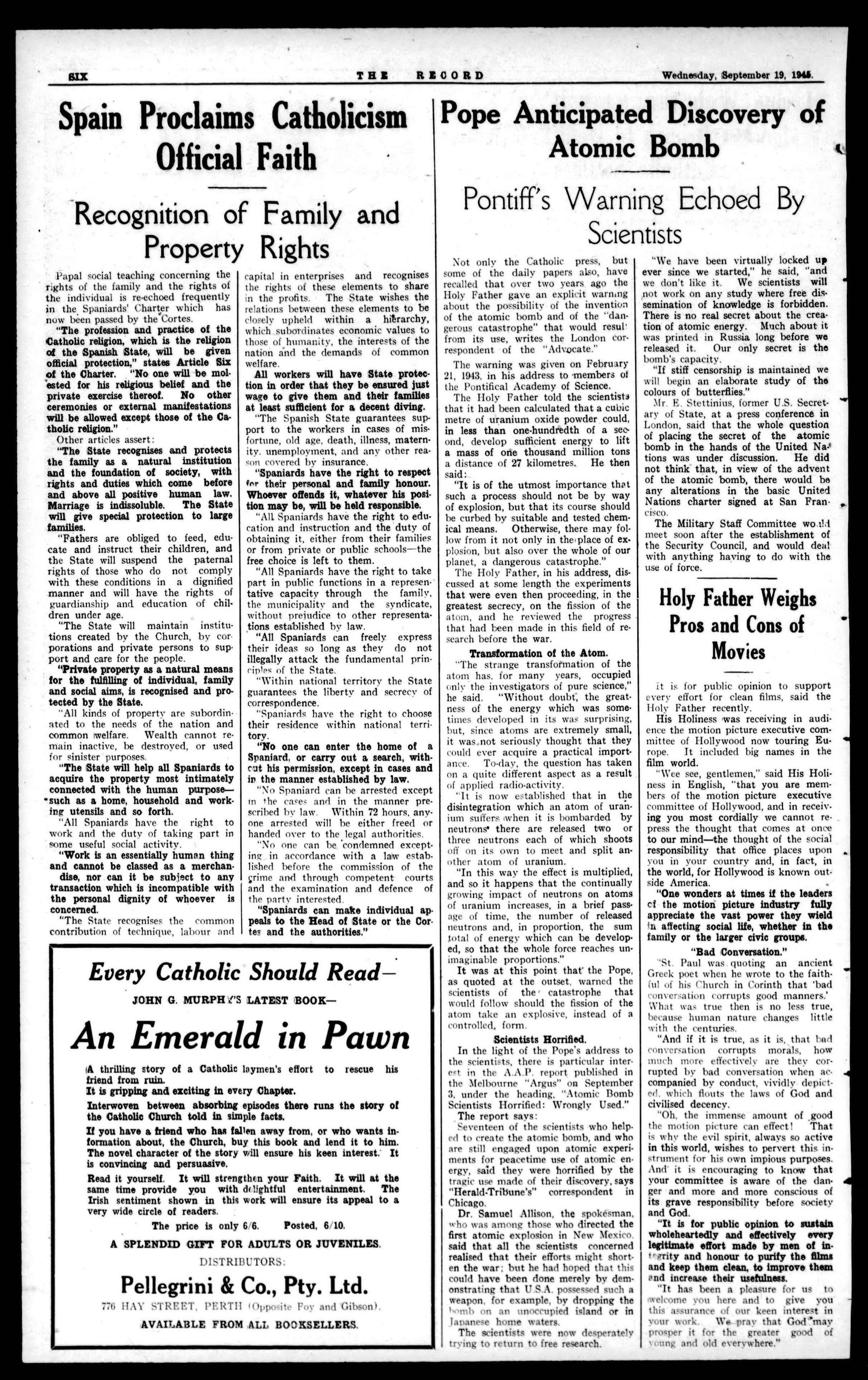 A.; This correspondent encloses a copy of an article purporting to have been printed in the Melbourne weekly paper,"The Tribune." It is simply another variation of the old chain-letter form ofsectarian attack on Catholics and their Church. These letters andspuriouspressarticles,representing