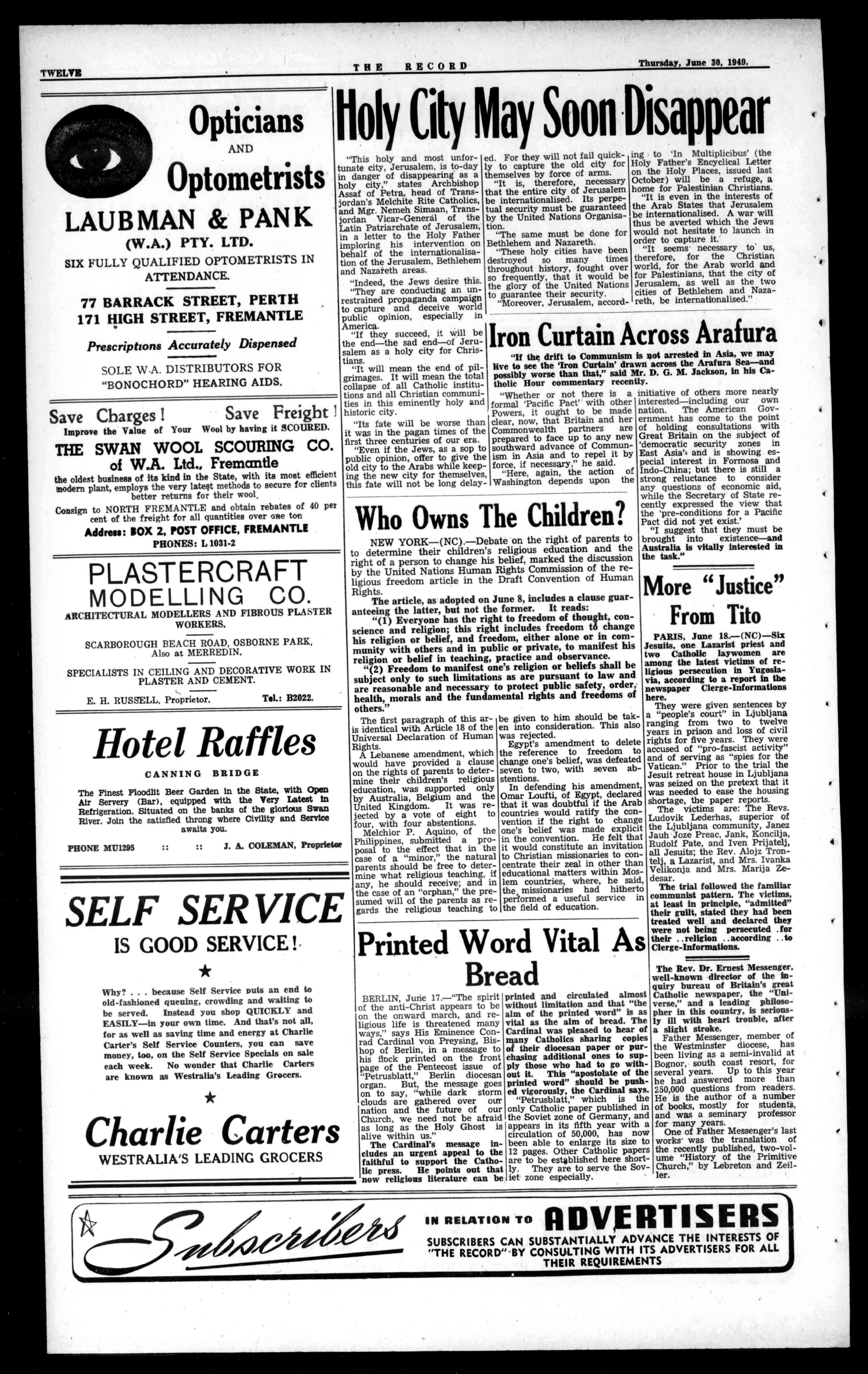 ZIP' Gt. RegisteredattheG.P.O., Perth,fortransmissionby postasanewspaper. NO.2,424. 'PhoneB6950 450HayStreet,Perth. BoxA35,G.P0. C* - "-14 C7 CCOT re ,g -7.3 c,1 ste--h, OfficialorganoftheArchdioceseofPerth. Established1874.