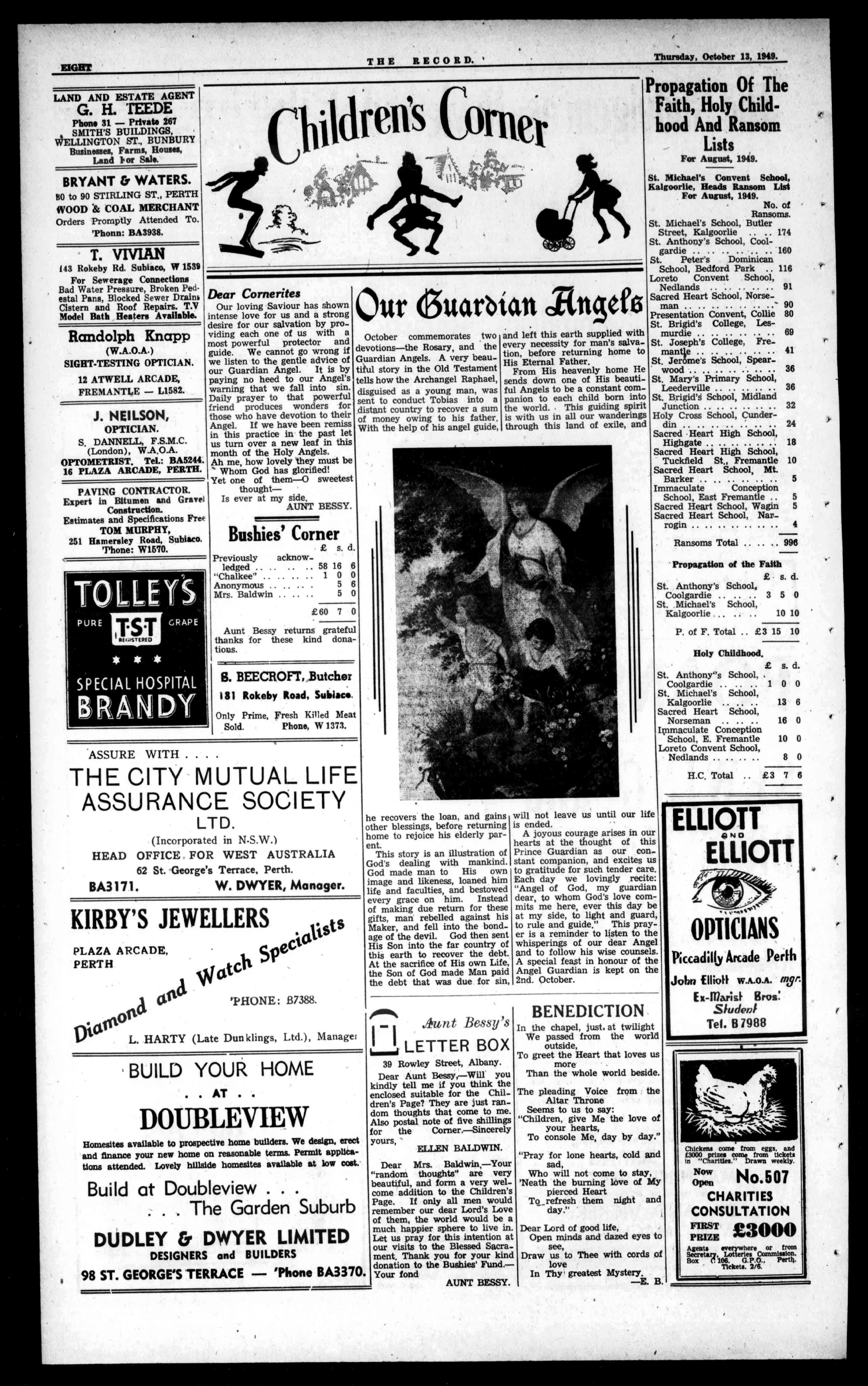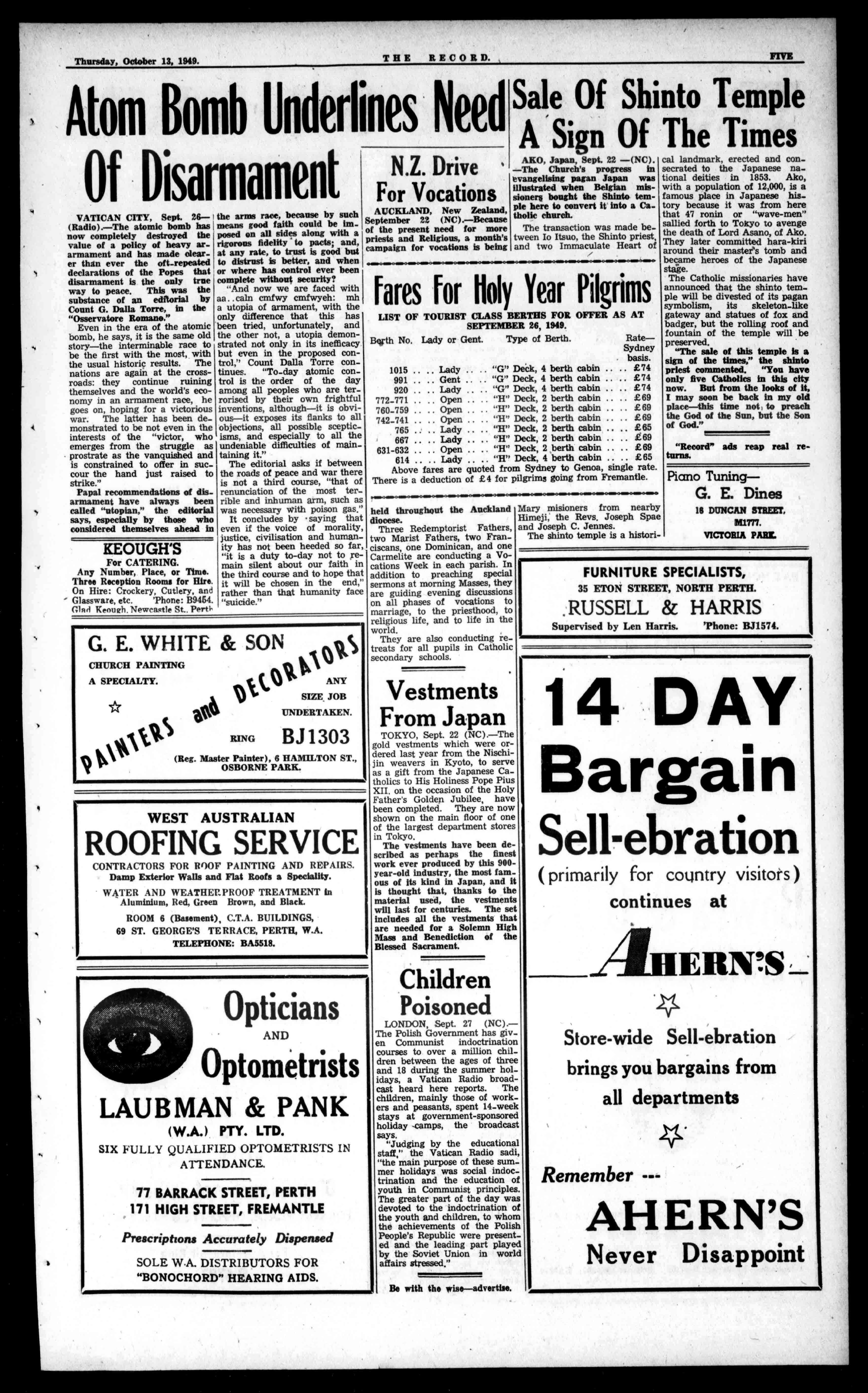 HayStreet,Perth. BoxA35,GPO. A- rear': .1?e. MT ti04:4it Acsr OffidalorganoftheArchdioceseofPerth. Established1874. THURSDAV, OCTOBER13,1949 Seventy-sixthYear. PriceThreepence I