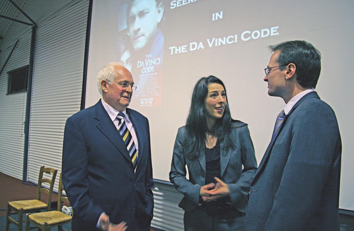 Decoders: Catholic Education Office of WA Director Ron Dullard, left, chats with Dr Kate Challis from Melbourne and Opus Dei spokesman Richard Vella at the special lecture organised by the University of Notre Dame Australia and The Record at UNDA’s Drill Hall last Thursday evening, May 25. An estimated 850 people turned out for the meeting. - SEE STORIES BELOW Photo: Paul