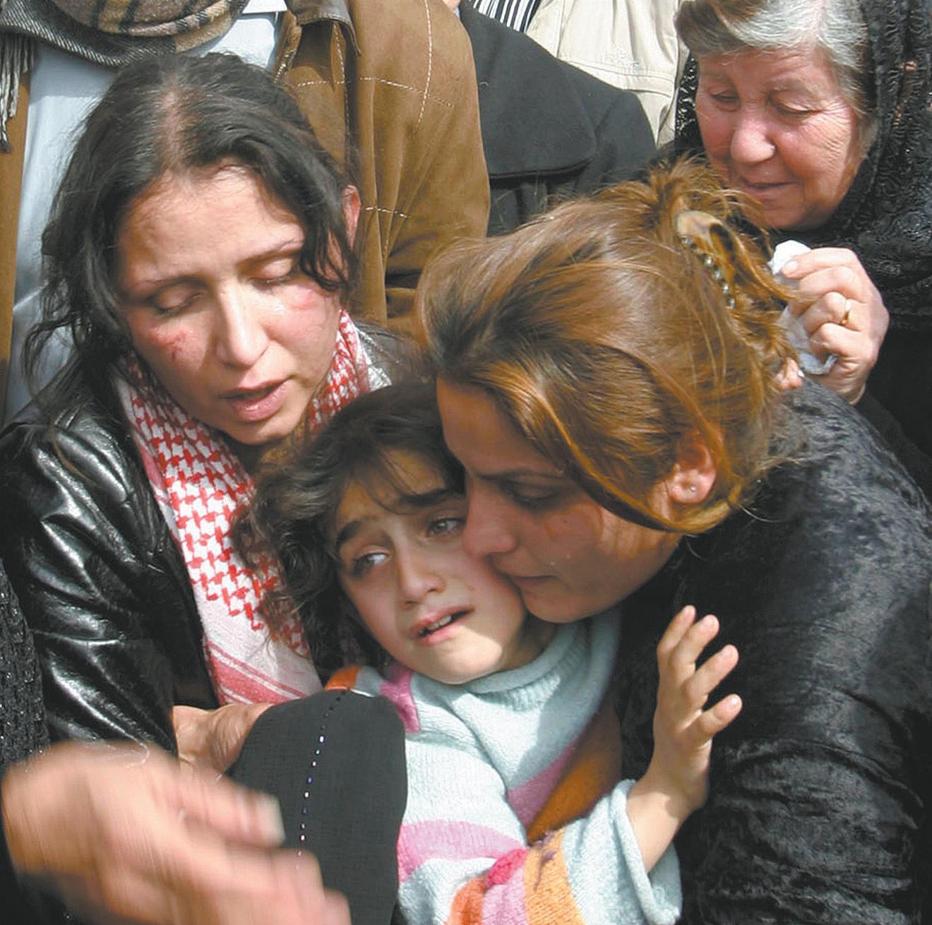 Grief: The daughter of a slain bodyguard is held by her mother, right, during his funeral in Mosul, Iraq, on March 1. The guard was among three men killed in the February 29 abduction of Mosul’s Chaldean Catholic Archbishop Paulos Faraj Rahho.