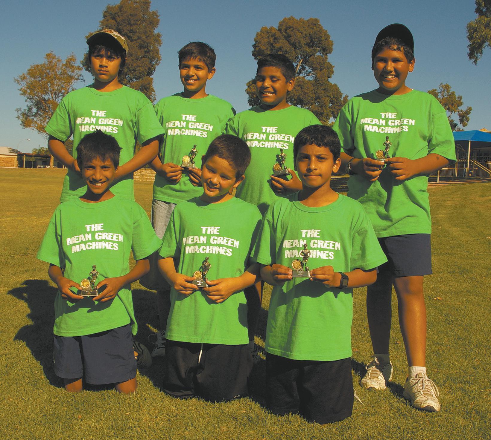 There were 64 young players battling it out on the oval of Sacred Heart Primary School with eight teams, including the Green Mean Machines and Red Backs in
