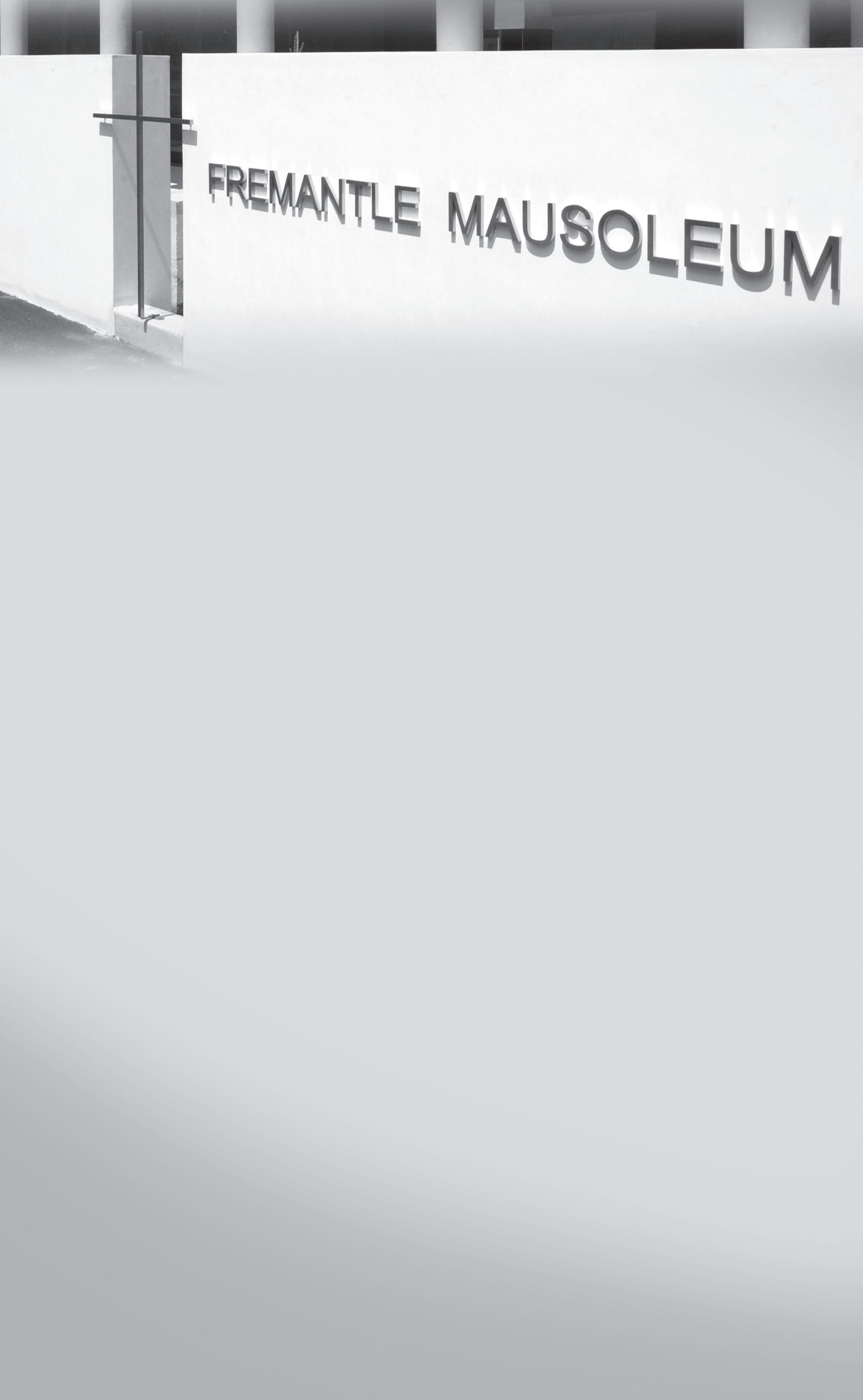 Please send me further information regarding Fremantle Mausoleum and register my details to be advised of upcoming spiritual events at the facility. Name:______________________________________________________________________________ Address:_____________________________________________________________________________ ____________________________________________________________Postcode:________________ Telephone: (home)___________________(work)_____________________(mobile)________________ Email: (if applicable) Please contact me to schedule an appointment (tick) Please send to: Client Services, Fremantle Cemetery, PO Box 53, Claremont WA 6910. EDITOR Peter Rosengren cathrec@iinet.net.au JOURNALISTS Anthony Barich abarich@therecord.com.au Sylvia Defendi sdefendi@iinet.net.au Paul Gray cathrec@iinet.net.au Mark Reidy reidyrec@iinet.net.au ADMINISTRATION Caroline Radelic administration@therecord.com.au ACCOUNTS Cathy