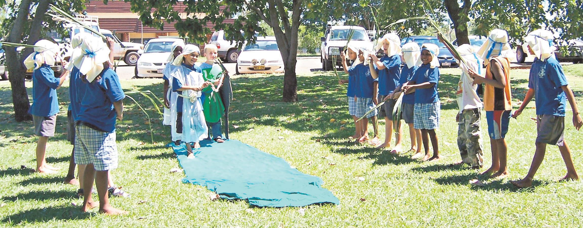 The powerful symbolism of Easter: At Warmun in the East Kimberley Gordon Barney washes Richard Thomas’s feet during the Holy Thursday Liturgy. Meanwhile, Francis Cann of Ngalangangpum school at Warmun concentrates on painting his Easter cross with ochre, a traditional paint of Kija country. Full story: Page 14