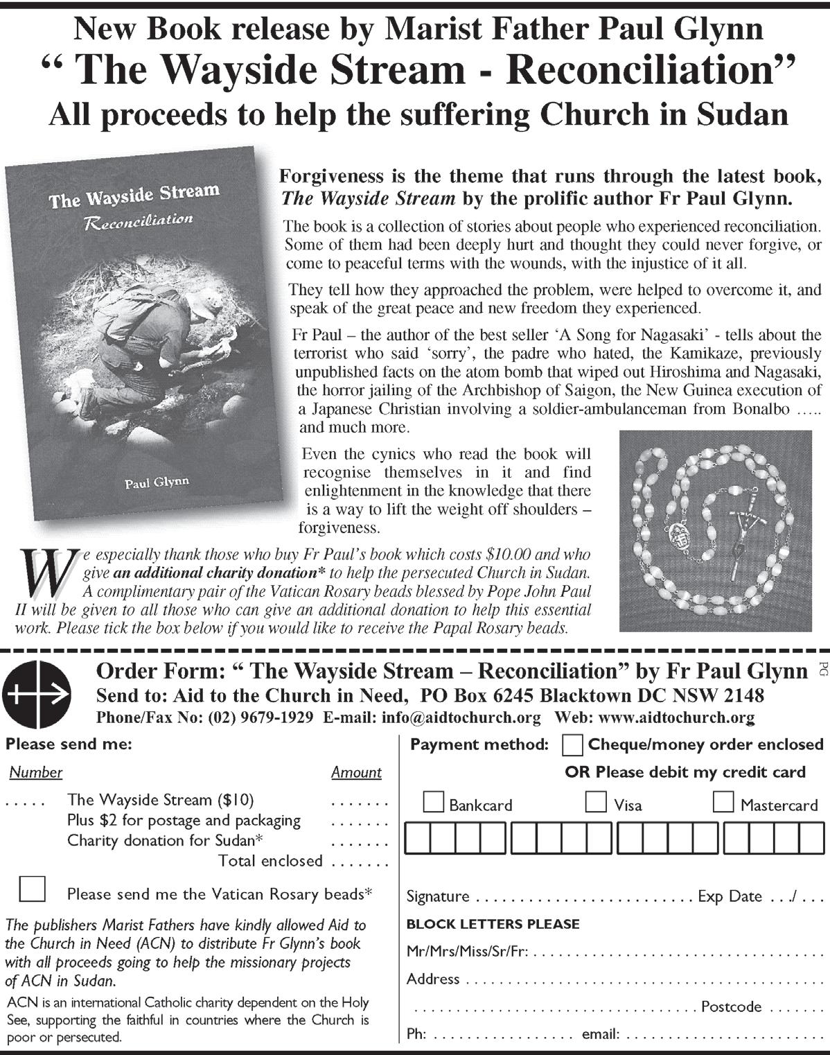 commence with Mass at 8.30am at St Anne’s Church, Hehir St, Belmont. We proceed prayerfully to the Rivervale Abortion Centre and conclude with rosary. Led by Fr Paul Carey SSC. Please join us to pray peacefully for the conversion of hearts. Enq: Helen 9402 0349.