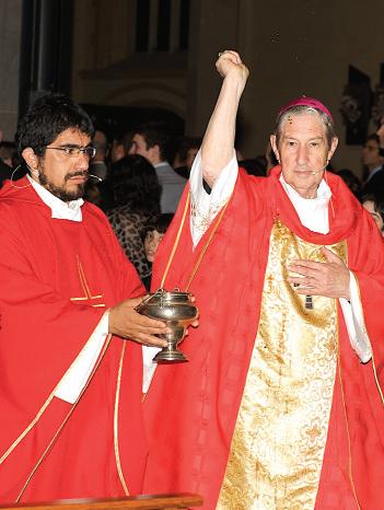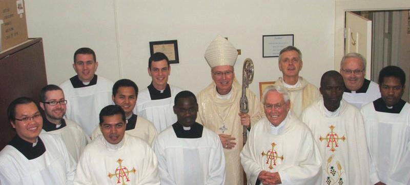 Francis Birrell, Thomas Zurich, Mark Baumgarten and Anibal Leite da Cunha were received as candidates for the priesthood by Archbishop Hickey at St Charles Seminary in Guildford.