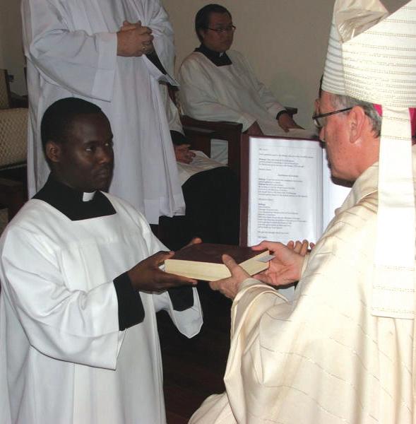 Then, on 18 June, Auxiliary Bishop Donald Sproxton bestowed the ministry of Lector to Francis Birrell, Mark Baumgarten, Trigo Ngoma, Simeon San, Cyprian Shikokoti and Conor Steadman and the ministry of Acolyte to Francis, Natale Florio and Quy Lam at St Charles Seminary.