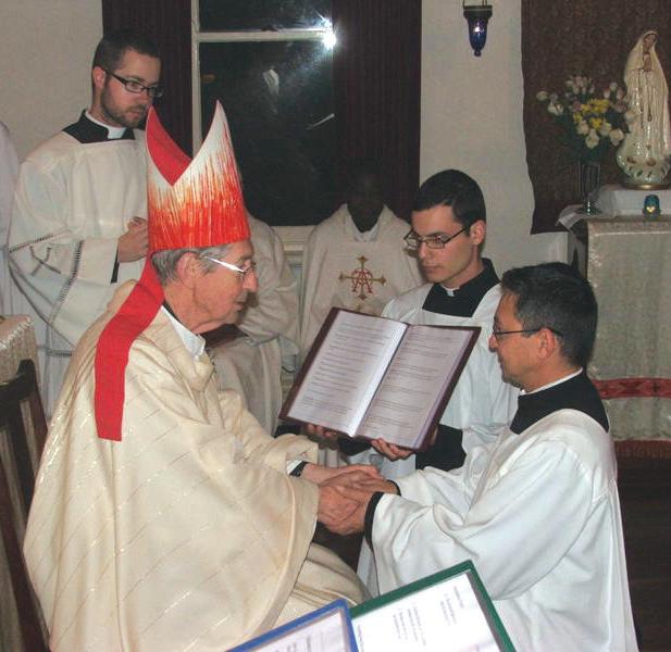In specially instituting these six young men to this ministry, they will strive to increase their efforts in acquiring an increasingly warm love and deeper knowledge of Sacred Scripture to assist their proc-