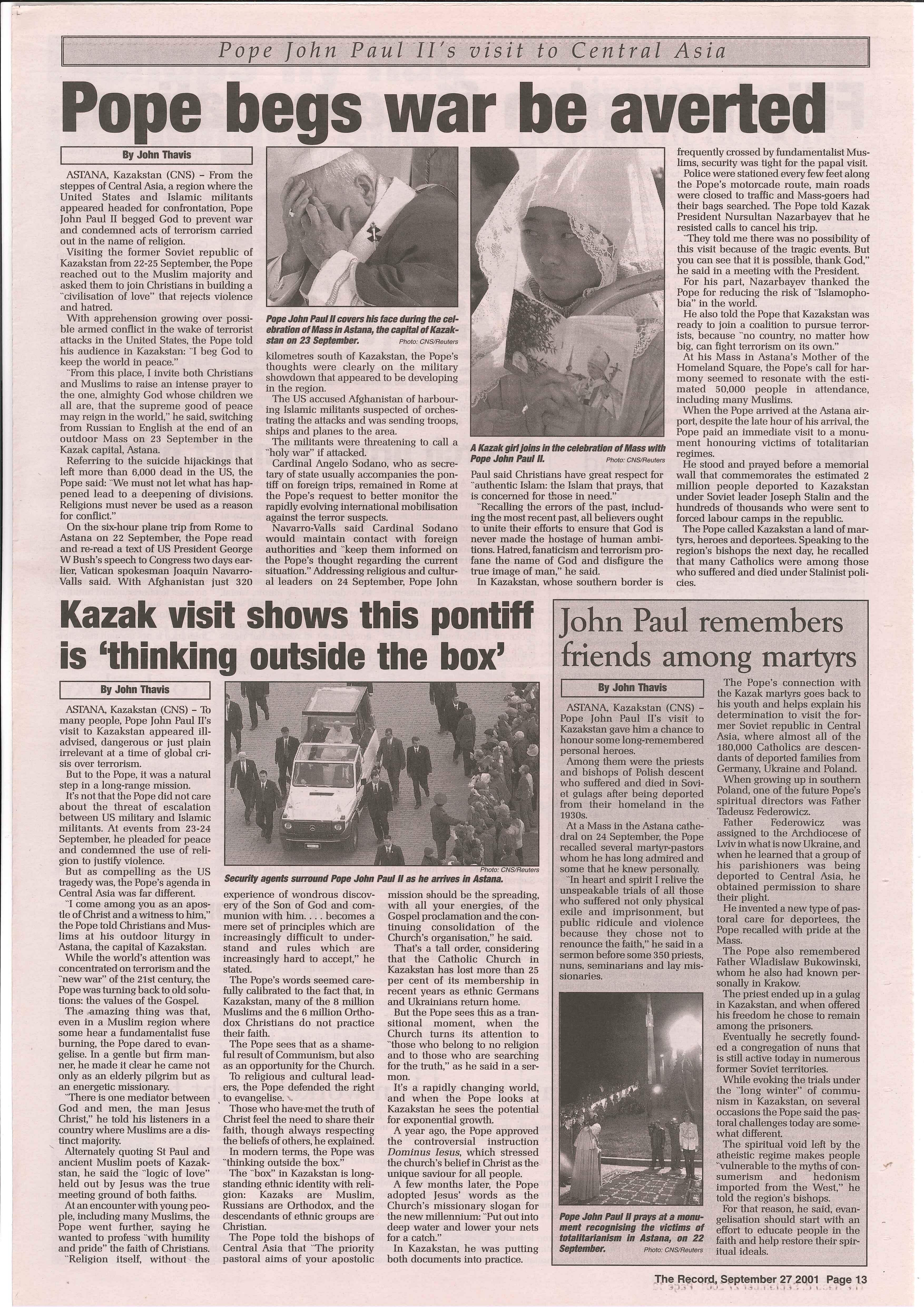 The Record Newspaper 27 September 2001