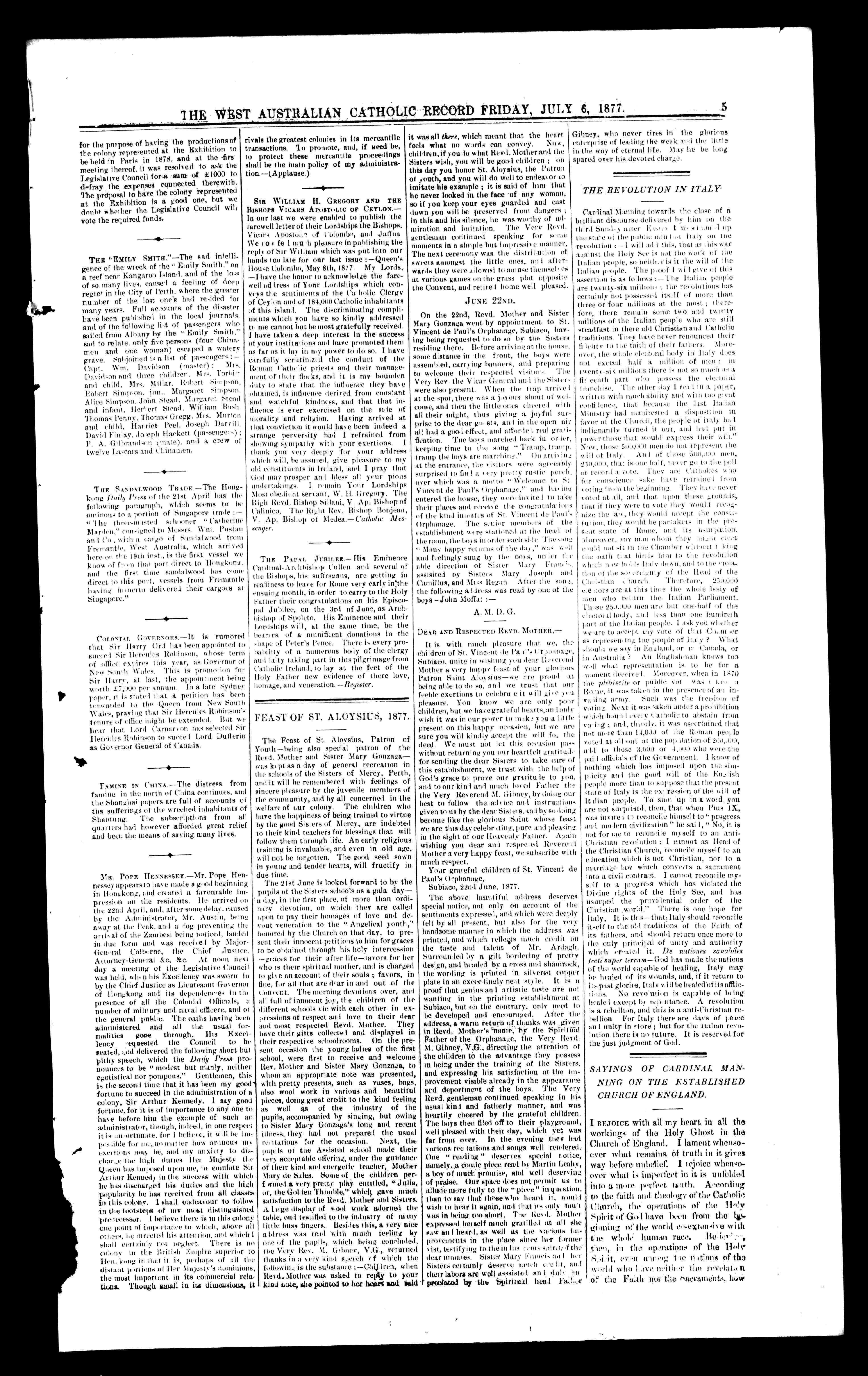 TheFeastofSt.Aloysius,Patronof Youth-beingalsospecialpatronofthe Revd.MotherandSisterMaryGonzagawaskeptasadayofgeneralrecreationin theschoolsoftheSistersofMercy,Perth, antiitwillberememberedwithfeelingsof sincerepleasurebythejuvenilemembersof thecommunity,andbyallconcernedinthe welfareofourcolony.'ritechildrenwho havethehappinessofbeingtrainedtovirtue bytheleantSistersofMercy,areindebted totheirkindteachersforblessingsthatwill followthemthroughlife.Anearlyreligious trainingisinvaluable,andeveninoldage, willnotheforgotten.Thegoodseedsown inyoungandtenderhearts,willfructifyin duetime.