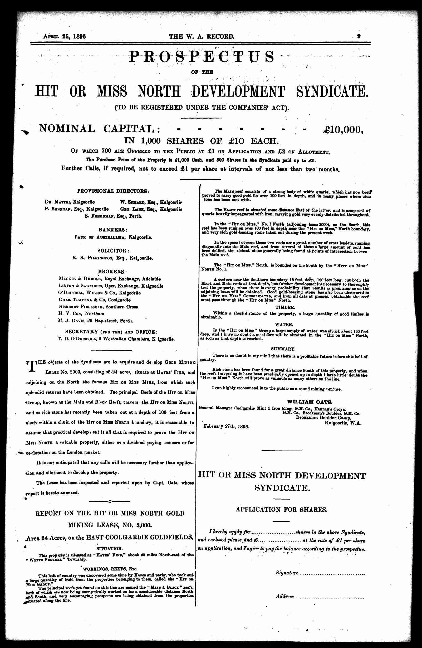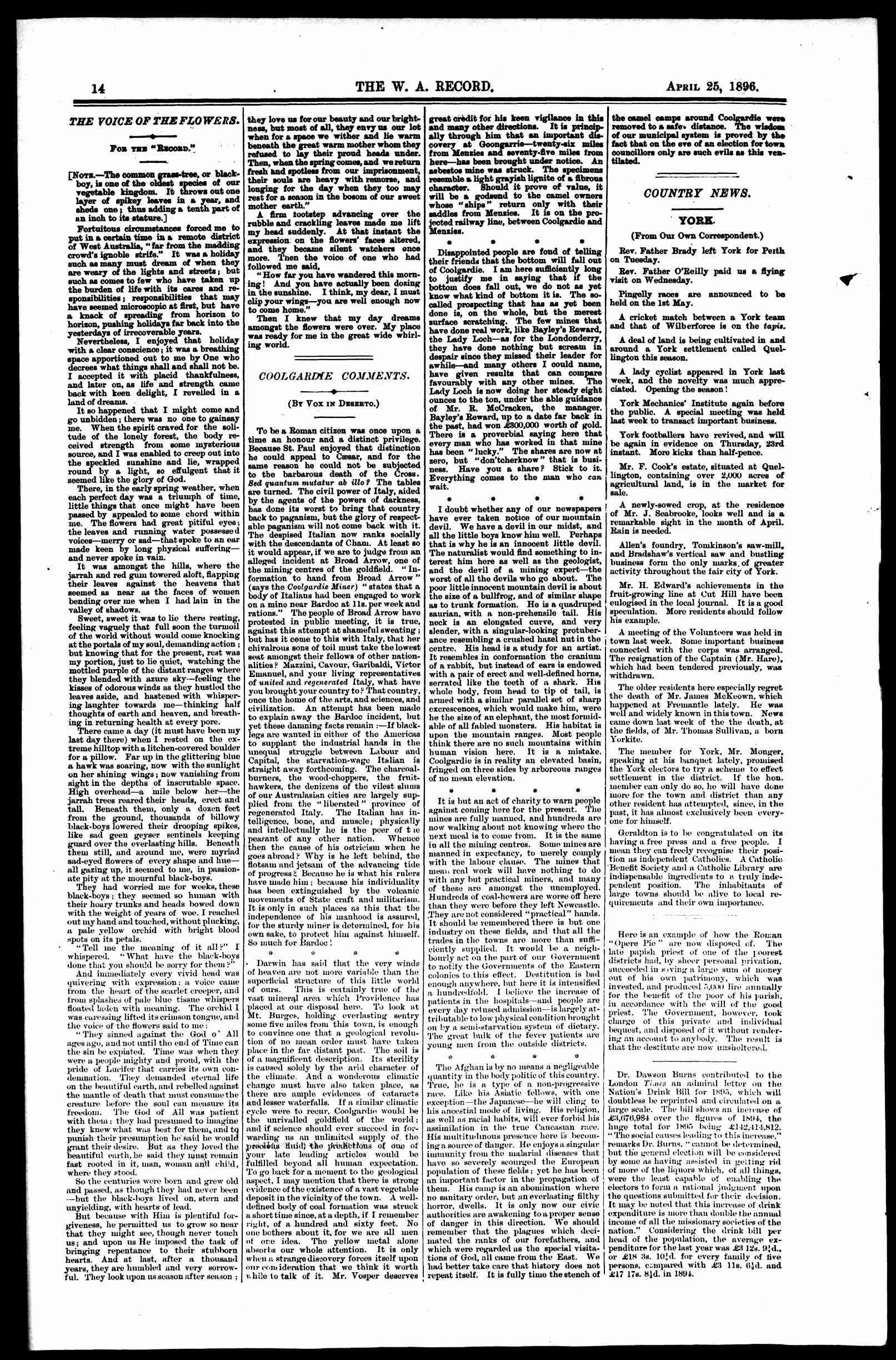 The Record Newspaper 25 April 1896
