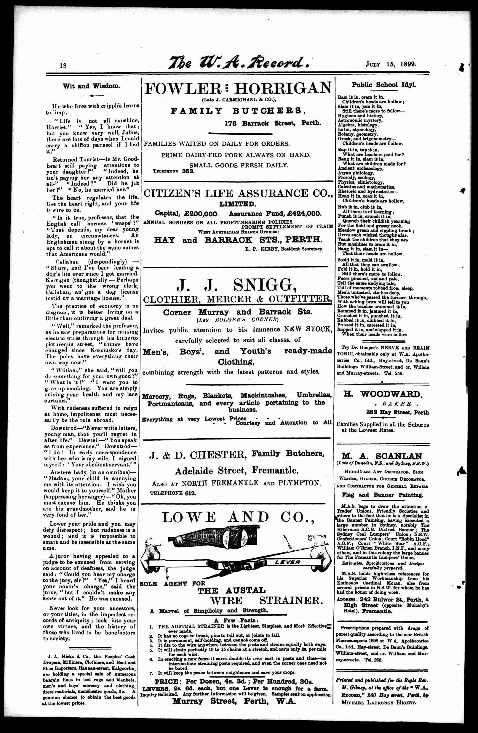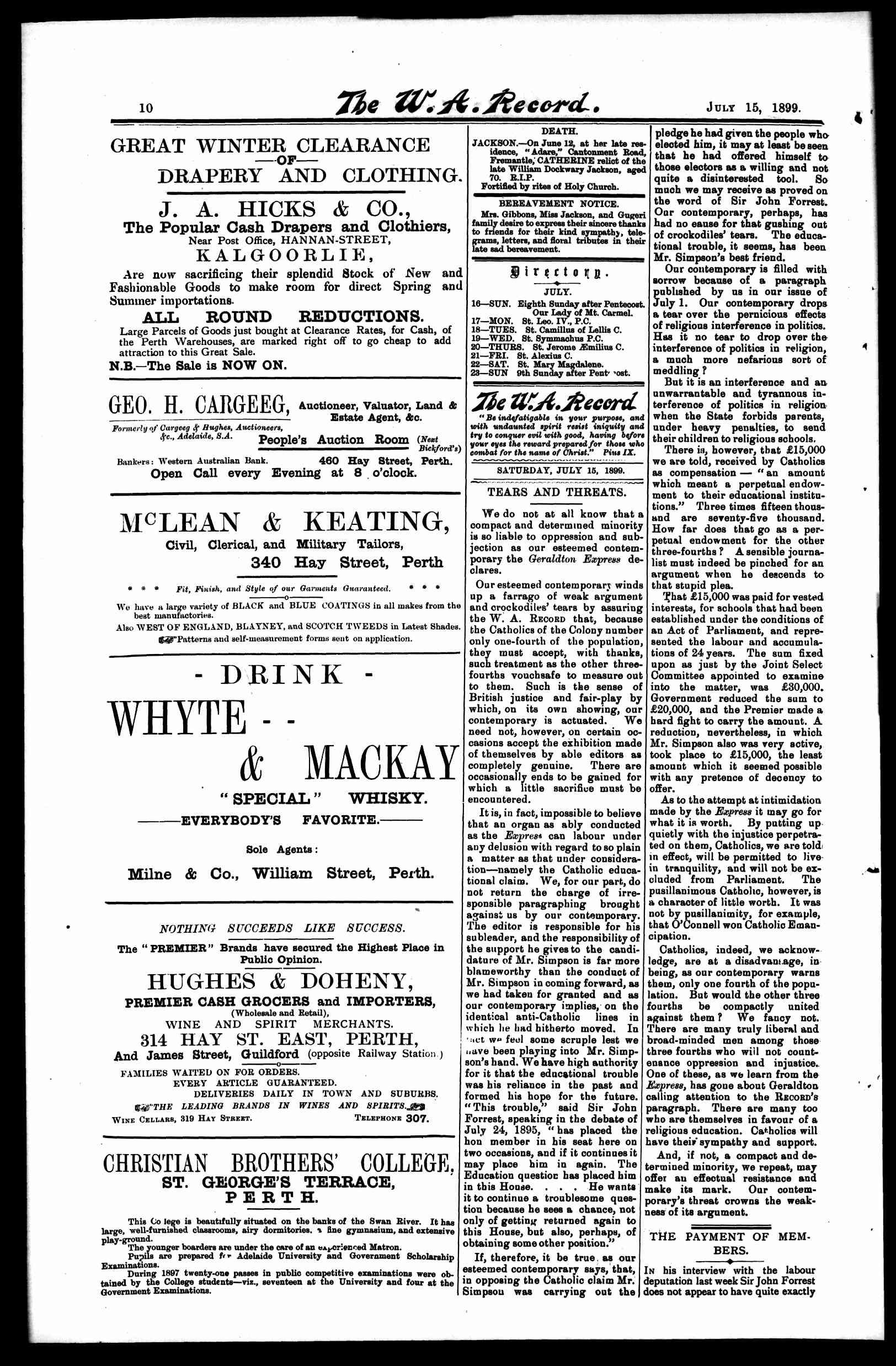 The Record Newspaper 15 July 1899