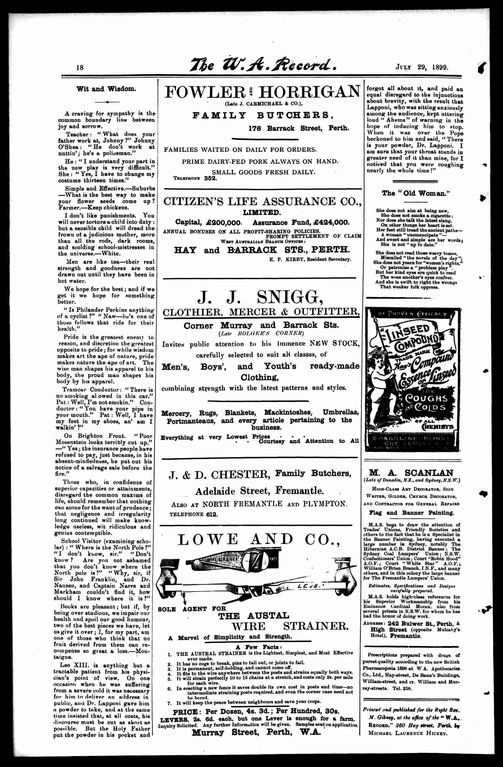 The Record Newspaper 29 July 1899