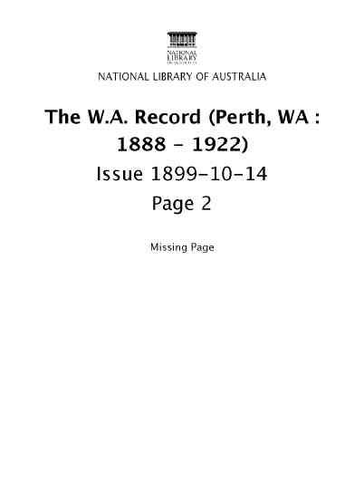The Record Newspaper 14 October 1899