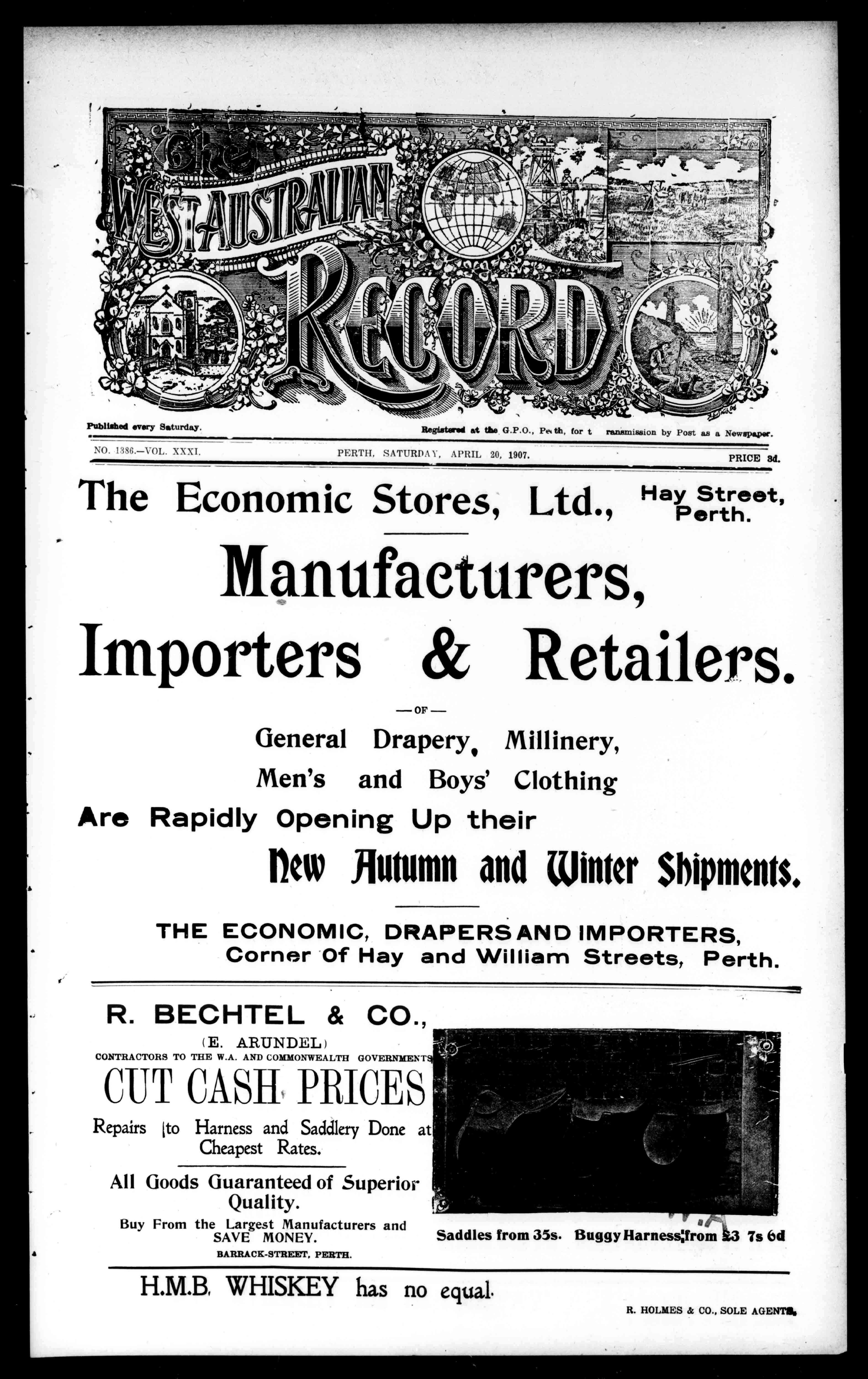 MR.P.F.RYANwishestonotifyinenteringtheTenthyearofhis EstablishmentinWesternAustralia.hestillintendstodevotehistimeand attentiontocateringingoodliteraturefortheCatholicPublicoftheState tothesamestandardashitherto.liehasalwaysthefirstofeverything newinCatholicorNationalLiteraturetoarriveinAustralia,asthean- SANTAROSAWINECOMPANY,nouncementspublishedinthecolumsofthispaperfromtimetotimetestify HehasalsoastockofGoodSecularLiterature,aswellastheLatest Magazines,ReviewsandNewspapers,beingSpecialAgentformostofthem. HewouldSpeciallyDrawAttentiontohisUp-to-dateStockofCatholic andNationalMagazinesandNewspapers.includingAmericanPublications. ThefollowingarealwaysinStockaswell:BARRACKSTREET,PERTH. Crucifixes,Rosaries,Medals,Scapulars,Statues,HolyWater Fonts,AltarBreads,AltarCharts,Monstances,Incense,Charcoal,Thuribles AltarCruets,MissalsandStands,AltarCandlesticks,Floats,'rapers,Pure WaxCandles,RosaryTickets,HolyOilStocks,Pyxes,SancturyLamps. HolyWaterVesselandSprinkler,AltarVases,HolyPictures,GelatinePic- tures(alsoblankforpaintingon),LacePictures,etc.PrayerBooks(hund- redstochoosefrom)2d.to21s.each,andaCatholicHousetobuyfrom. Biblesfrom5s.to25: