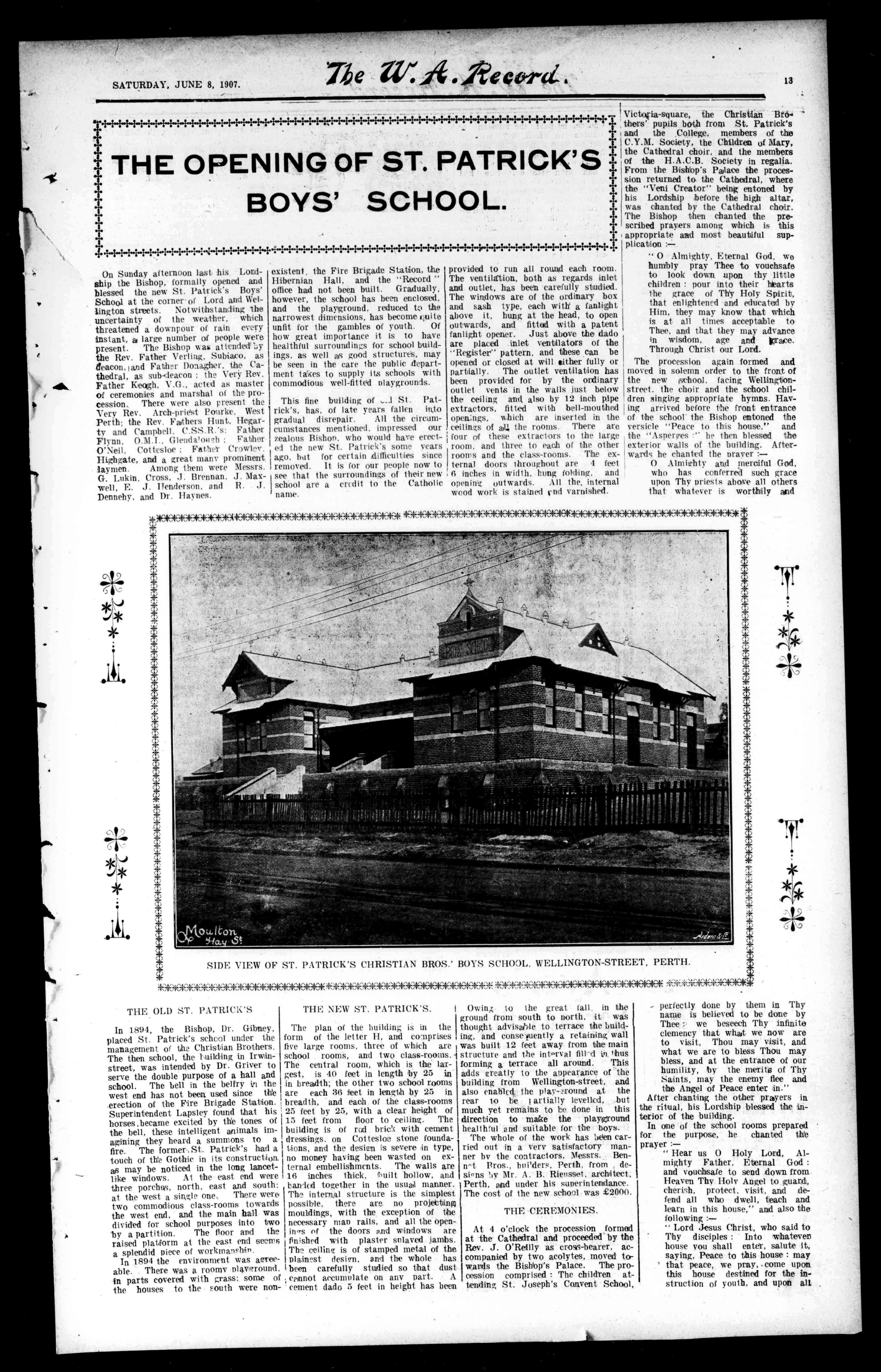 PrintedandPublishedfor"TheWest AustralianRecordandCatholic PrintingandPublishingCompany, Limitr.d."atMtirrav-street.Perth. byMichaelLaurenceHickey.