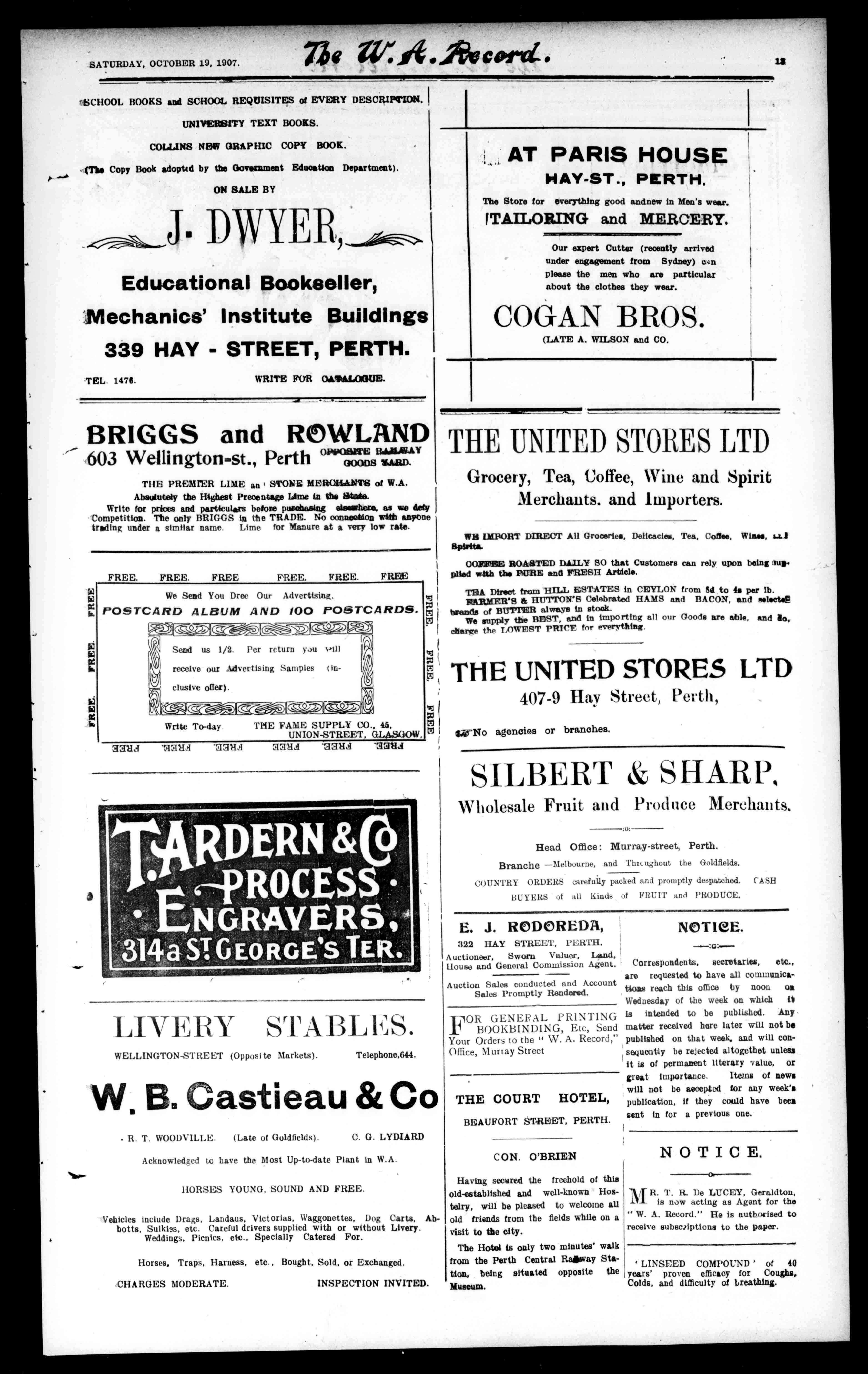 TheEconomicStores,Ltd.,HaypeTttirleet, Shenton'sNewCorner,Perth. OURNE«BUILDINGANEWSTANDARDOFVALUE,MAGNIFICENTFITTINGSandENVIRONMENT. EXPERTSERVICE. NEW METHODS.HIGHESTREGARD FOR YOURBESTINTERESTS.BETTEREQUIPMENTTHANATANYOTHERTIMEOFOURHISTORY FORTHEPROMPTANDSYSTEMATICEXPEDITINGOFBUSINESS.