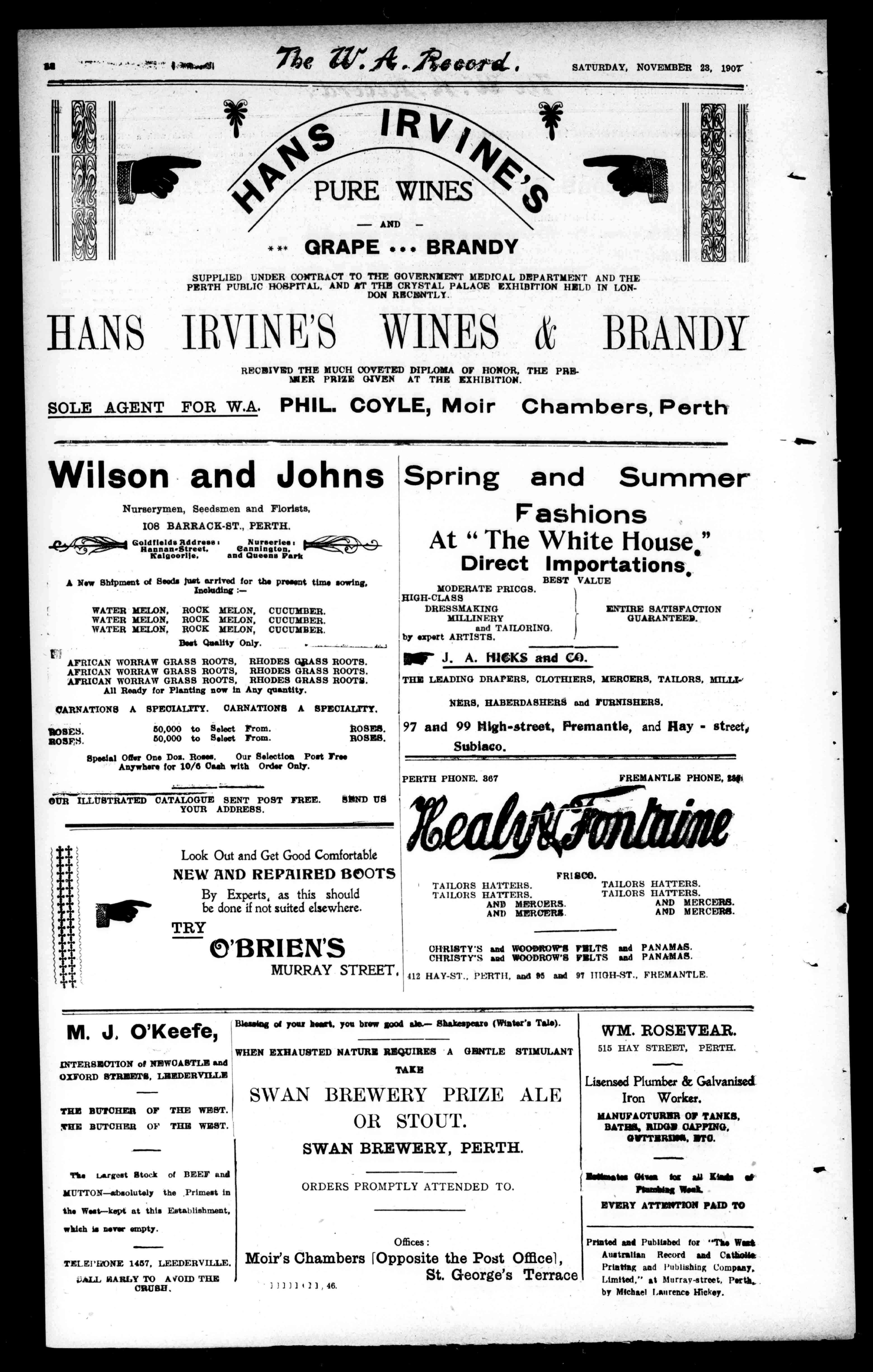 E.S.WIGGandSON,BOOKSELLEIRS,STATIONERS.PRINTERS.and BOOKBINDERS,HAYSTREET,PERTH,andatKALGOORLIE. TELEPHONE208.