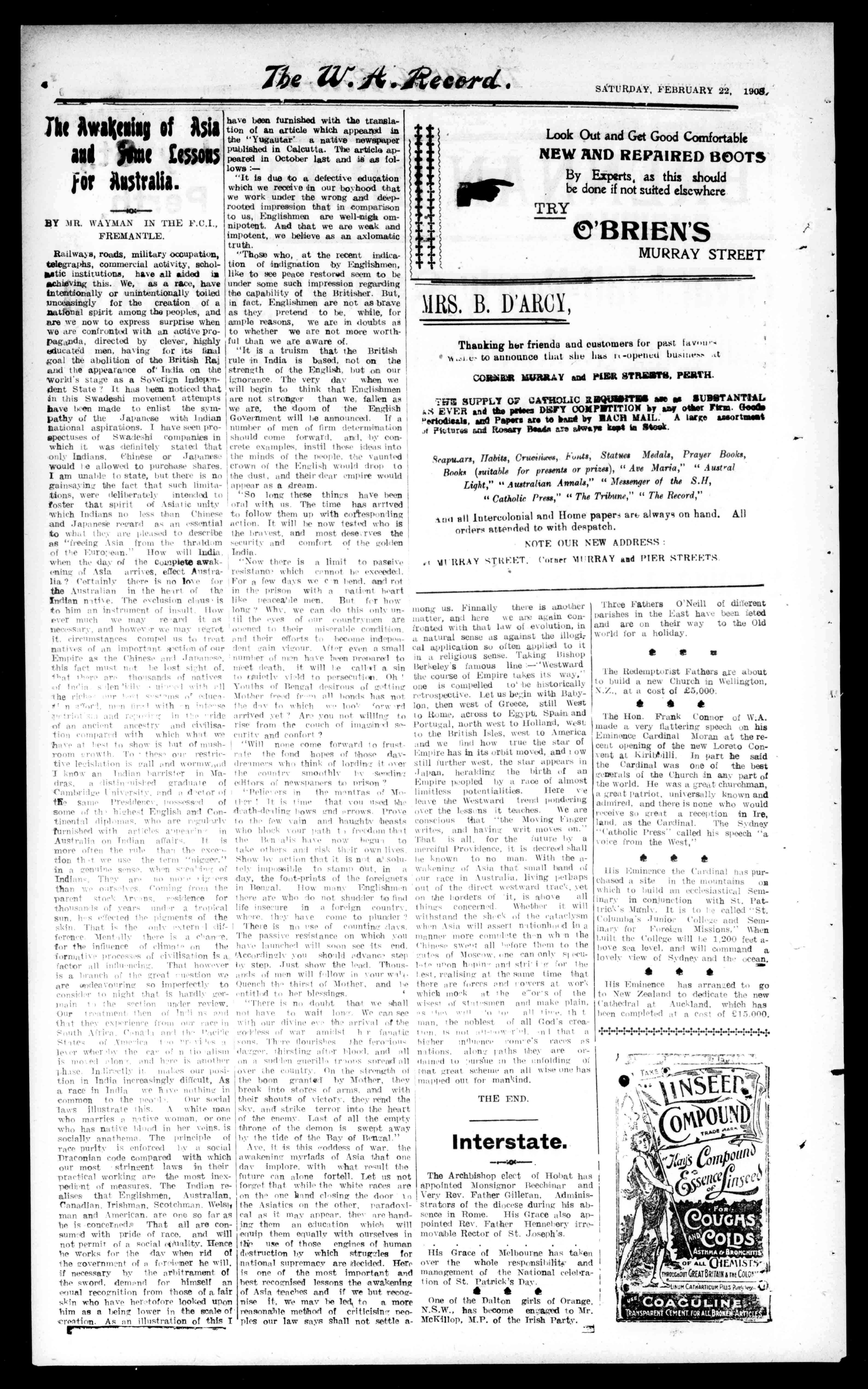 Railwaya,roads,militaryoccupation, telegraphs,commercialactivity,soholMtfC haveallaidedin InhiPingthis.We,asarace,have Intentionallyorunintentionallytoiled unceasinglyforthecreationofa natitinalspiritamongthepeoples,and Ianwenowtoexpresssurprisewhen weareconfrontedwithanactivePropaganda,directedbyclever,highly educate'dmen,havingforitsfinal goaltheabolitionoftheBritishRaj andtheappearanceof`Indiaonthe 'world'sstageasaSoverignIndependentState?Ithasbeennoticedthat tinthisSwadashimovementattempts havebeenmadetoenlistthesympathyoftheJapanesewithIndian nationalaspirations.IhaveseenproepectusesofSwaleshicompaniesin whichitwasdefinitelystatedthat onlyIndians,ChineseorJapanese Wouldleallowedtopurchaseshares. Iamunabletostate,butthereisno gainsayinethefact.thatsuchlimitations,weredeliberatelyintendodto fosterthatspiritofAsiaticunity 'whichIndiansnolessthanChinese andJapaneserecentasanessential tow,h:t1the.,areicle.iseiltodescribe as"freeingAsiafromthethrektim oftheleiroeettn."Howwillbides. whenthedayetthecompleteawakeningofAsiaarrives,effectAestraHa?Cortainlythereisnolot,cm, theAtisttalianintheheistofthe Kristiannetie.The,'elisionetcns,is tohimonin,trumentofinsult.Hew evernotchwemayre'andItas necessary,andhowevrwemaysecret it.circumstancesCompelns1,treatandtheireffortsto