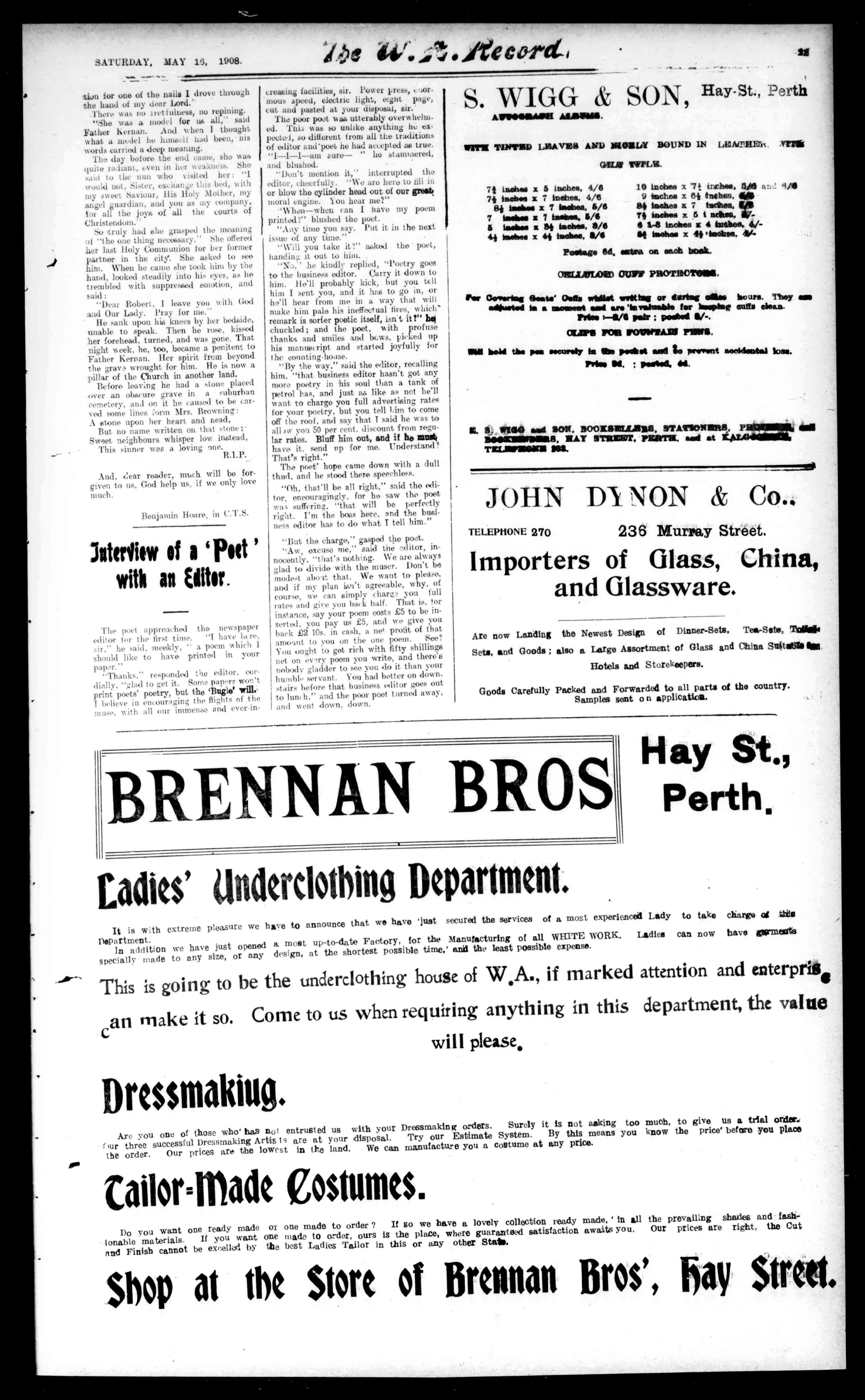 "Aw,excuseme,"saidtitleeditor,innocently."that'snothing.Wetirealways gladtodividewiththemaser.Don'tbe modestaboitthat.Wewant.toplease, andifmyplanisn'tagreeable,why.of course,wecansimplycliaryyoufull ratesandgiveyenbackhalf.Thatis.for instance,sayyourpoemcosts£5tobeinserted.youpayus£5,andwegiveyou back£210s.incash,anetprofitofthat amounttoyouontheonepoem.See? Yououghttogetrichwithfiftyshillings netonev..rypoemyouwrite,andthere's nobodygladdertoseeyoudoitthanyour humbleservant.Youhadbetterondown. stairsbeforethatbusinesseditorgoesout toLunth,"andthepoorpoetturnedaway, andwentdown,down.