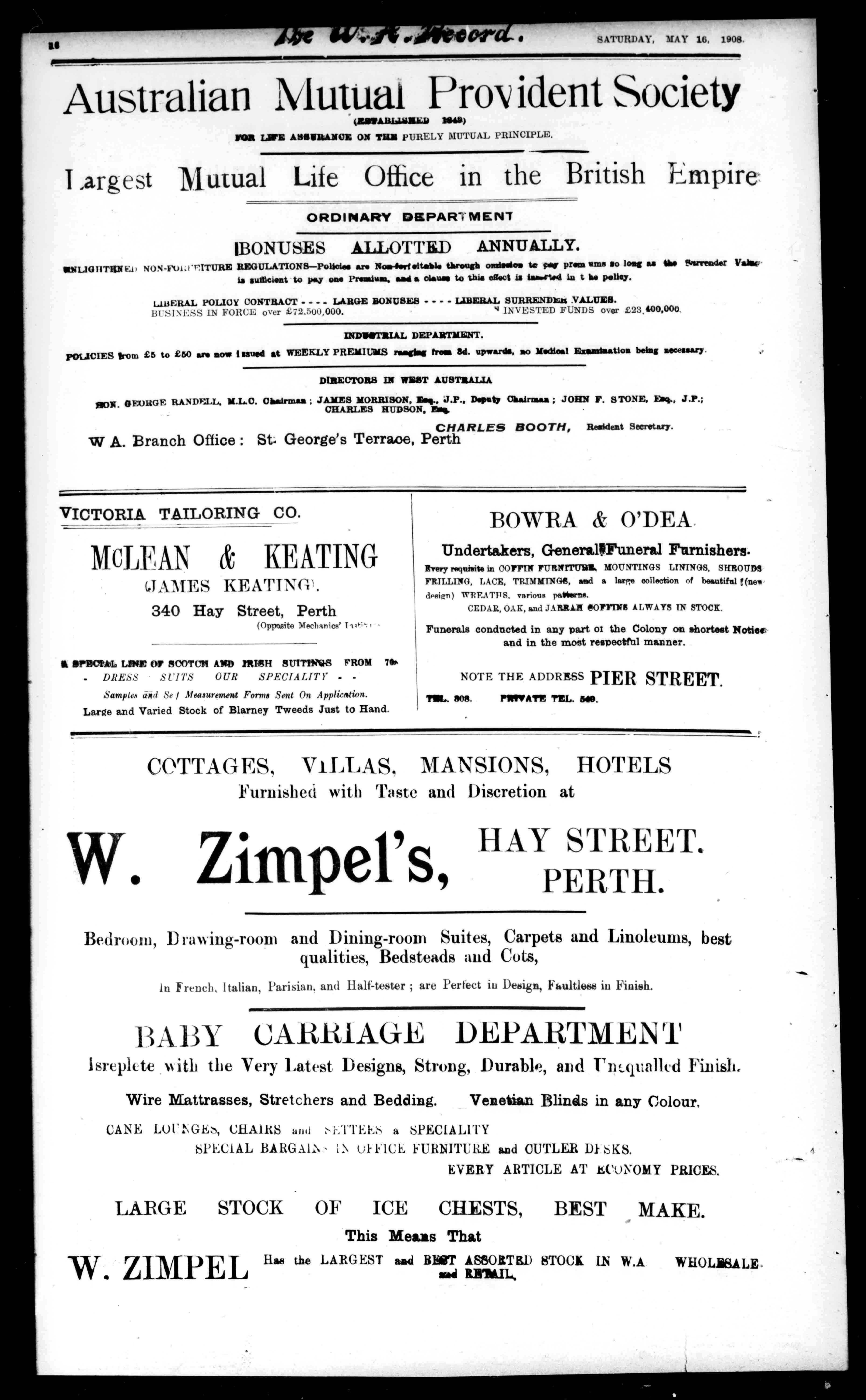 PientedandPubltshedfor"TheWes. AurtratianRecordavidCathello INIndsgeelPnhlisbingCompaey. (,sashed,"atMorrav-street.Perth... WillehaelLawrencemay. Oak