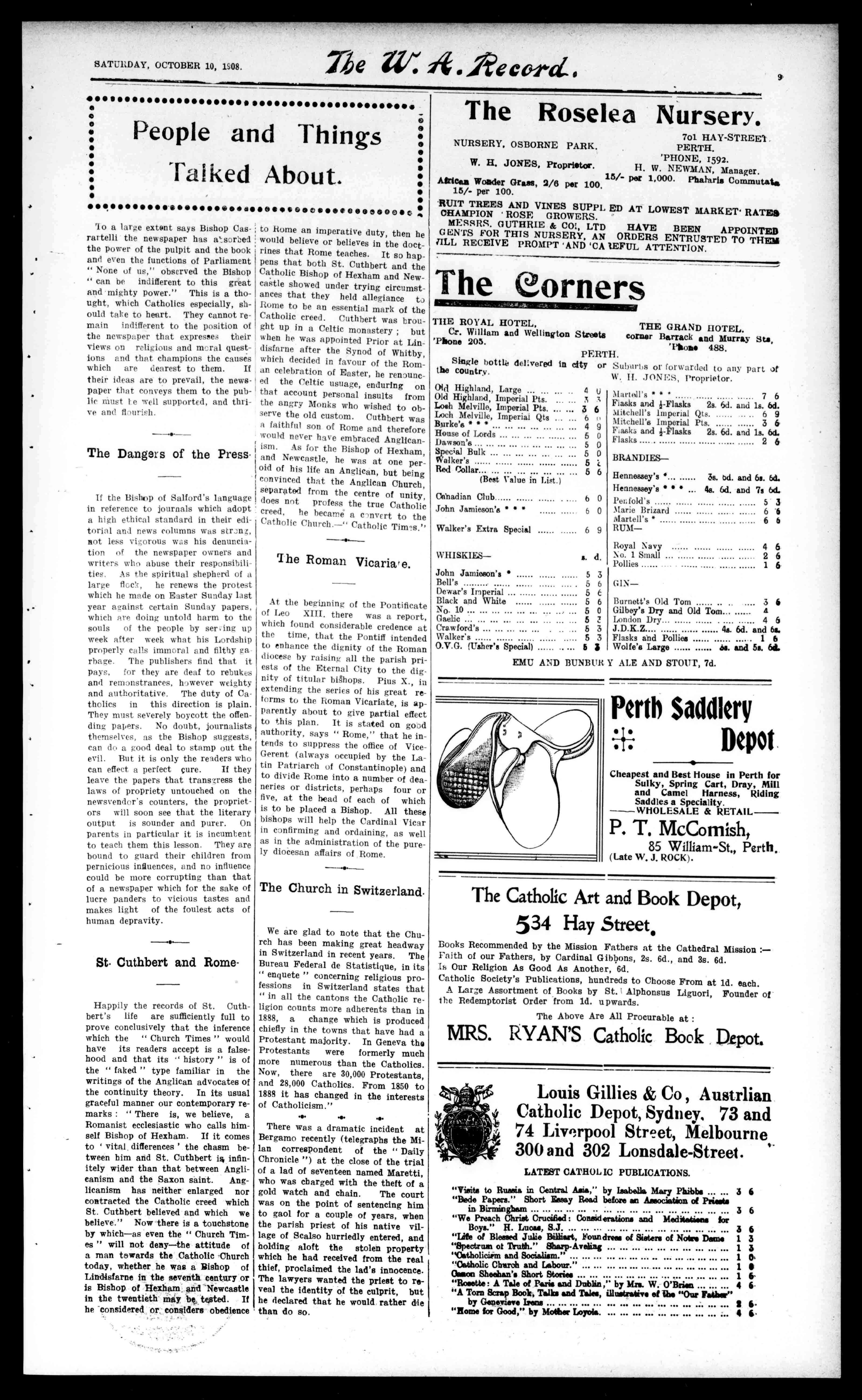 PrintedandPublishedfor"The WestAustrslinRecordandCatholic Printingand1'u'AishingCompany, Lheet,d,"atMurray-street,Perth, yTh-rn-sSlattery.