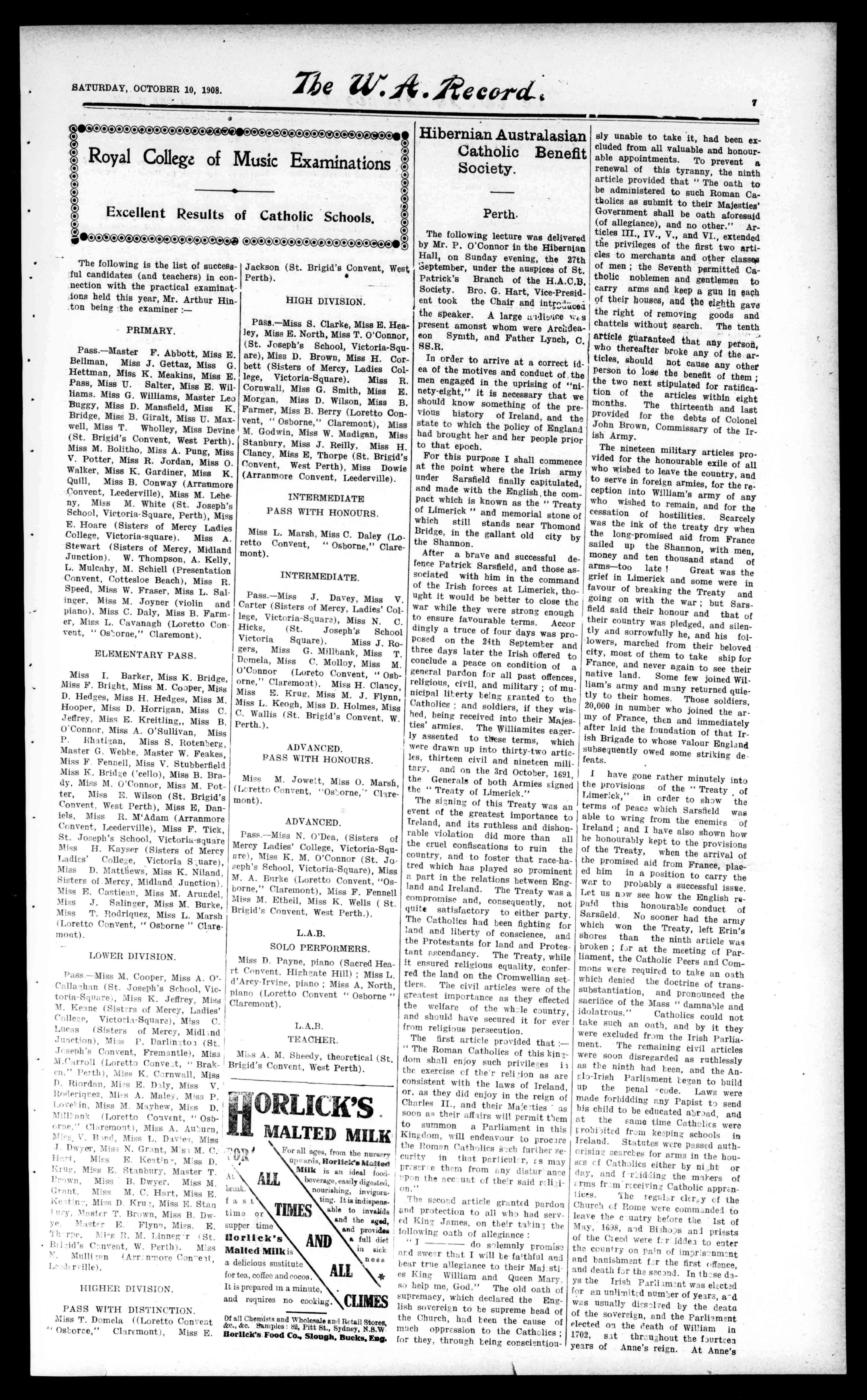 TheSolemnProfessionhastaken placeattheChurchoftheCarmelite Friars,Loughrea,ofMr.JosephO'Brien(inreligionBrotherGregory), brotherofthefamousorganist,Mr. VincentO'Brien,Dublin.AneloquentandimpressivesermonwaspreachedbytheRev.FatherColumbanus,O.D.C.,ontheoccasion.