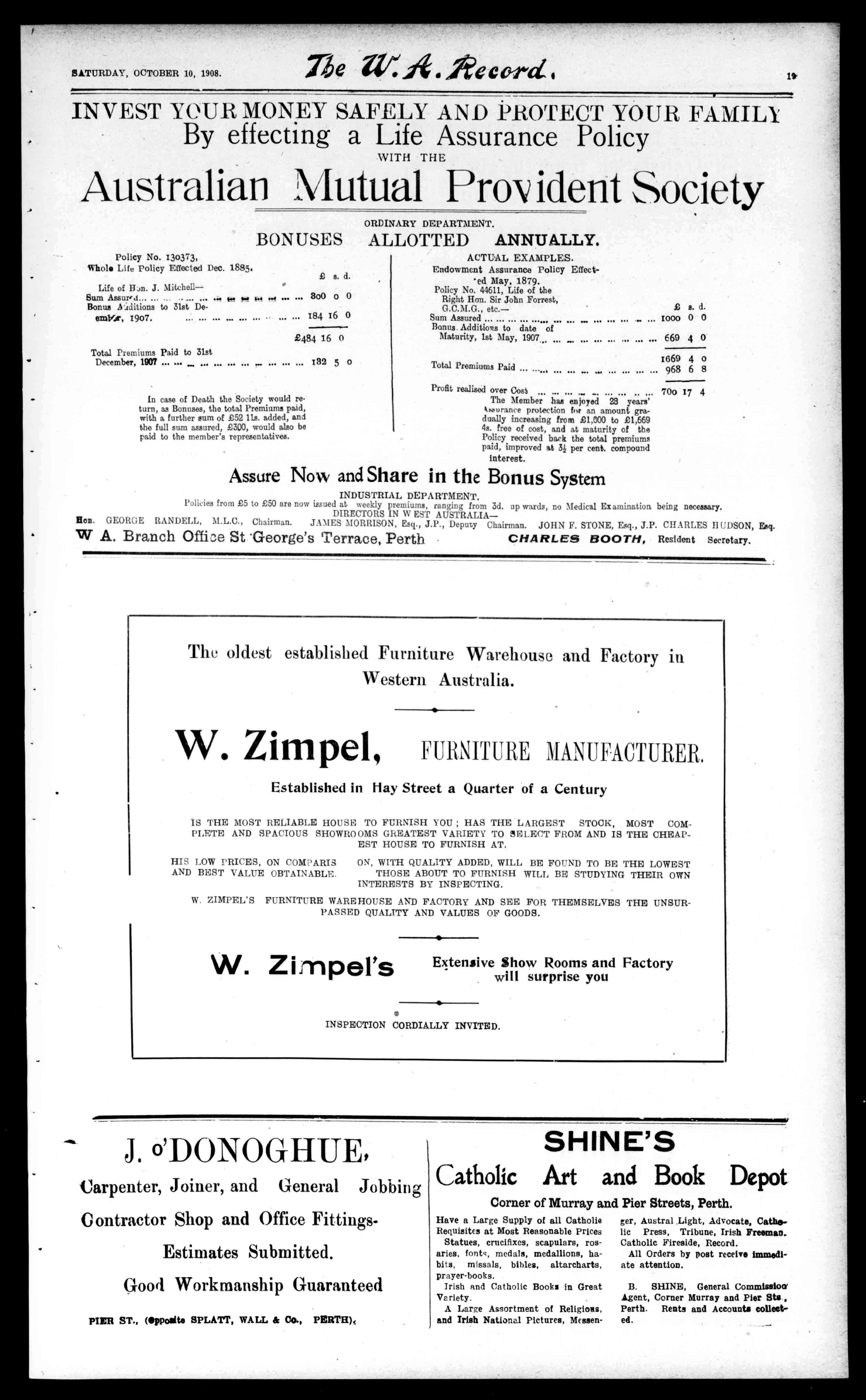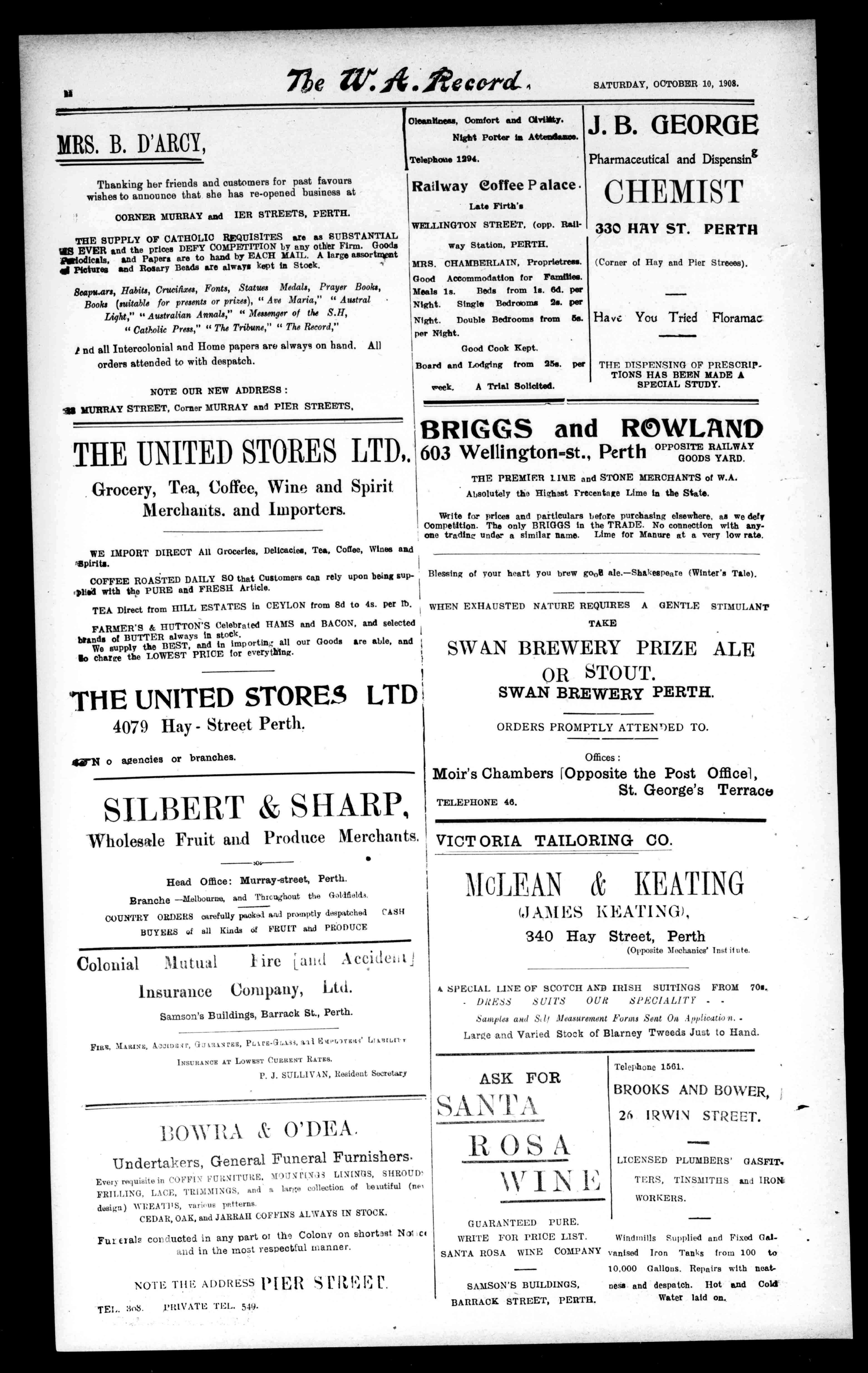 Moir'sChambers[OppositethePostOffice], St.George'sTerrace TELEPHONE48.