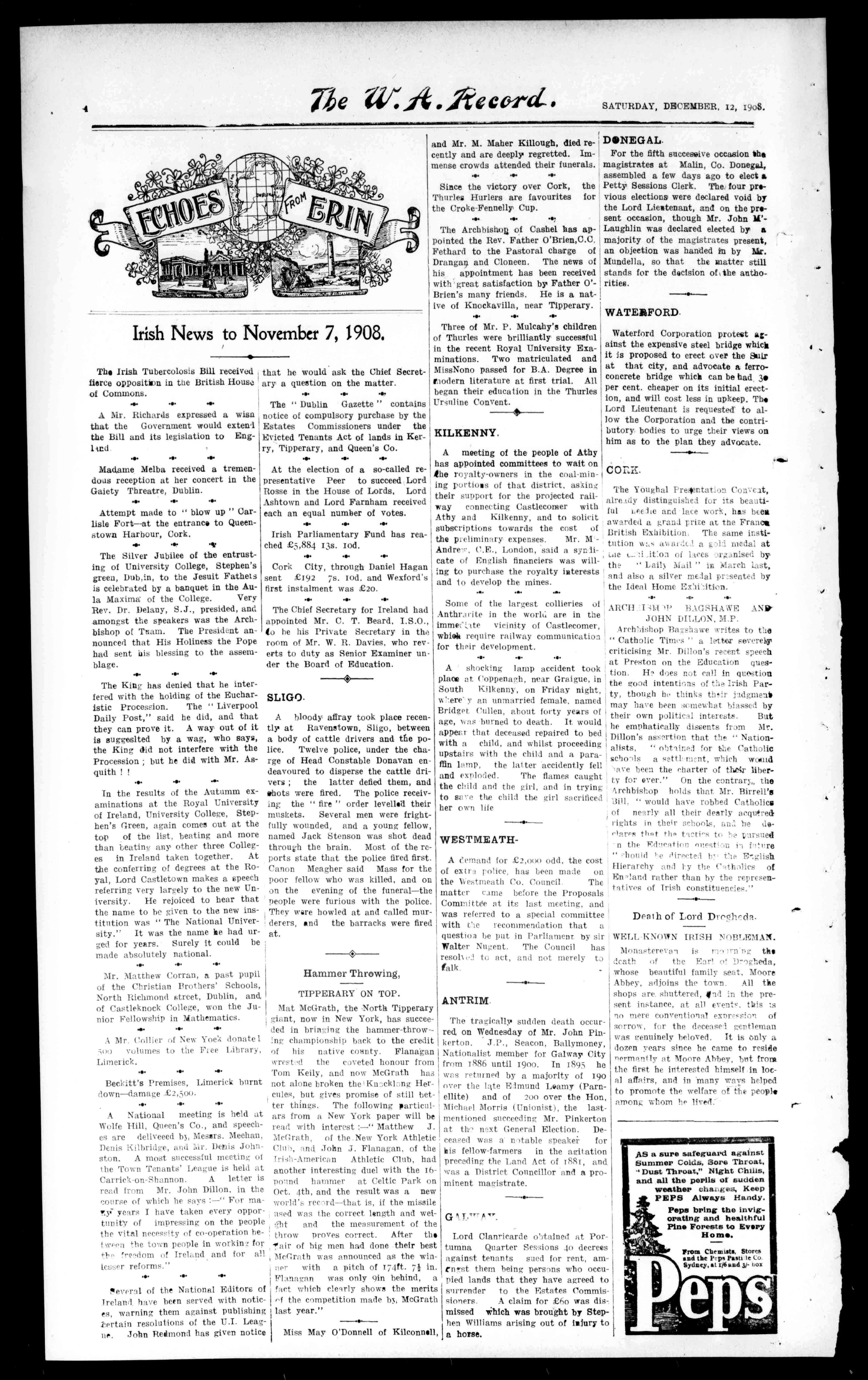 "Youhavetoldme,"saidone -Australianfriendonenightas Iwalkedhomeward:-"thattheIrish-Australianshoulddearlyloveand respectIrelandandherpeople-sing theirsongsatalltimesandmostespeciallyatasocialgathering,impressonthemindsoftherisingIrish-AustralianorCatholicgeneration aloveforthenobleanddevotedrace fromwhichtheyhavesprungsal receivedtheirfaith" "Why?"heasked SaidI:-"Myfriend,youhave readnothingofIrishhistoryyou knownothingofthesuperiorvaloir andvirtuewhichhavebeendisplayedbytheIrishpeopleandtheirmanyheroeswhilefightingforfreeborn andreligionthroughouttheagesof herhistoryyoudonotrealisethat nocountryhassucharecordofheroesandgallantvictoriesandthatno countryhassucharecordofmartyrsf3rtheFaithwhichyou,are ligiousmanpossessingvaluemore dearthanlife.Ifyouonlyknew theSethingsyonwouldgloryinthe factthattheyareyourancestors, andevensupposeyouhadnotIrish bloodinyourveinsorIrishreligion inyourheartandmindyou,ifliberal-mindedwouldbeforcedtorespect thatcountryanditsbravepeople. ButtIhavesaidthatthisloveand respectareduetothem.Istill maintainthesamefortheIrish Patrick,hadre-entered'theCorporaracepreservedforusthroughseveral tionandbecomeLordMayor,theycenturiesofcountlesspersecutions couldnotgetawayfromthefact ourgreatesttreasureinlife,theCa thatthepeopleofBelfasthadhaul-thole.Faith.Sinceweadmitthat Eternalwelfareisgreaterthan Earth,howcanwevalueanything morethanShewhoguidesustothe Eternal consequentlywemustbe gratefultothosewhopreservedfor usourGuide,theChurch.Youfeel adebtofgratitudetowardshimwho hasbestowedsomeearthlyfavour uponyouhowmuchmoremustyou feelobligedtohimwhohasgiven youafavourwhichisdivine,more especiallywhengivenatthecostof hislife? "But,"said,he,"thepersecutions onEnglandwereequall3,assevere itsthoseofIreland?" Ireplied:"Iftheywerewhatwas theresult?Howlongdidtheyneed tolast? Alessnoblepeoplethan theIrishwithabasenobility,greedilygraspingforvestedinterests fromnvileandabjectKingwhowas seekingeolygronlyastheEnglish HenryVIIIwas,couldnotwithstand thestrain,whileacountrywitha genuinenobilityandadevotedpeo pieastheTrishwere,did.Aftera fewyearsofpersecutiontheEnglish nationwascompletelypervertedfrom CatholicitytoProtestantism.But wtatofIreland?:-religiouspersecutionscontinuedthereduringthe reignofalmosteveryEnglishmonarchforcenturiesandwithnosuccess. Themannerandvarietyof thesepersecutionswouldnotwell describedbyme.Thereweredeeds ofbraveryandself-sacrificeperformedbythepeopleofthatcountrySNationalityasforsimpleliberty,which wouldmakeonestandastonishedin