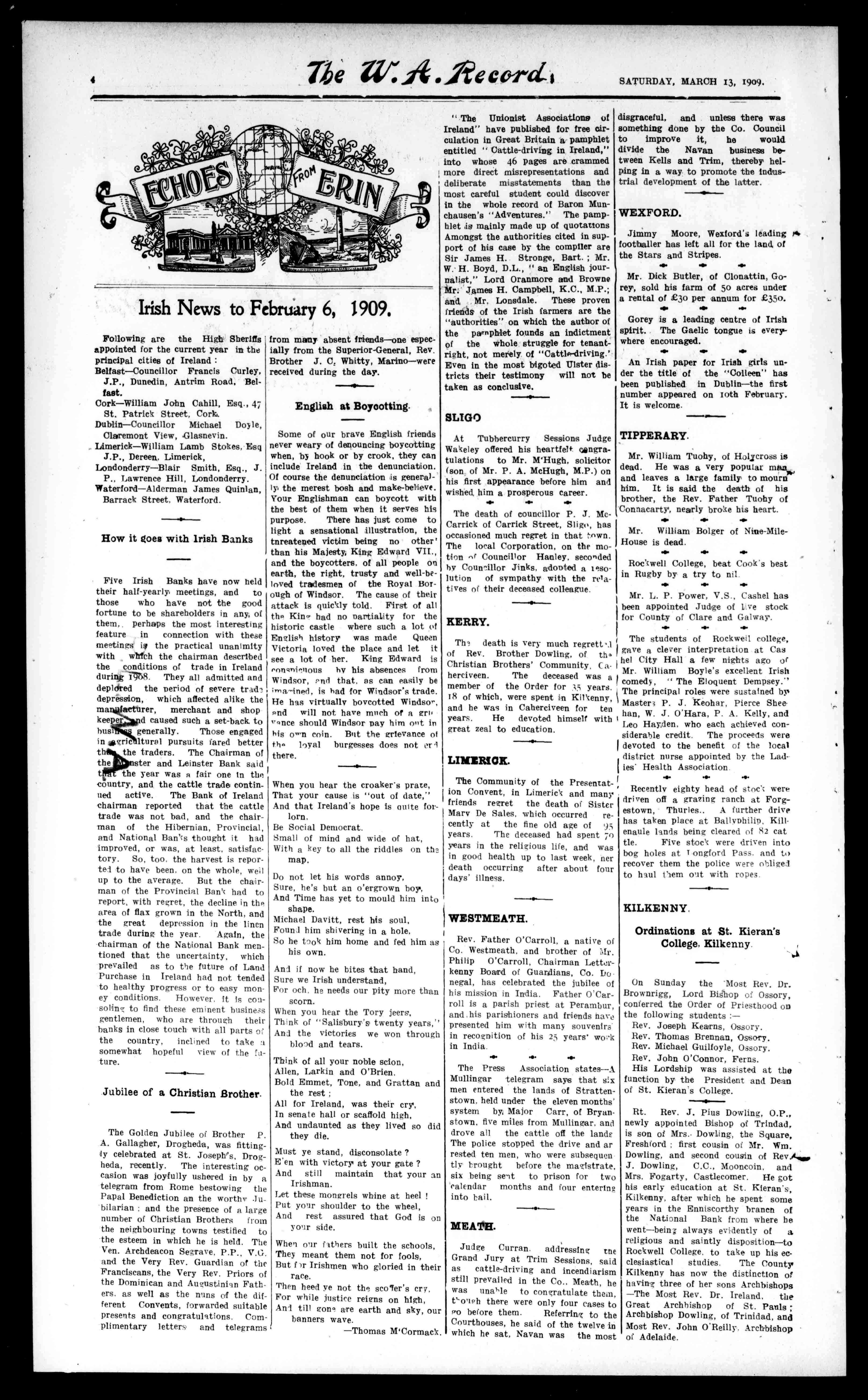 SomeofourbraveEnglishfriends neverwearyofdenouncingboycotting when,byhookorbycrook,theycan includeIrelandinthedenunciation. Ofcoursethedenunciationisgenerally,themerestboshandmake-believe. YourEnglishmancanboycottwith thebestofthemwhenitserveshis purpose. Therehasjustcometo lightasensationalillustration,the tnreatenedvictimbeingnoother' thanhisMajesty,KingEdwardVII., andtheboycotters.ofallpeopleon earth,theright,trustyandwell-belovedtradesmenoftheRoyalBoroughofWindsor.Thecauseoftheir attackisquicklytold.Firstofall theKin"hadnonartialityforthe historiccastlewheresuchalotof EnglishhistorywasmadeQueen Victorialovedtheplaceandletit seealotofher.KingEdwardis eneenienousbyhisabsencesfrom Windsor,endthat,ascaneasilybe ;eta-ined,isbadforWindsor'strade. HehasvirtuallyboycottedWindsor, endwillnothaveTroutofaels, renceshouldWindsornayhimo"tin hiswencoin.Butthegrievanceof theloyalburgessesdoesnot'rd there.