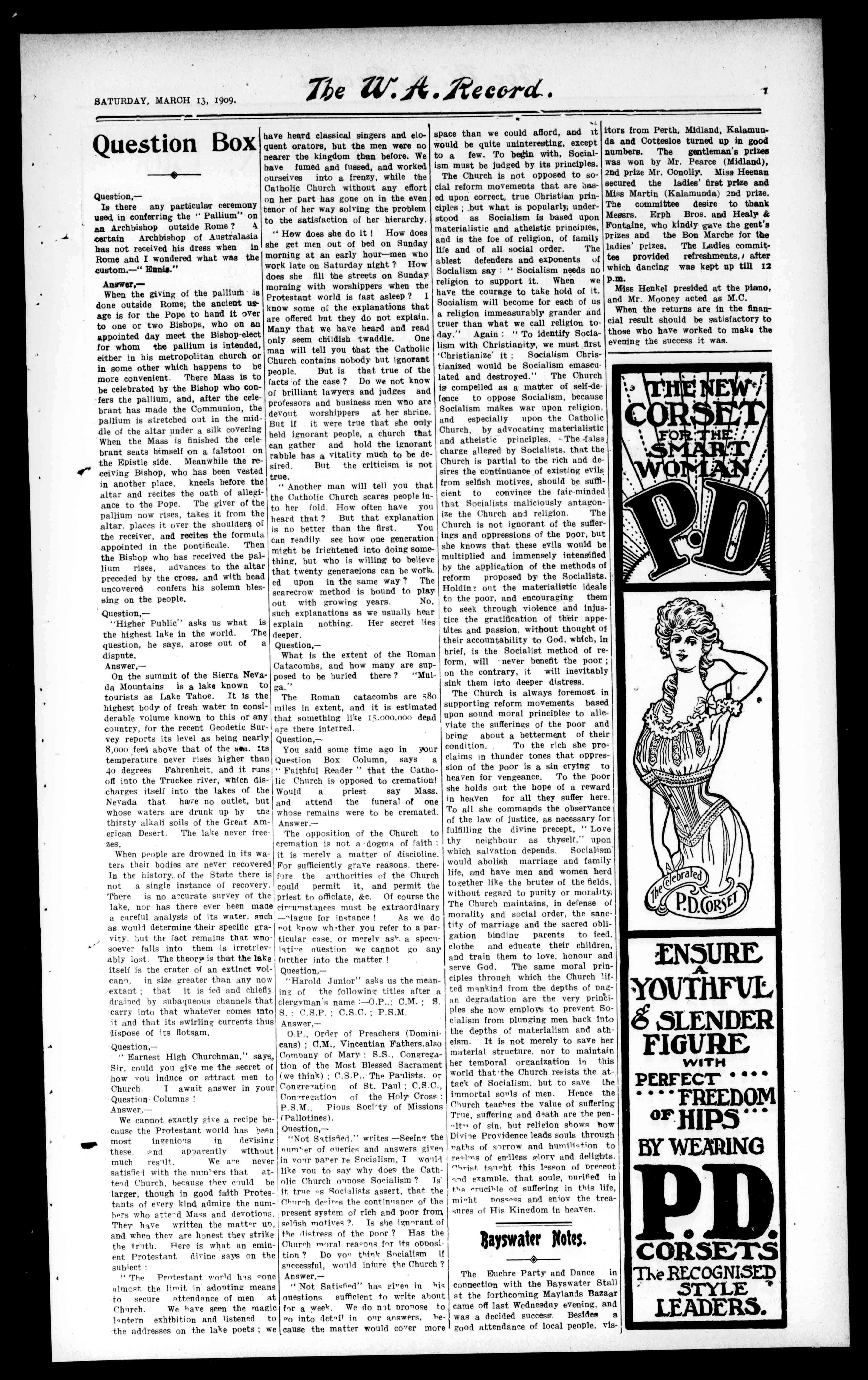 "Hewdoesshedoit! Howdoes shegetmenoutofbedonSunday morningatanearlyhour-menwho worklateonSaturdaynight?How doesshefillthestreetsonSunday morningwithworshipperswhenthe Protestantworldisfastasleep?I knowsomeoftheexplanationsthat areofferedbuttheydonotexplain. Manythatwehaveheardandread onlyseemchildishtwaddle. One manwilltellyouthattheCatholic Churchcontainsnobodybutignorant people. Butisthattrueofthe factsofthecase?Dowenotknow ofbrilliantlawyersandjudgesand professorsandbusinessmenwhoare devoutworshippersathershrine. Butifitweretruethatsheonly heldignorantpeople,achurchthat cangatherandholdtheignorant rabblehasavitalitymuchtobedesired. Butthecriticismisnot true.