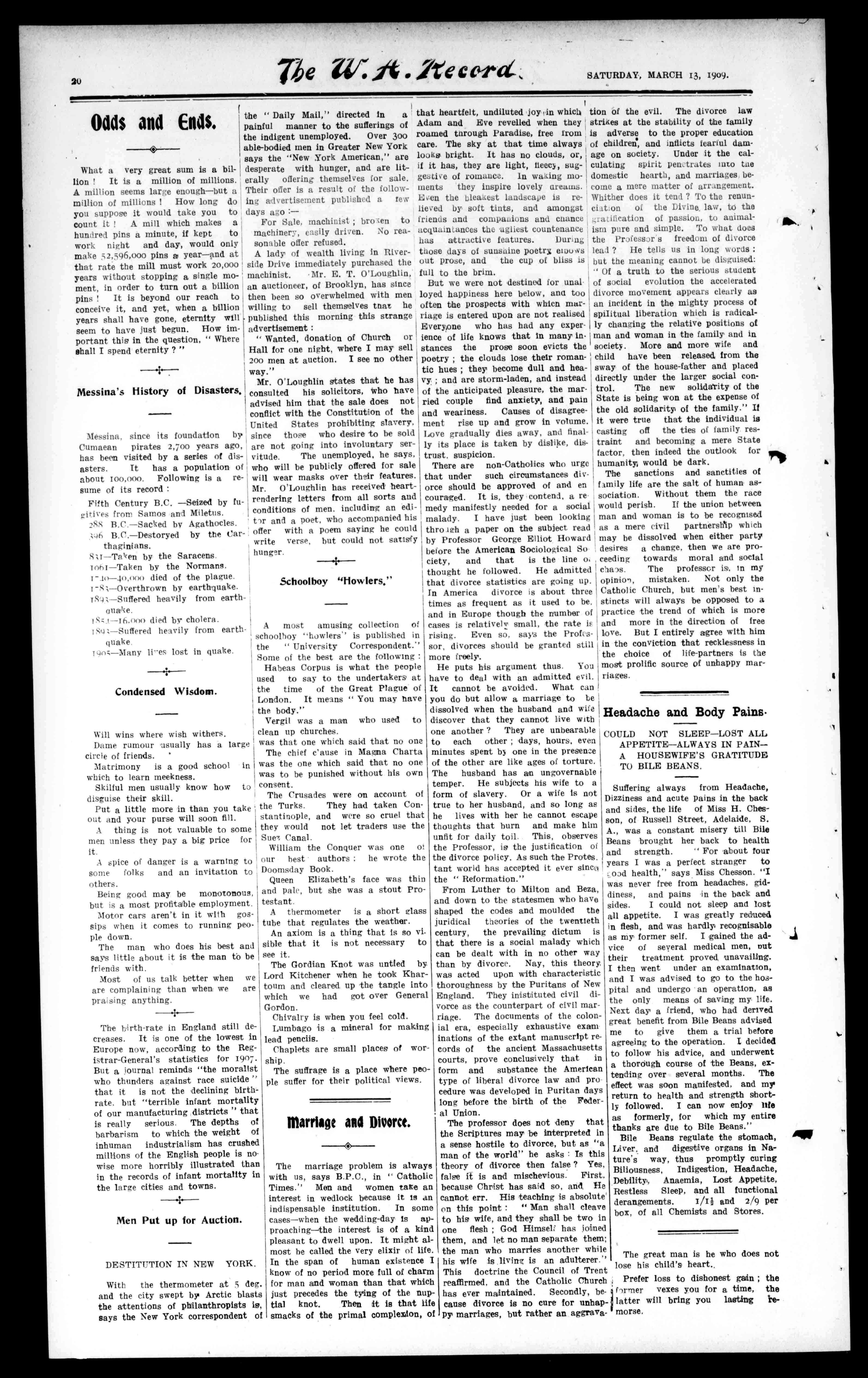 "Doyouthinkthewomanhelps themanasmuchassheshould? Don'tyouthinkmanywomenare selfish?Menaretoo.They,marry foramusement,ortheyneedsocial helpsometimes.Andthewomanis untruetoherselfandtoGodAlmightyifshedoesnotaccepttheduties