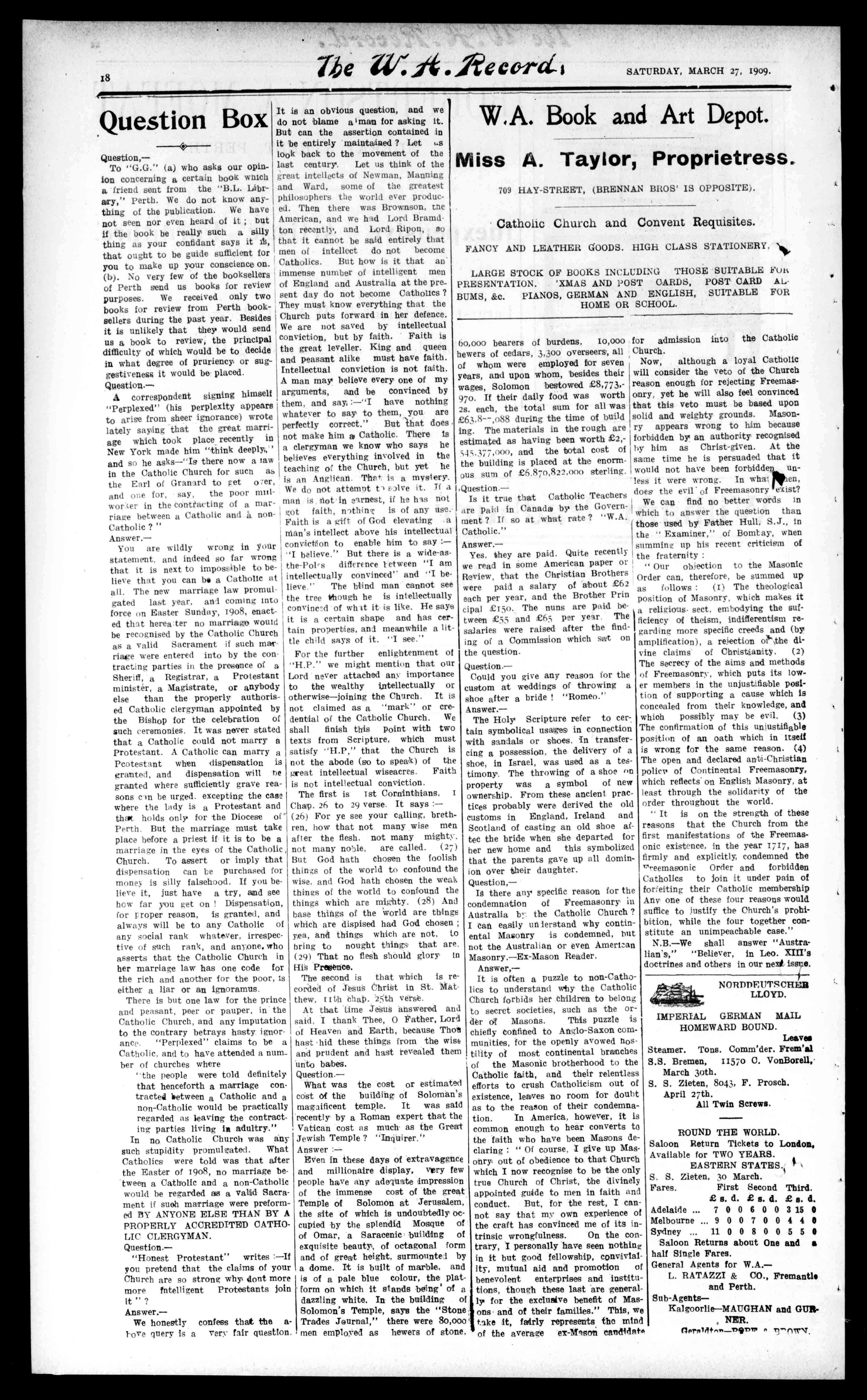 N.B.-Weshallanswer"Australian's,""Believer,inLeo.XIII's doctrinesandothersinourneziis0. NOTIDDEUTSO LLOYD.