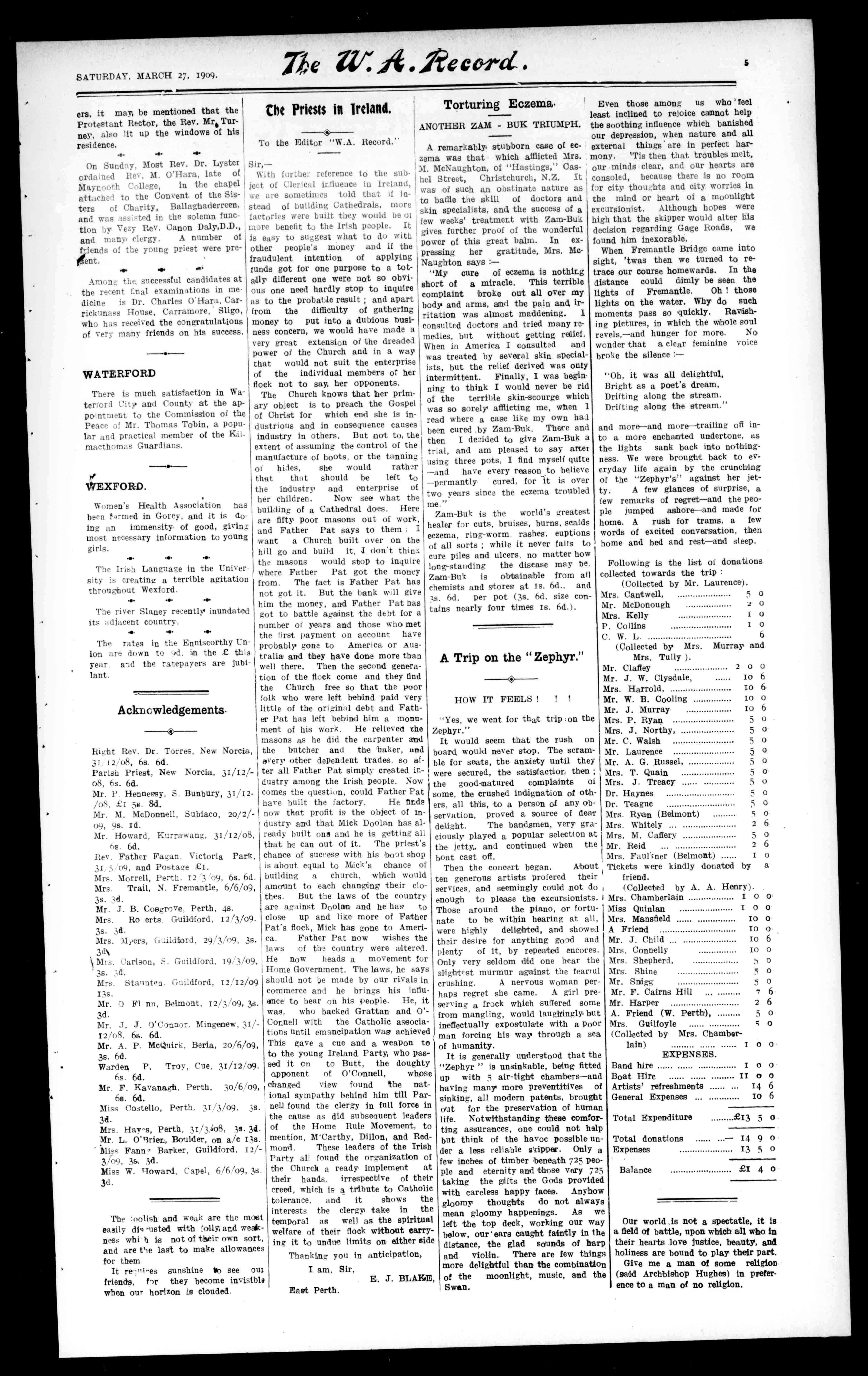 Acknowledgements. thePriestsinIreland. TotheEditor"W.A.Record."