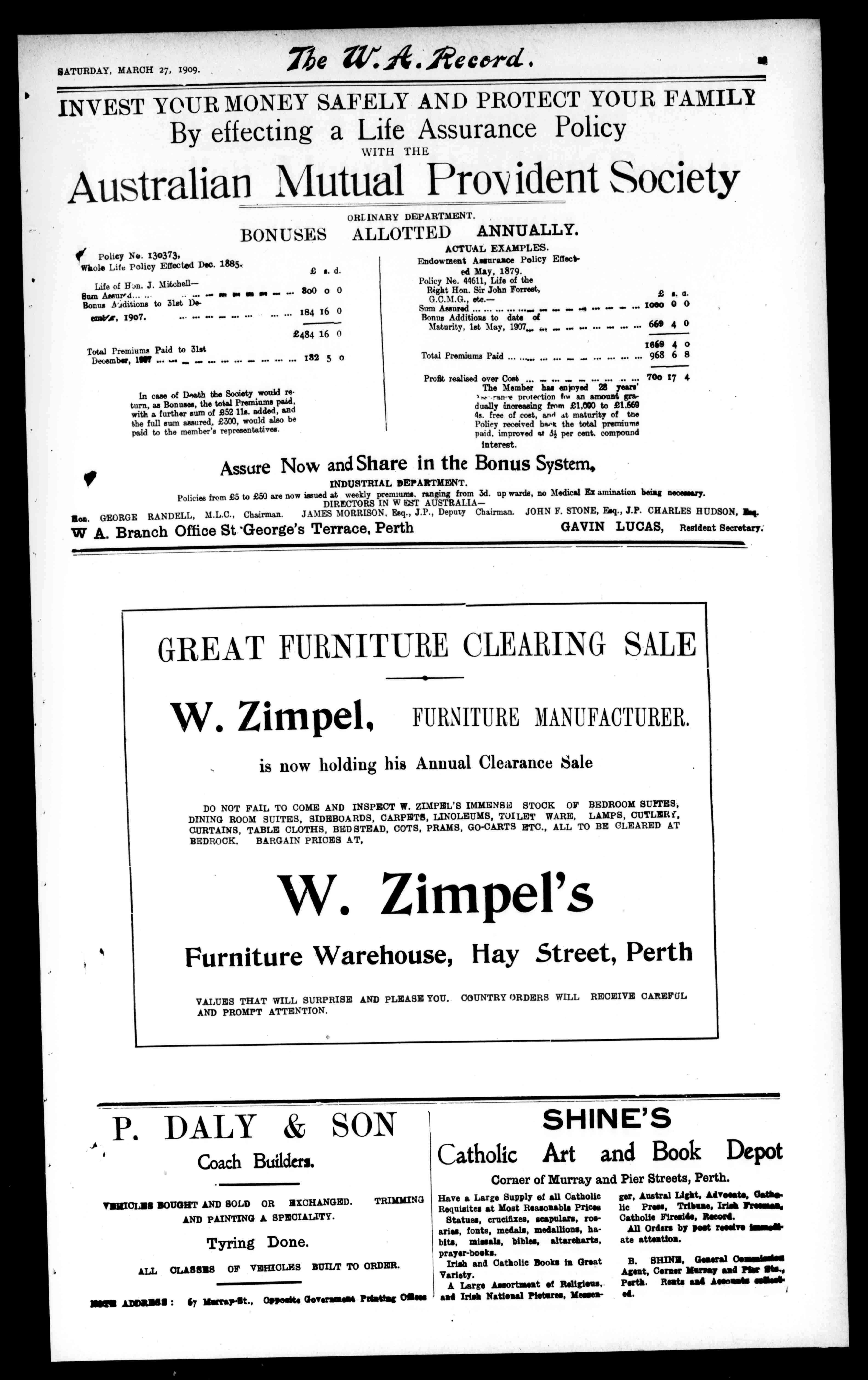 GeneralAgentsforW.A.L.RATAZZI&CO.,Fremantle andPerth.