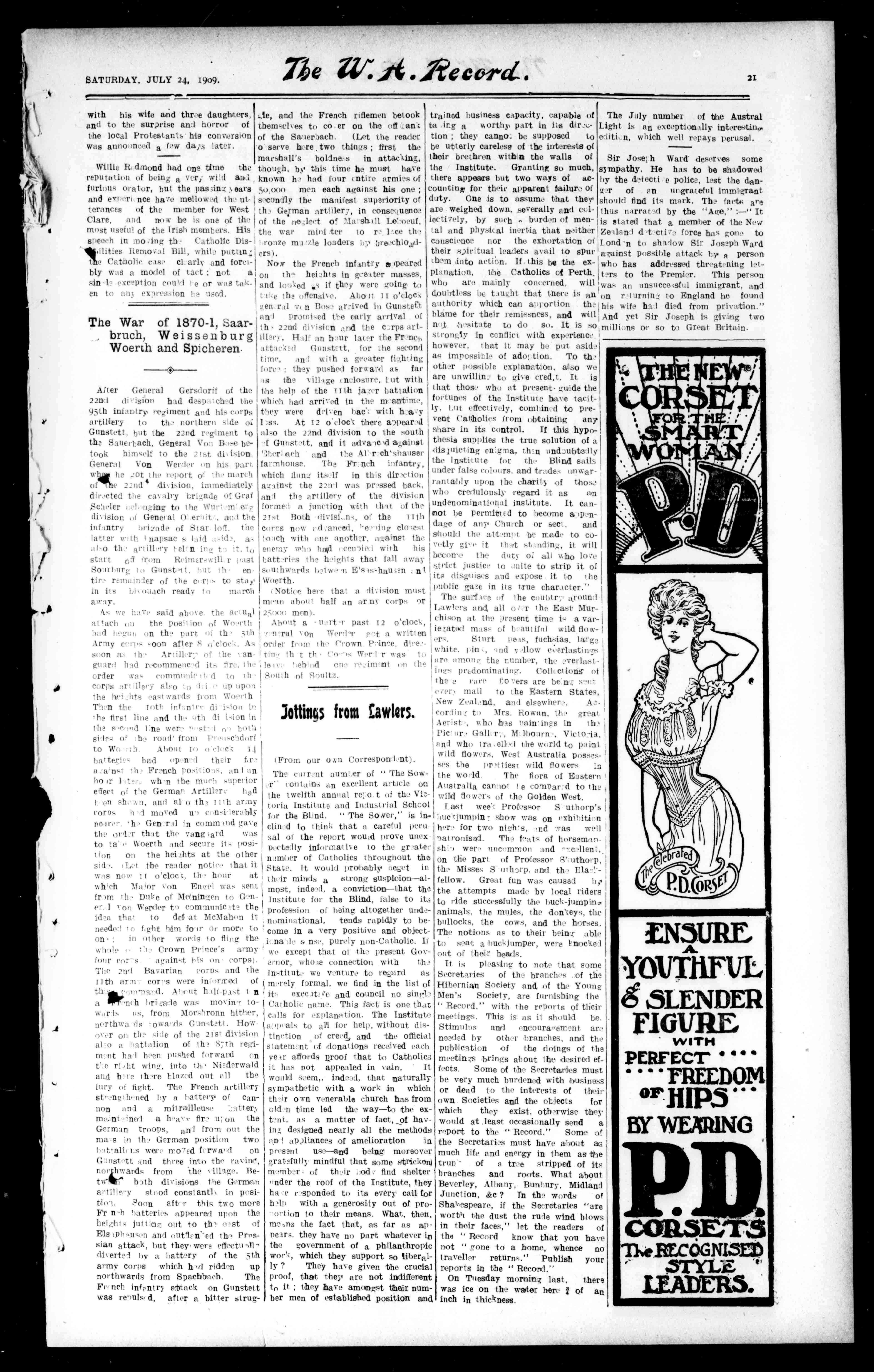 Thecurrentnurneerof"TheSower"containsanexcellentarticleon thetwelfthannualre;tatoftheVieatriaInstituteandIndustrialSchool fortheBlind."TheSolver,"isinclinedtothinkthatacarefulPeru salofthereportwouldproveunex Pectedlyinformativetothegreater numberofCatholicsthroughoutthe State.Itwouldprobably.Degetin theirmindsastrongsuspicion-almost,ladeel,aconviction-thatthe InstitutefortheBlind,falsetoits professionofbeingaltogetherundoneminational,tendsrapidlytobecomeinaverypositiveandobjectitnal.a.use,purelynon-Catholic.If weexceptthatofthepresentGovernor,whoseconnectionwiththe Instituteweventuretoregardas merelyformal,wefindinthelistof it.;execitsecandcouncilnosingle Catholicname.Thisfactisonethat callsforexplanation.TheInstitute app,alstoallforhelp,withoutdistinctionofcreedandtheofficial statement(a;donationsreceivedeach yeiraffordsaroofthattoCatholics ithasriotappealedinvain. It wouldseemindeed,thatnaturally sympatheticwithaworkinwhich theirownvenerablechurchhasfrom cld.ntimeledtheway-totheextent,asamatteroffact,ofheavingdesignednearlyallthemethods tin-!appliancesofameliorationin presentuse-andhi?itsgmoreover gratefully'mindfulthatsomestricken) memberoftheireodefindshelter endertheroofoftheInstitute,they ha-erspondedtoitseverycallfor helpwithagenerosityoutorpro-optiontotheirmeans.What,then, mansthefactthat,asfarasaP nears,theyhavenopartwhateverin thegovernmentofaphilanthropic wore:,whichtheysupportsoliberally? Theyhavegiventhecrucial proof,thattheyarenotindifferent toittheyhaveamongsttheirnumbermenofestablishedpositionand,
