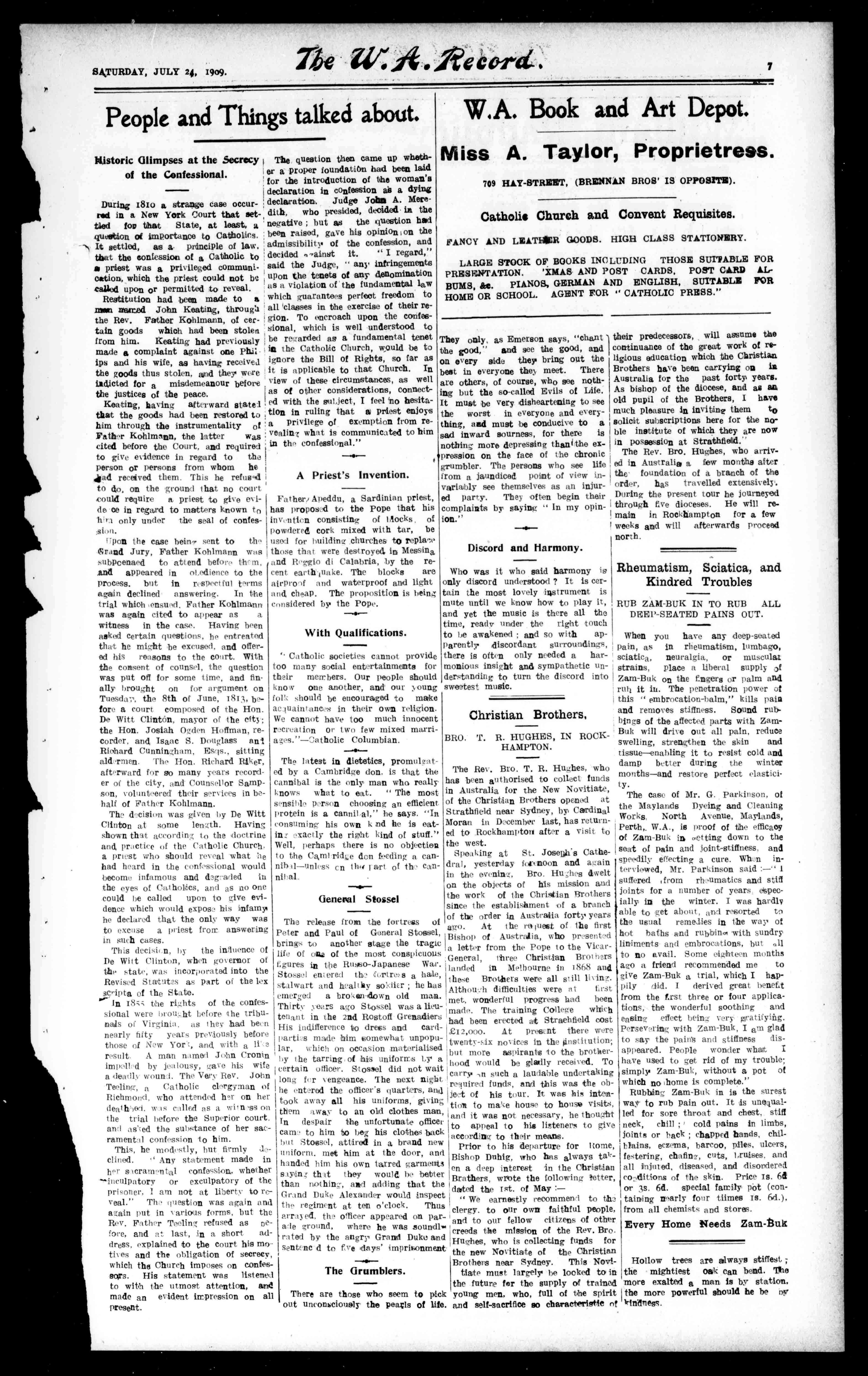 CatholicArtandBookDepot CornerofMurrayandPierStreets,Perth. HaveaLargeSupplyofallOatomit RequisitesatMoatRessiseabisPrised Stabiles,crucifixes,staspioars,rosaries,fonts,medals,medallions,habits,missals,bibles,akarsharts, prayer-books. IrishandCatholicBooksinGreat Variety. ALargeAssortmentofReligious, endblebNationalMeters,,Messeager,Austral'Agit,Advocate,OstbuirlicPress,TrIbaae,IrianFreeman. Catholic?tremble,Record. AllOrders*pestresolveinainedi ateatteatioa.