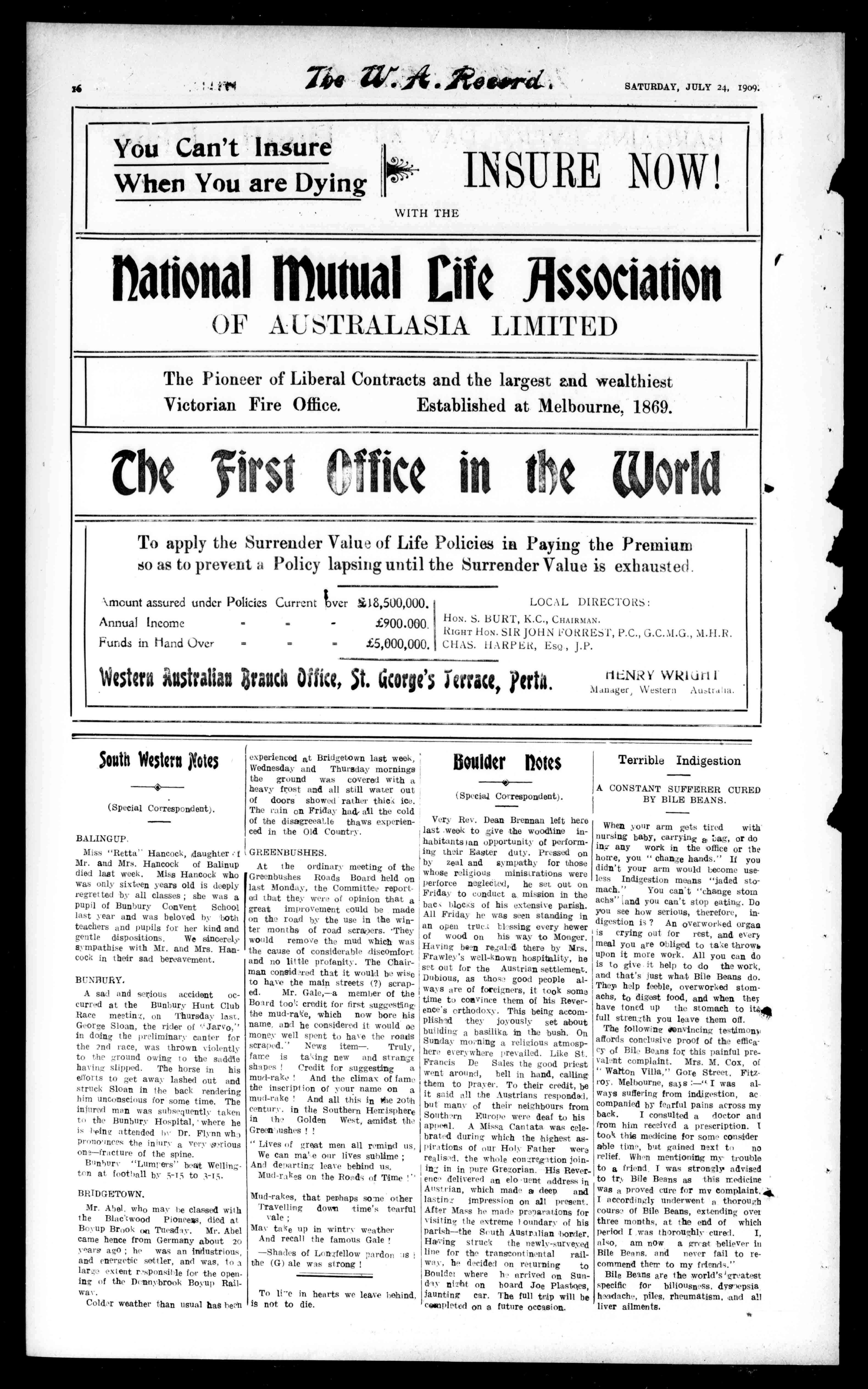 Itispleasingtonotethatsome Secretariesofthebranch,softhe HibernianSocietyandoftheYoung Men'sSociety,arefurnishingthe 'Record,"withthereportsoftheir meetings.Thisisasiishouldbe. Stimulusandencouraeetrentare neededbyotherbranches,andthe publicationofthedoingsofthe meetinesbringsaboutthe,desiredeffects.SomeoftheSecretariesmust beverymuchburdenedwith,business ordeadtotheinterestsoftheir ownSocietiesandtheobjectsfor which theyexist.otherwisethey wouldatleastoccasionallysenda reporttothe"Record."Someof. theSecretariesmusthaveaboutat muchlifeandenergyinthemasthe trim'ofatreestrippedofits branchesandroots.Whatabout Beverley,Albany,Bunhury,Midland Junction,&c?Tnthewords of Shaleespeare,iftheSecretaries"are worththedusttherulewindblows intheirfaces,"letthereadersof the"Recordknowthatyouhave not"ponetoahome,whenceno travellerreturns."Publishyour reportsinthe"Record."