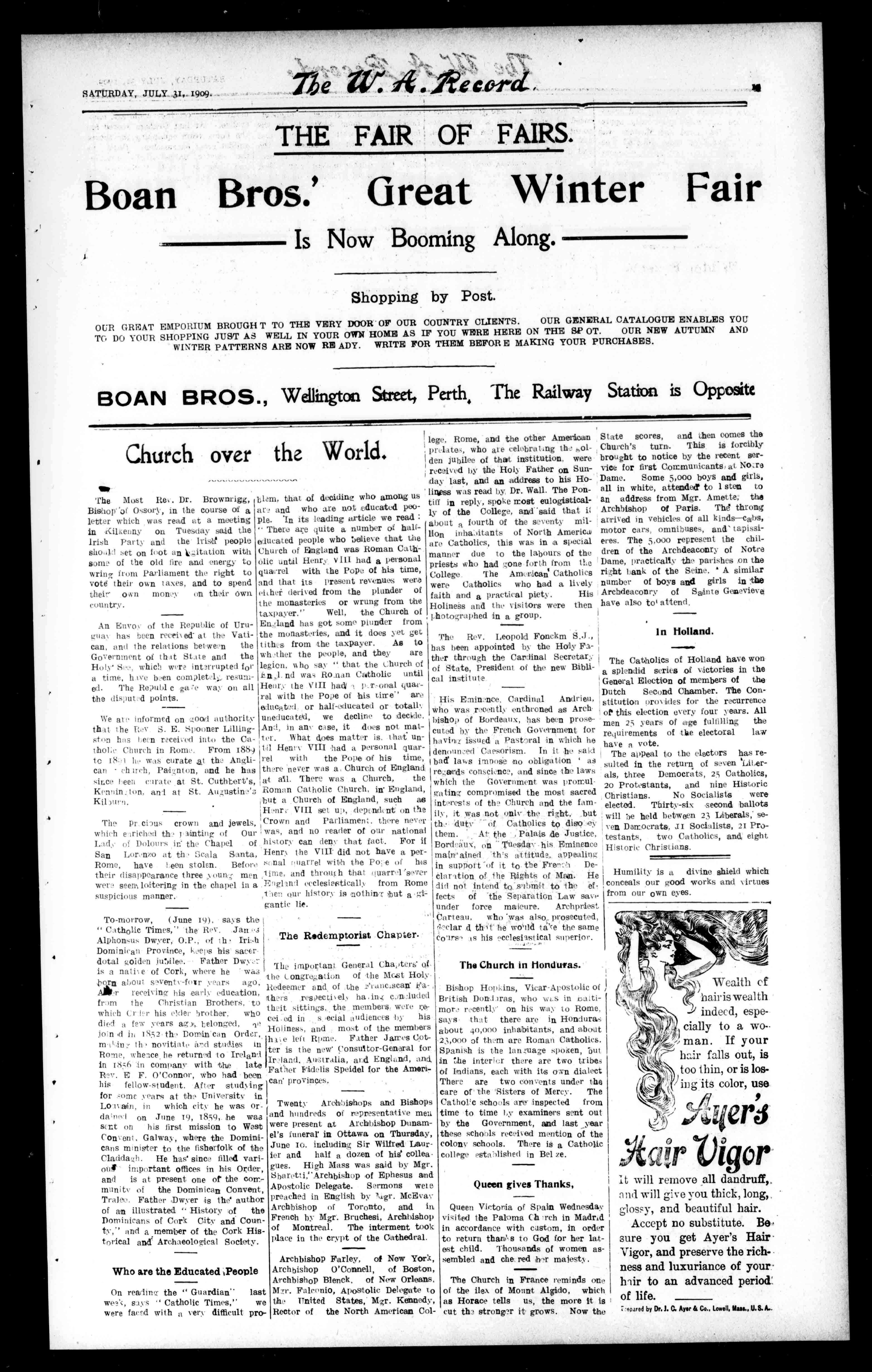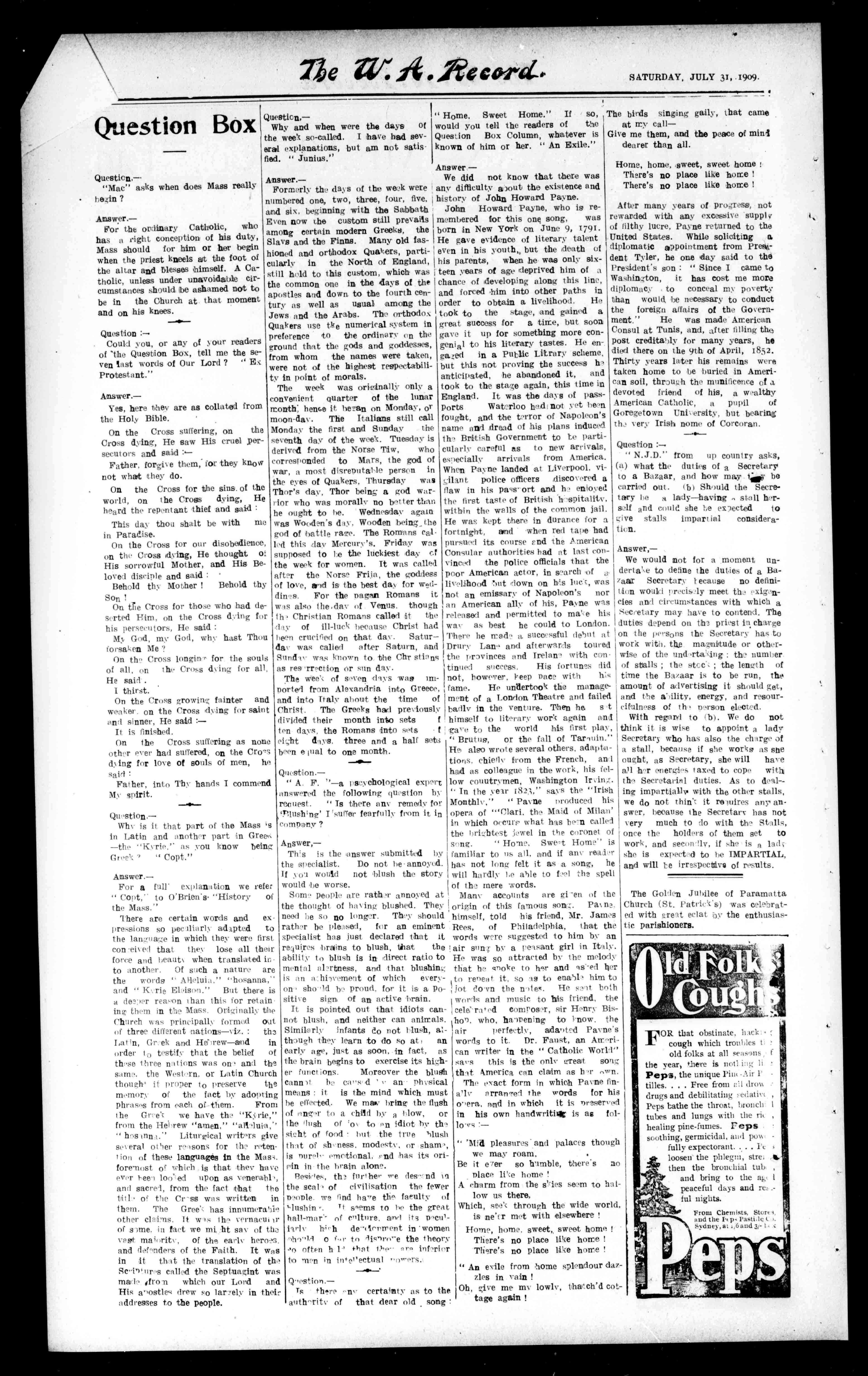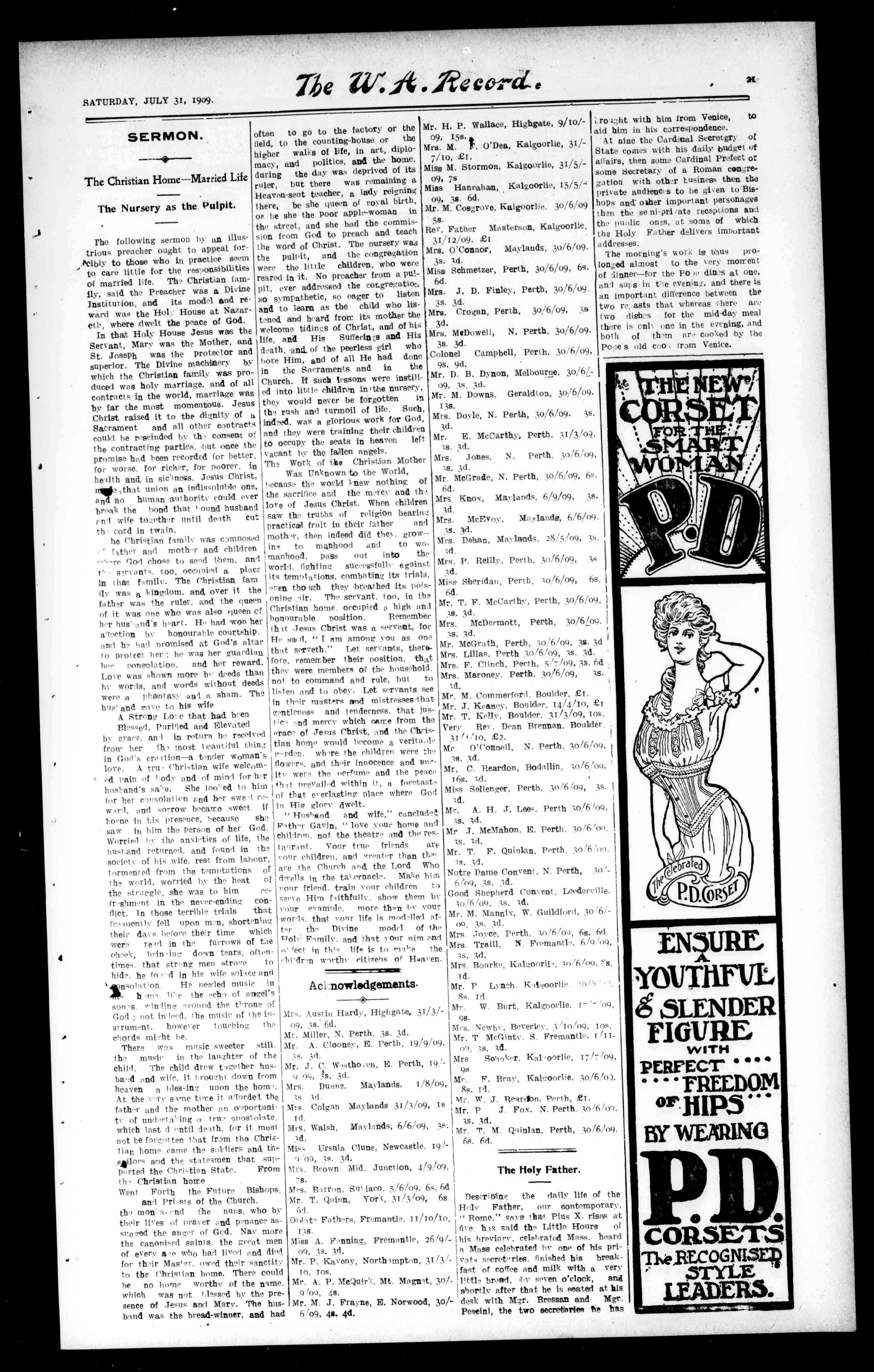 Mrs.F.Clinch,Perth,5./7/09,35. Mrs.Maroney.Perth.30/6/09,1s. ed.
