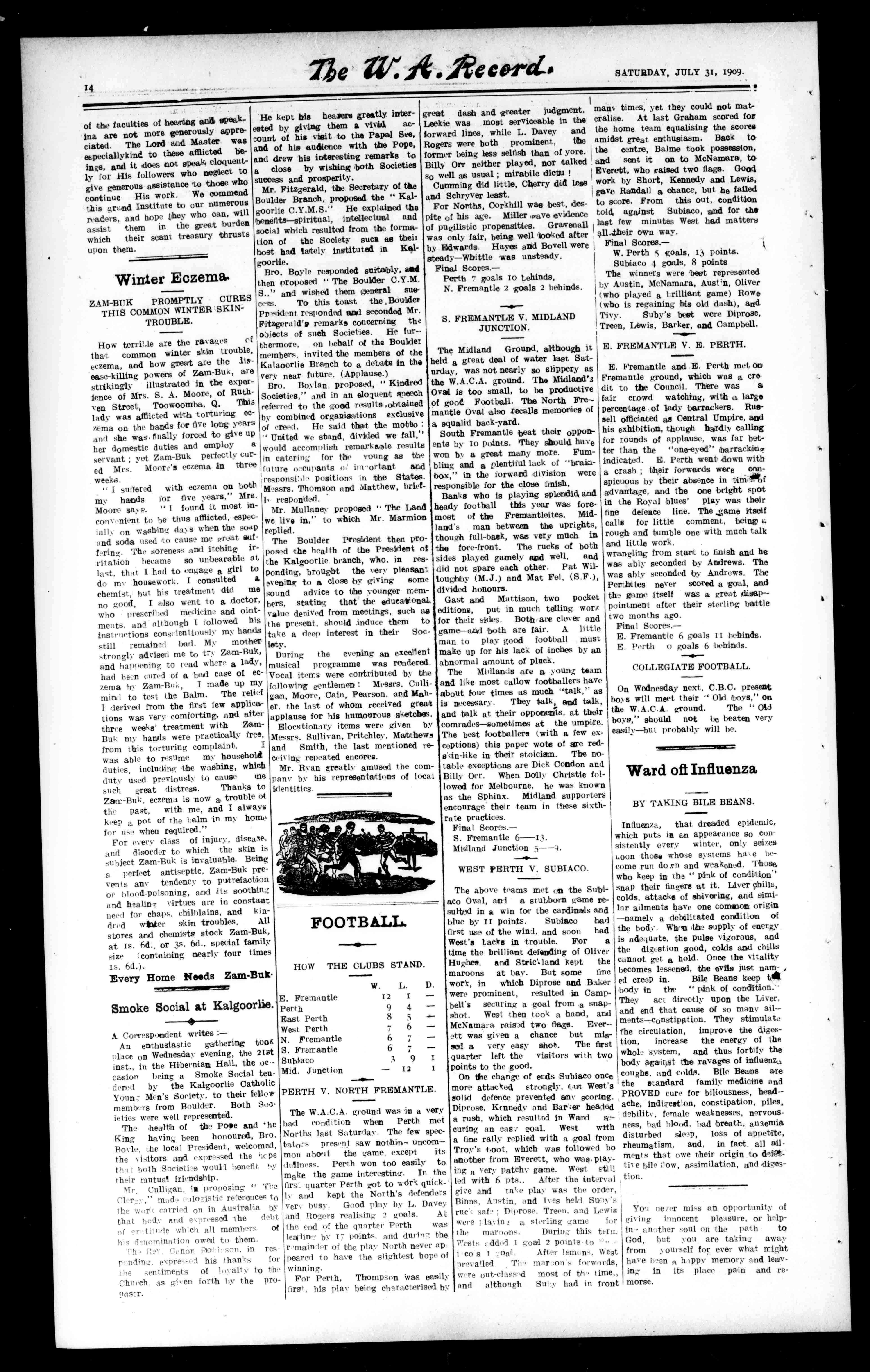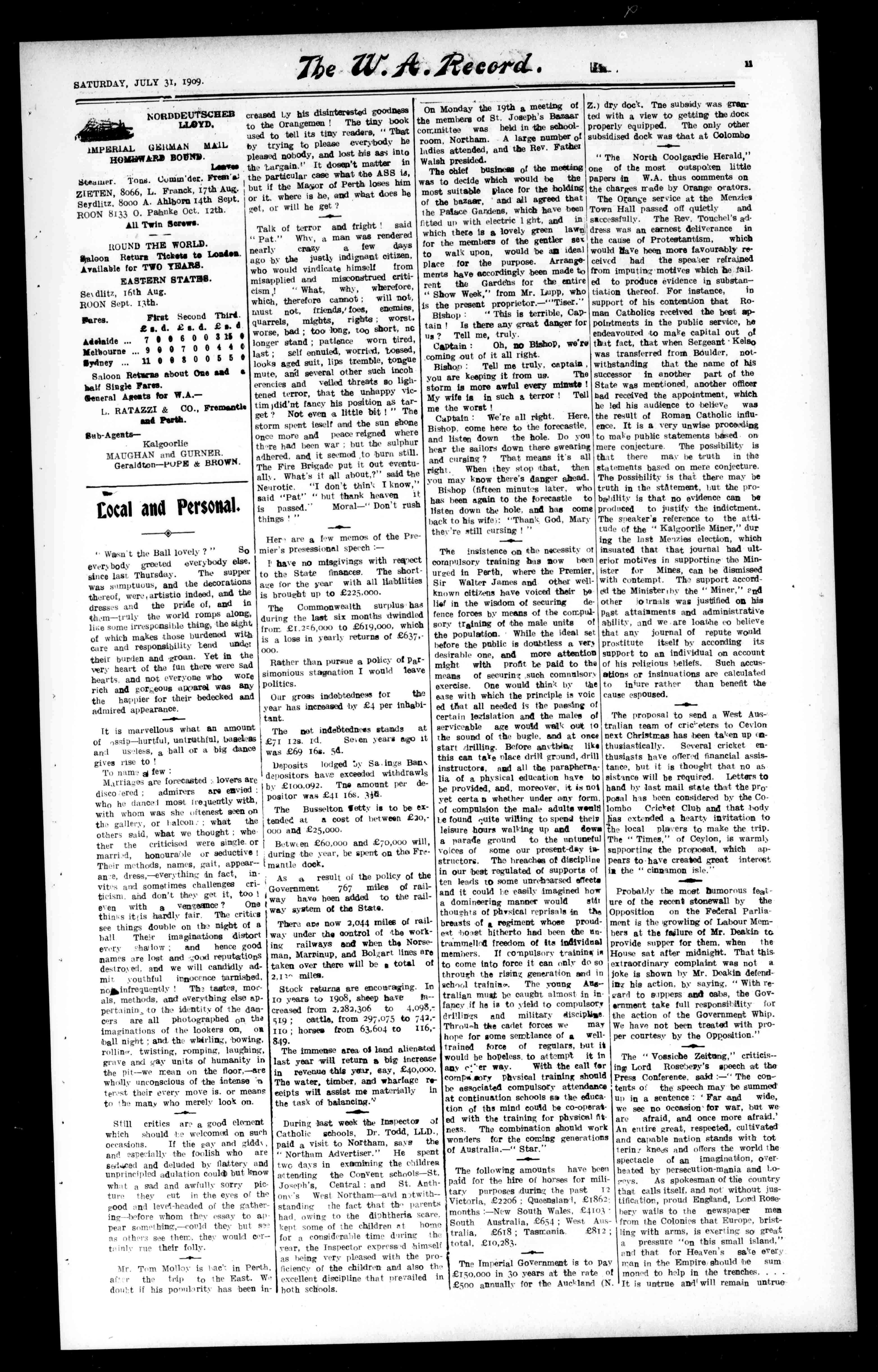 Meesrs.A.Goerke,K.B.ne,andJ. Tully. OnthefollowingWednesdayadebateon,"Shouldshippingbe broughttoPerthinsteadofremaining'atFremantle,"washeld. The opposingaideswereMessrsG.Kerr, A.Goerke,J.T.Mullins,andJPrestonwhotookthenegativeann MessrsK.V.S.Bone,J.P.Tully, J.S.S.Bone,andF.Headway, whotooktheoppositeview.Aftera gooddel'ateinwhichallspokewell, theChairmen(Rev.FatherMaloney) decadeninfavourofMr.Kerr'sside. Theargumeatsbeingputforward againsttheshippingbeingbrought toPerthweremanyandemphasised bysolidfacts,whilethoseinfavour ofshippinggrin,broughttothecap- italwereratherweakit.theirpoints. -thegreatcost,andthenecessityof aRailwaytothewater'sedge,completelyoserToweringthem.The Chairmandecidedinfavourofthe followingastieingthebeatspeakers Messrs.Preston,IstandA.Goerke 2nd.whilsthecouldnotdecideona third.Aheartyvoteofthandsto theChairmanwasmovedbyMr.K. Bone,and,secondedbyMr.Kerr,and afterafewwordsbytheRev.Fatherthemeetingterminated. intendingmembersareremindel thatthehalf'earcommenced tat July.iindparticularsofmembership, etc.,canheObtainedfromanymemberortheHon.Secretary-Mr.K. Bone.SurliitonRoad,VictoriaPark.