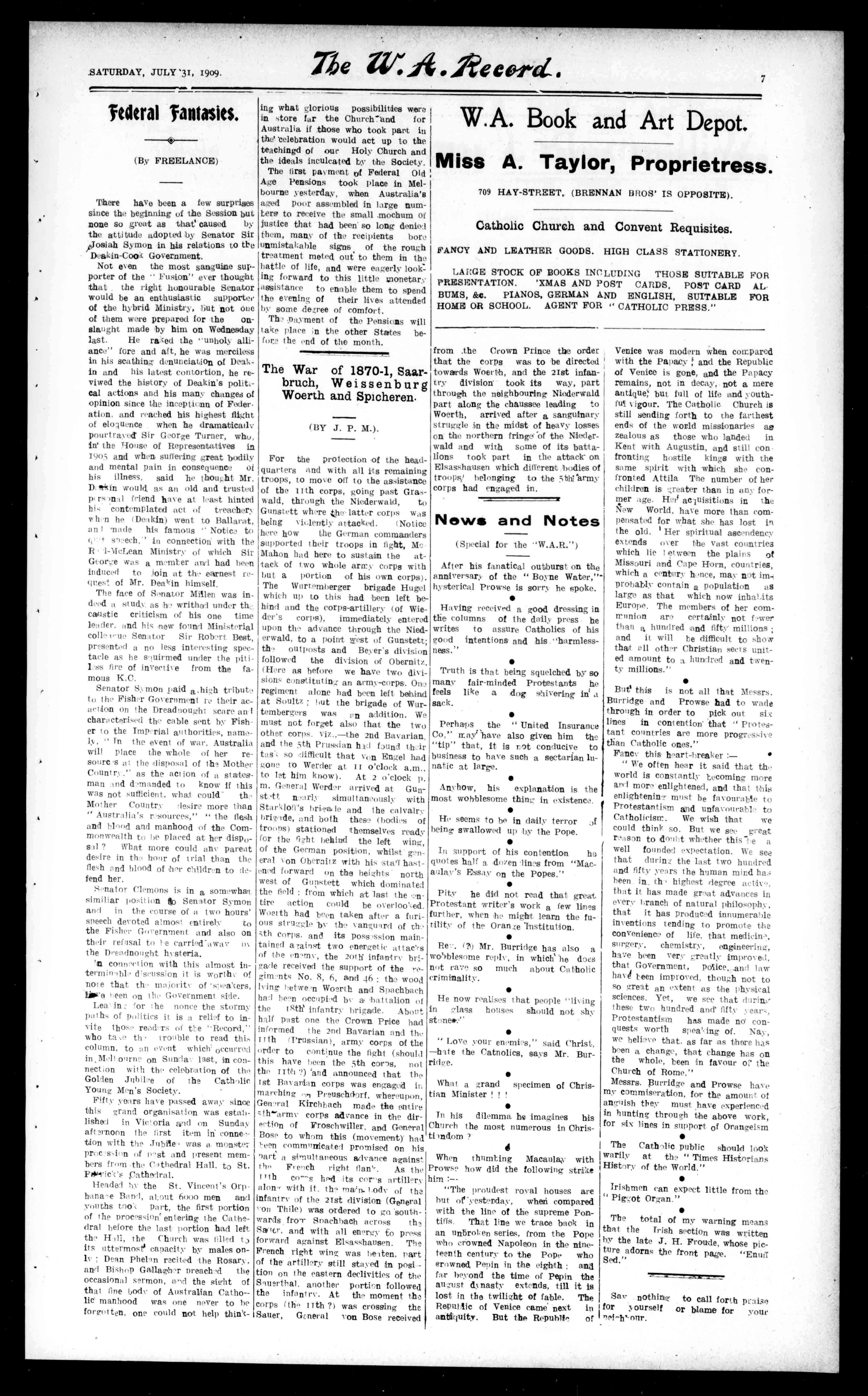 PrintedandPublishedfor"Tits WestAlstrAlanRecordandCatbolie Printing'andPublishing!Company, fAmited,"atMurray-street.Perth, byThieasSlattery.