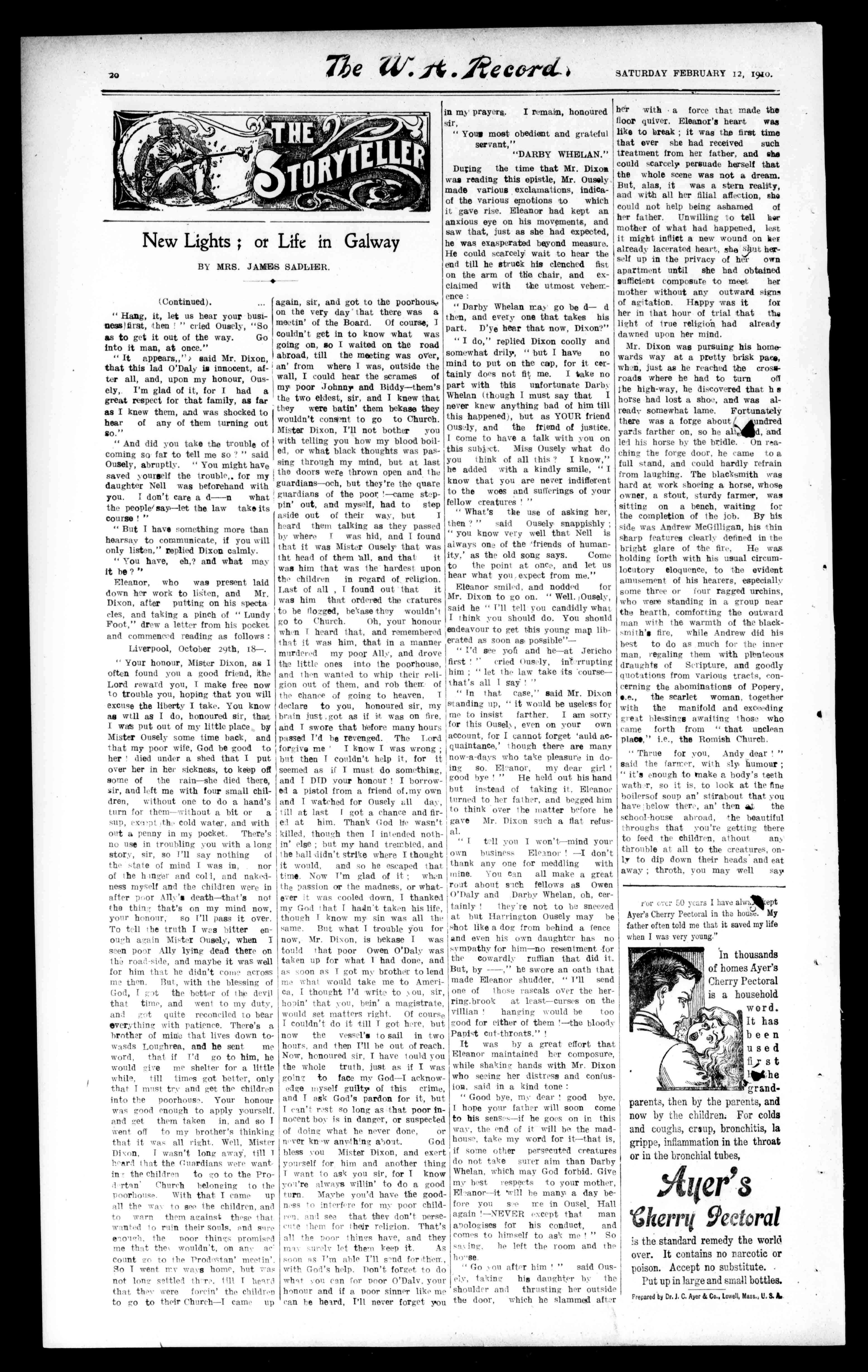 "Yourhonour,MisterDixon,asI oftenfoundyouagoodfriend,the Lordrewardyou,Imakefreenow totroubleyou,hopingthatyouwill excusethelibertyItake.Youknow willasIdo,honouredsir,that Iwigsputoutofmylittleplaceby MisterOuselysometimeback,and thatmypoorwife,Godbegoodto herdiedunderashedthatIput overherinhersickness,tokeepoff someoftherain-shediedthere, sir,andleftmewithfoursmallchildren,withoutonetodoahand's turnforthem-withoutabitora sup,exu'ptuth,coldwateeeandwith outapennyinmypocket.There's nouseintroublingyouwithalong story,sir,so saynothingof thestateofmindIwasin,nor ofthehingerandcoll,andnakednessmyselfandthechildrenwerein afterp,iorAlly'sdeath-that'snot thethinethat'sonmymindnow, yourhonour,so passitover. TotellthetruthIwasbitterenoueltagainMisterOusely,whenI seenpoorAllylyingdeadthereon thtroad-side,andmaybeitwaswell forhimthathedidn'tcomeacross methen.But,withtheblessingof God,Igetthebetterofthedevil thattime,andwenttomyduty, andgotquitereconciledtobear everythingwithpatience.There'sa brotherofminethatlivesdowntowasdsLoughrea,andhesentme word,thatifI'dgotohim,he wouldeivemeshelterforalittle while,tilltimesgotbetter,only thatImosttryandgetthechildren intothepoorhouse.Yourhonour wasroodenoughtoapplyyourself. andeatthemtakenin,andsoI Wentofftomybrother'sthinking thatitwasallright.Well,Mister Dienn, Iwasn'tlongaway,tillI heardthattheGuardianswerewantinthechildrentogototheProrten'Churchbelongingtothe poorhouse.WiththatIcameup allthewaytoseethechildren,and towarnthemagainstthesethat wantedtoruintheirsouls,endsere enonelethePoorthingspromised methatthe,wouldn't,onanyace countgototheProdeetan'meeting. SoIwentrevwayshome,buteras notlongsettledtiaratillIheard thattheywereMerin'thechildren togototheirChurch-Icameup