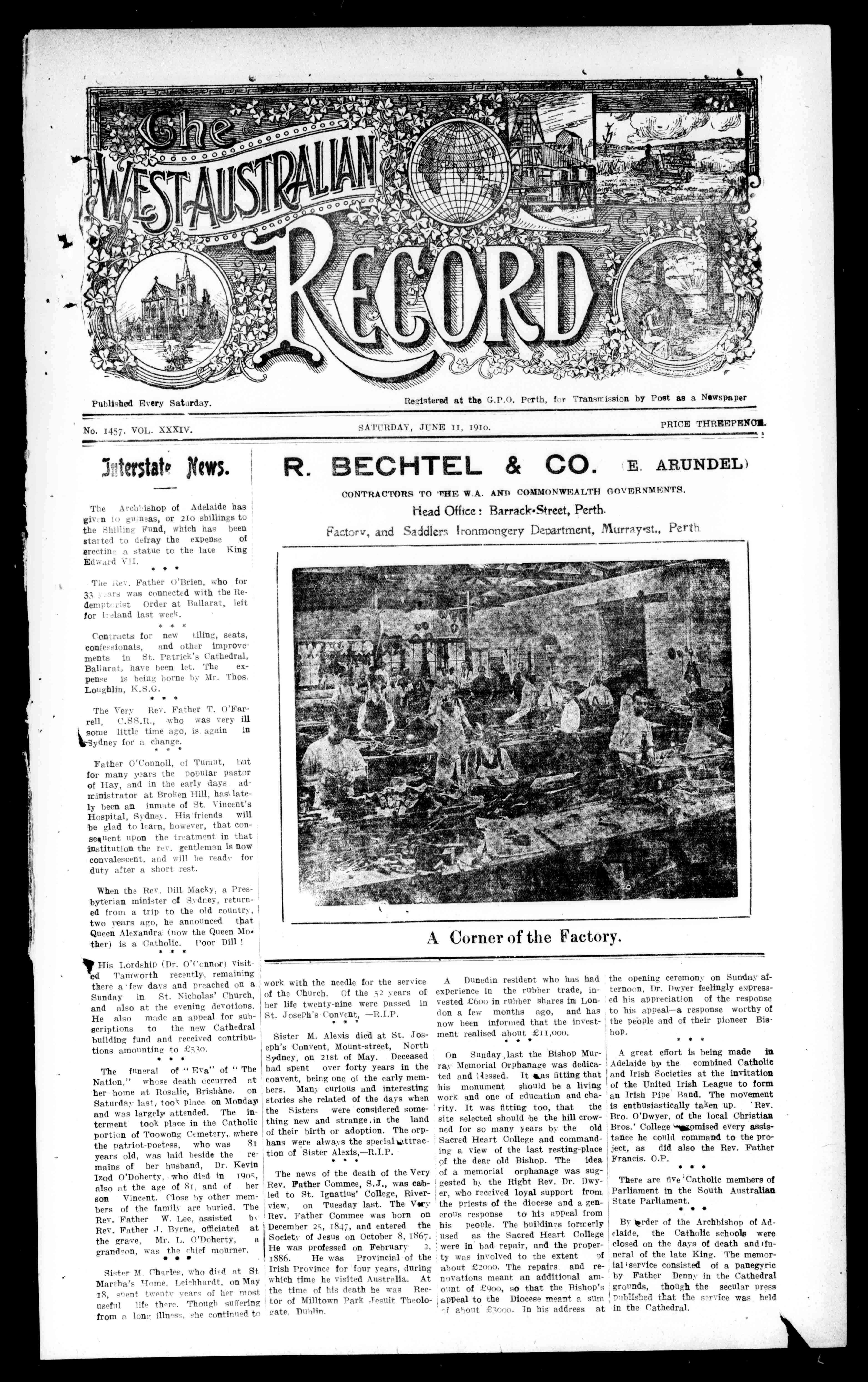 R.BECHTEL&CO.EARUNDEL CONTRACToTteToTHEW.A.ANDCOMMONWEALTHGOVERNMENTS. iieadOffice:BarrackStreet,Perth. Factory,andSaddlersIronmongeryDepartment,Murrlyst.,PerV-