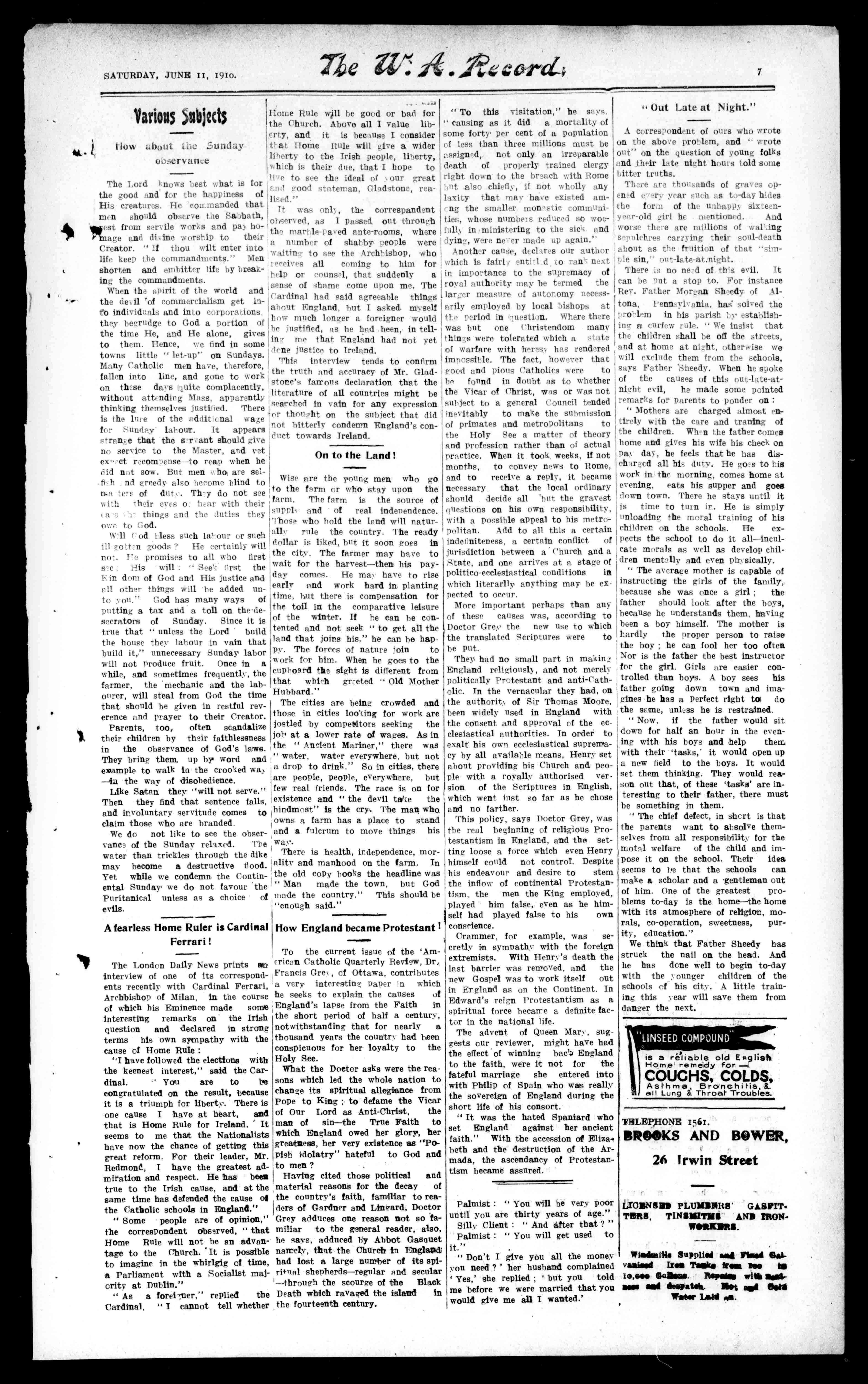 The"BelfastNews-Vetter,"dated Alas;rd,containsthefollowing:'l'heExecutiveCommitteeofthe GrandOrangeLodgeofBelfast, havingcarefullyconsideredthequestionoftheRecordershipofBelfast, havepassedthefollowingresoludor.:-"Weregretthatinconnection withtheRecordshipofBelfasteffortsarebeingmadeincertainProtestantcirclestopushtheclaimsof candidateswhosepoliticalandreligi!otisprinciplesarehostiletothose oftheLoyalistsofthecity.Asany suchappointmentwouldseriouslyinljarethefeelingsof.respectandconedencehithertoheldtyProtestants intheadministrationifthelaw, andwouldbebesideswholle werrantalleinviewofthefactthat therearemansthoroughlycapable (Protestantcandidatestoselectfrom, weproteststronglyagainsttheGovernment'sthrustinguponourcity aRecorderwhollyalienfromProtestentconvictionsandsmypathies, andweearnestlyurgeallLoyalist citizenstodissociatethemselves fromany.effortmadetosecuresuch appointment."