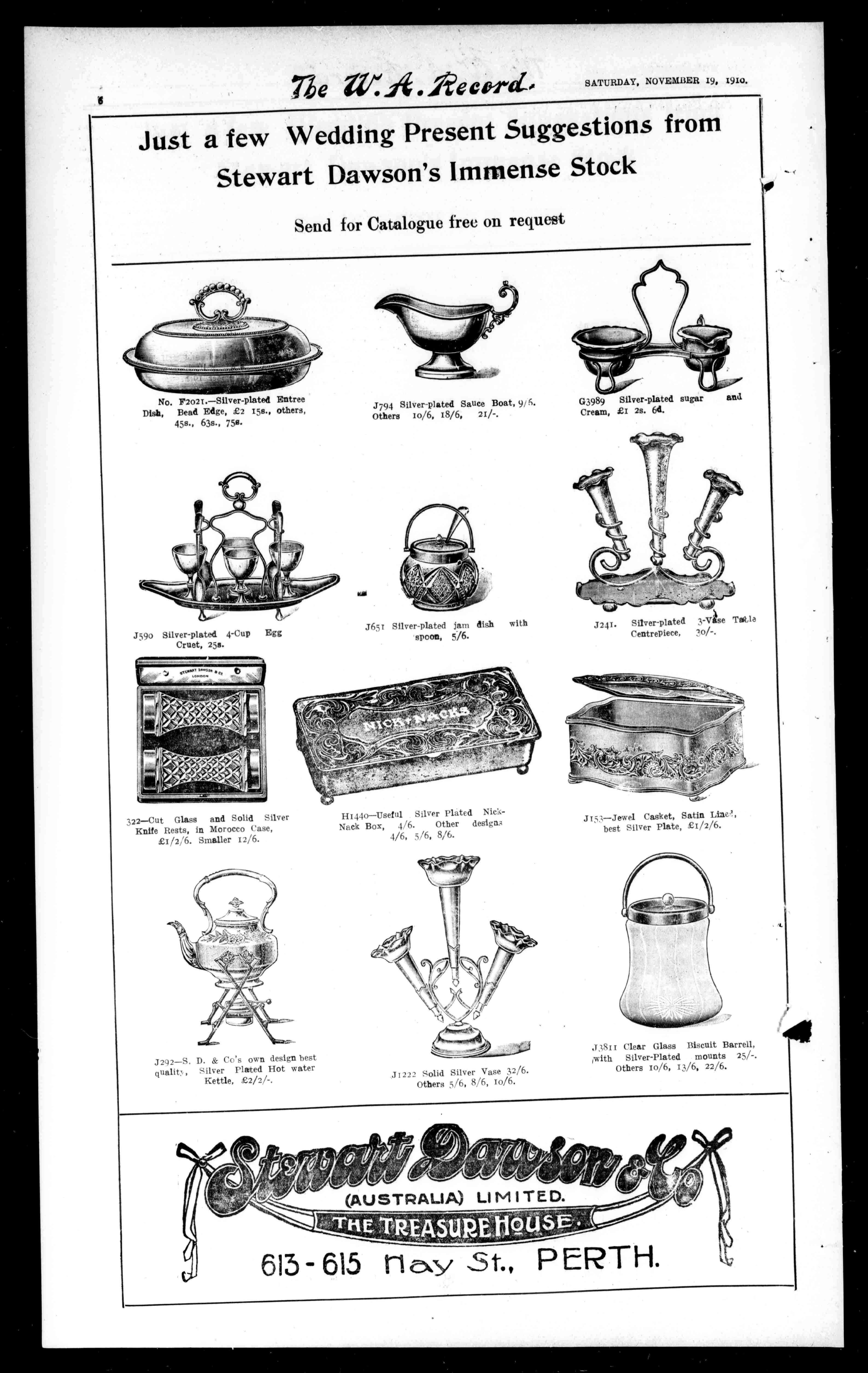 DON'TFORGETTHE ADDRESS J.J.SNIGG CORNERBARRACKANDMURRAYSTREETS.PERTH.