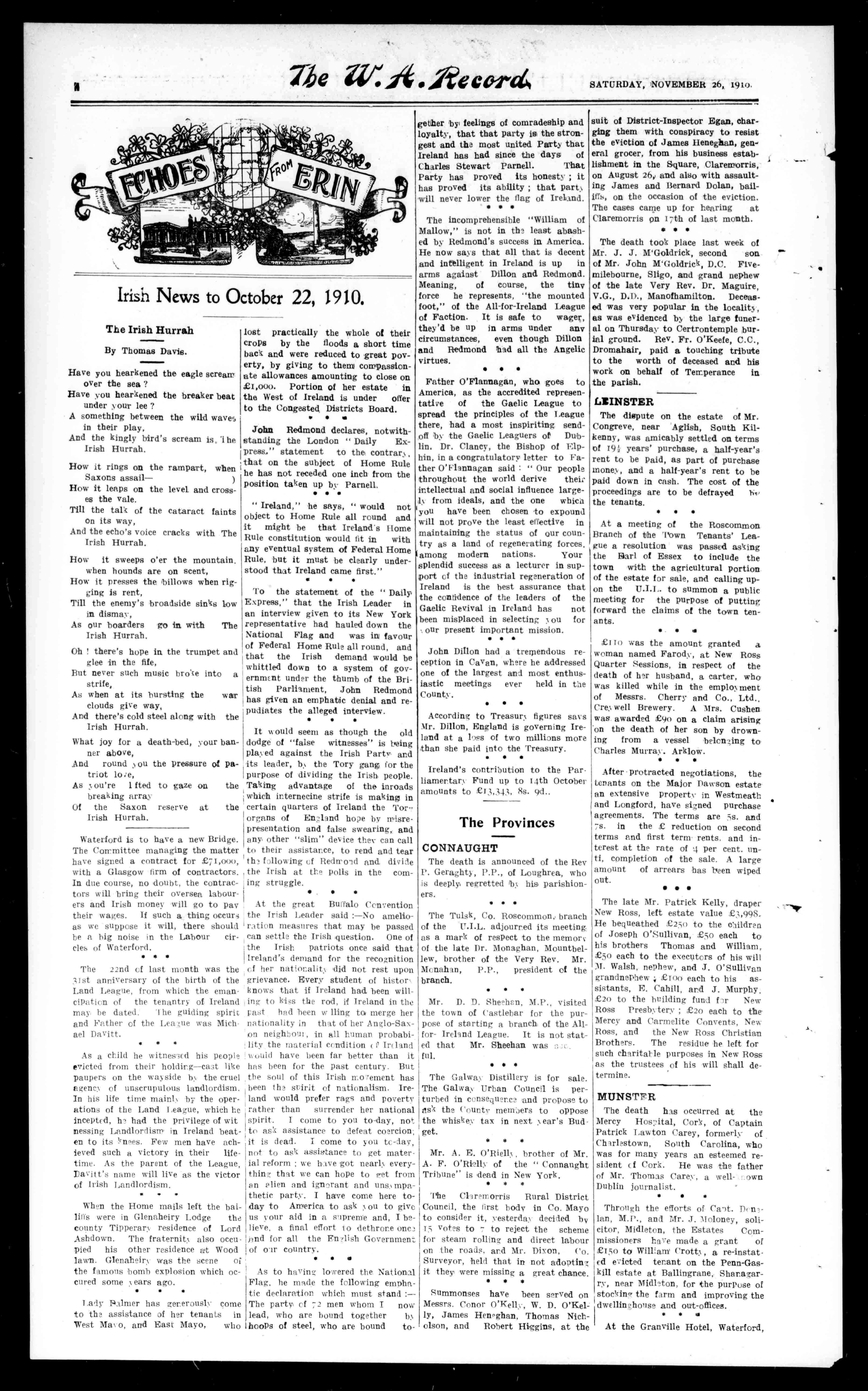 IrishNewstoOctober22,1910. TheIrishHurrah ByThomasDavie.