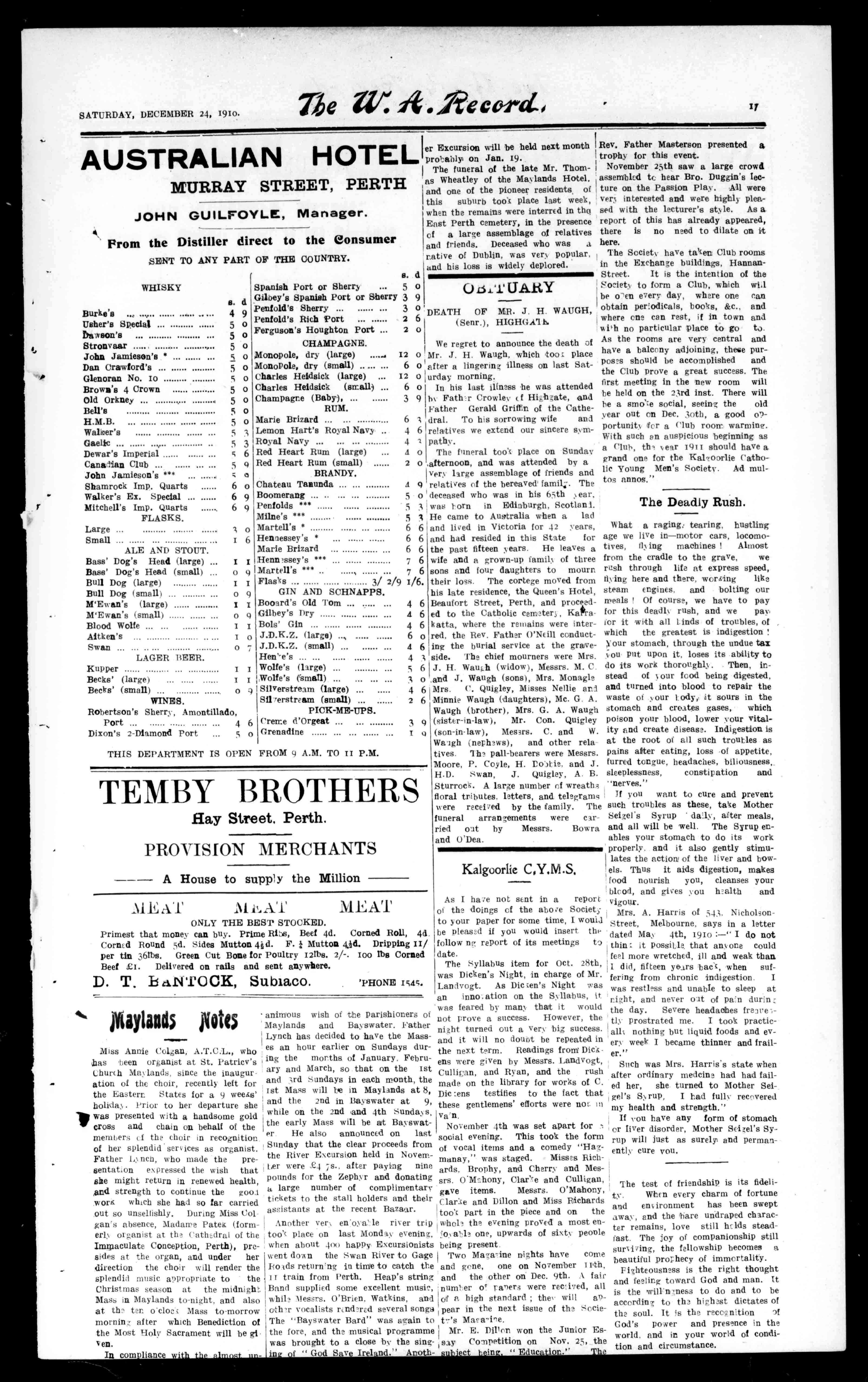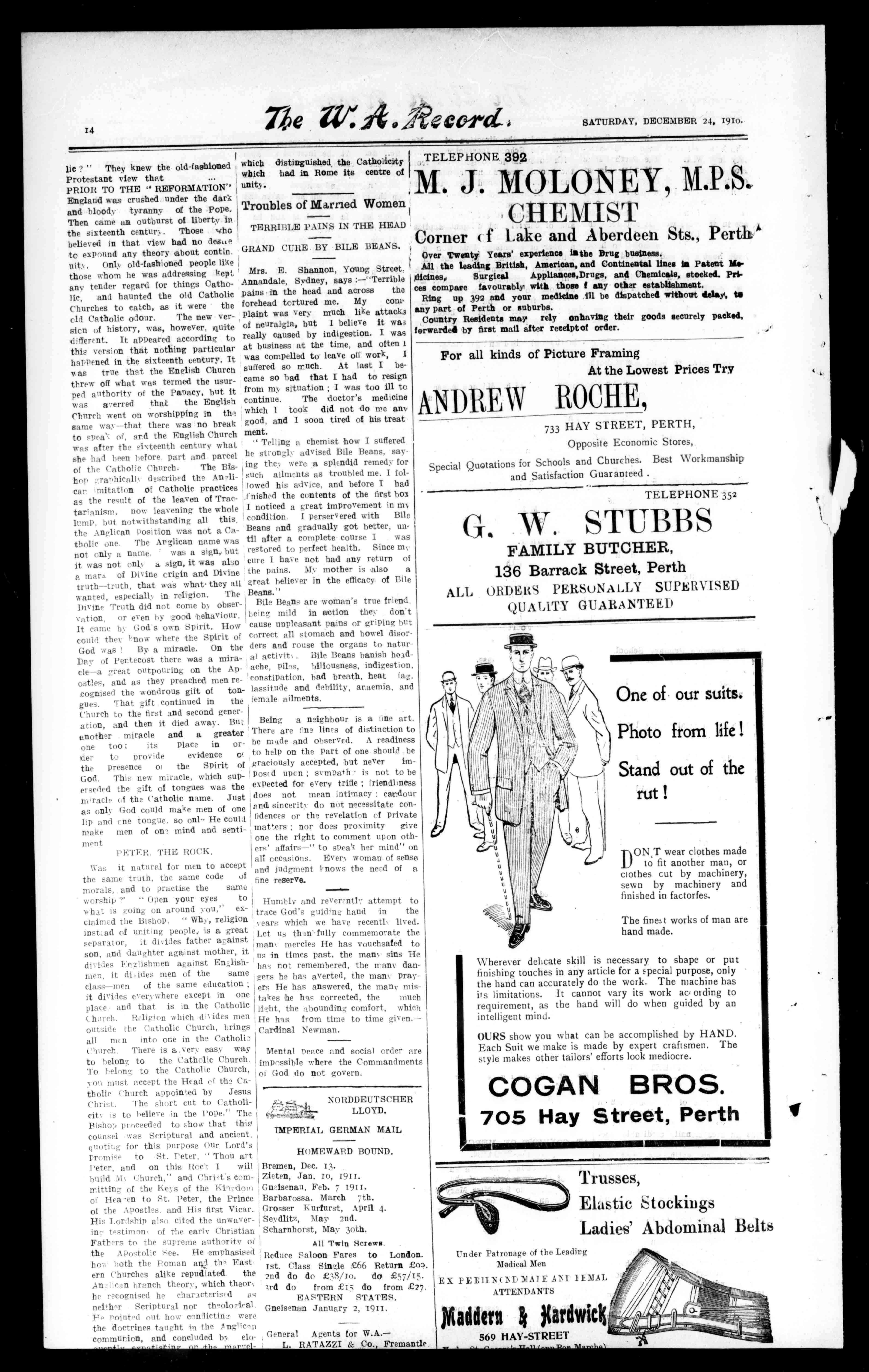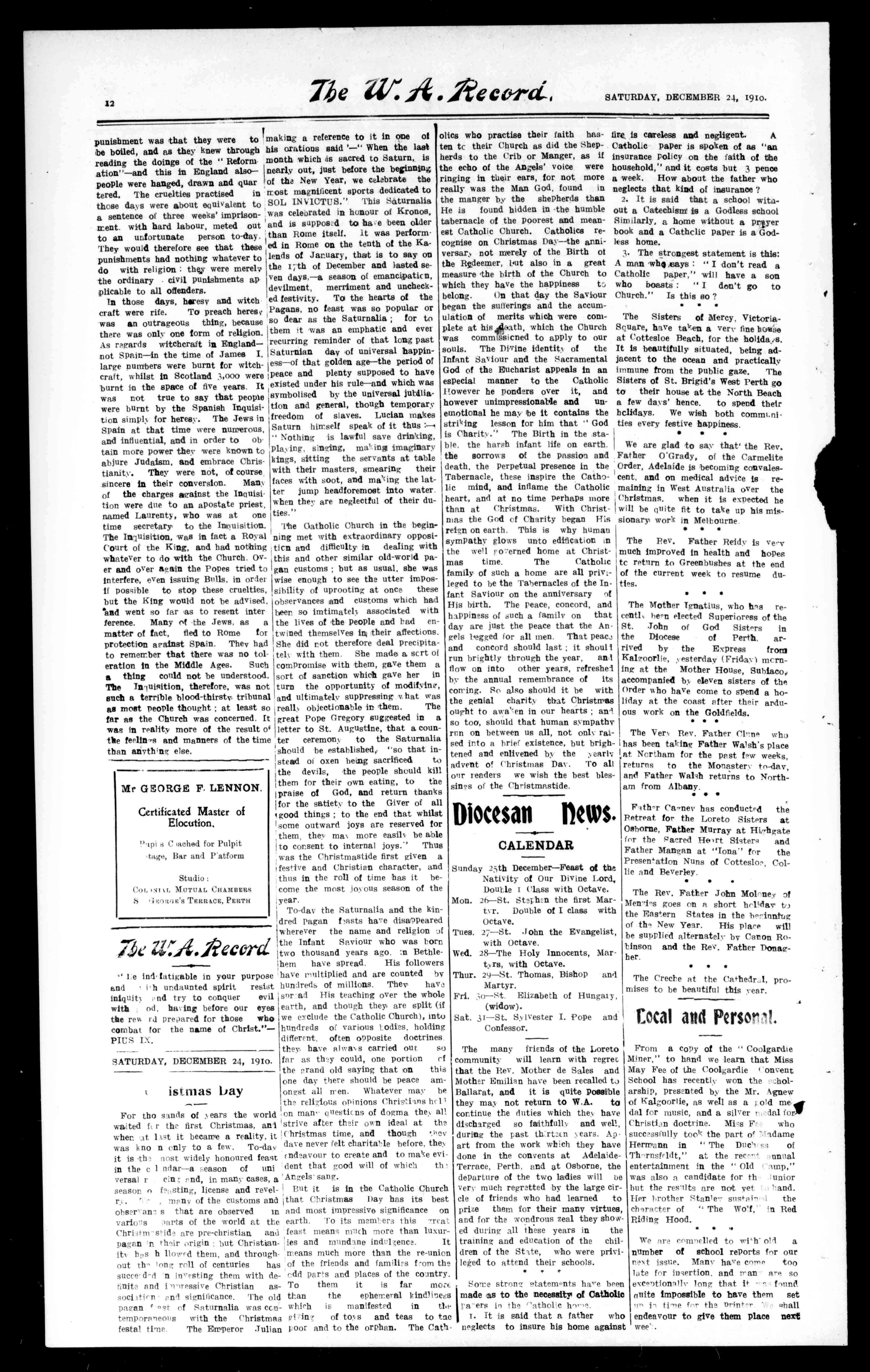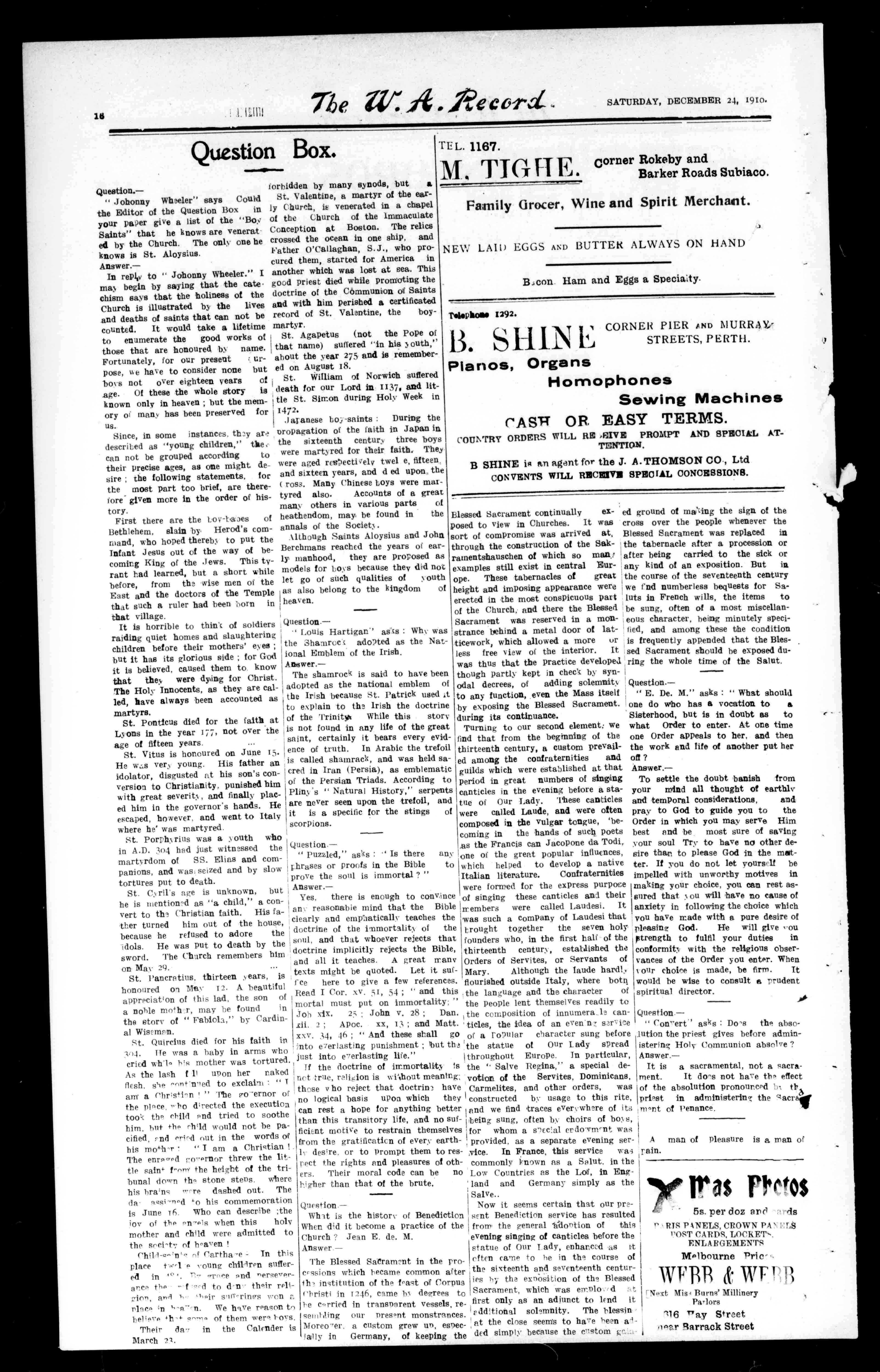 TheSodalityroominSt.Joseph';; ('onrent,Fremantle,wascrowded lastSunday(Dec.18),upontheoccasionoftileconsecrationofeighteenyoungladies,andthereception itothegreenribbonofsevenaspirants.AllwerepresentedlbySisters M.VeronicaandM.Alacoeue,and thePresident,.MissA.Townsend.The usualceremoniestookplace. The hymnsweresweetlyandheartily renderedbyalltheChildrenofMary whowerepresent.TheRev.FatherCox,UMI.,receivedtheconsecration.andalsoinvestedthenewmemeersaitheClueScapularofthe1mmac-::tteconcePtion.Inhisaddress eatulatedthenewlyconsecra iuth,ithappiness,andpointethowtheirconsecrationshould tietothetaasourceofconsolation, andofhove.Aftertheaddressthe hymn"The owismade,"was sung,whichwasfollowslatherecitedoftheLialeOffice.