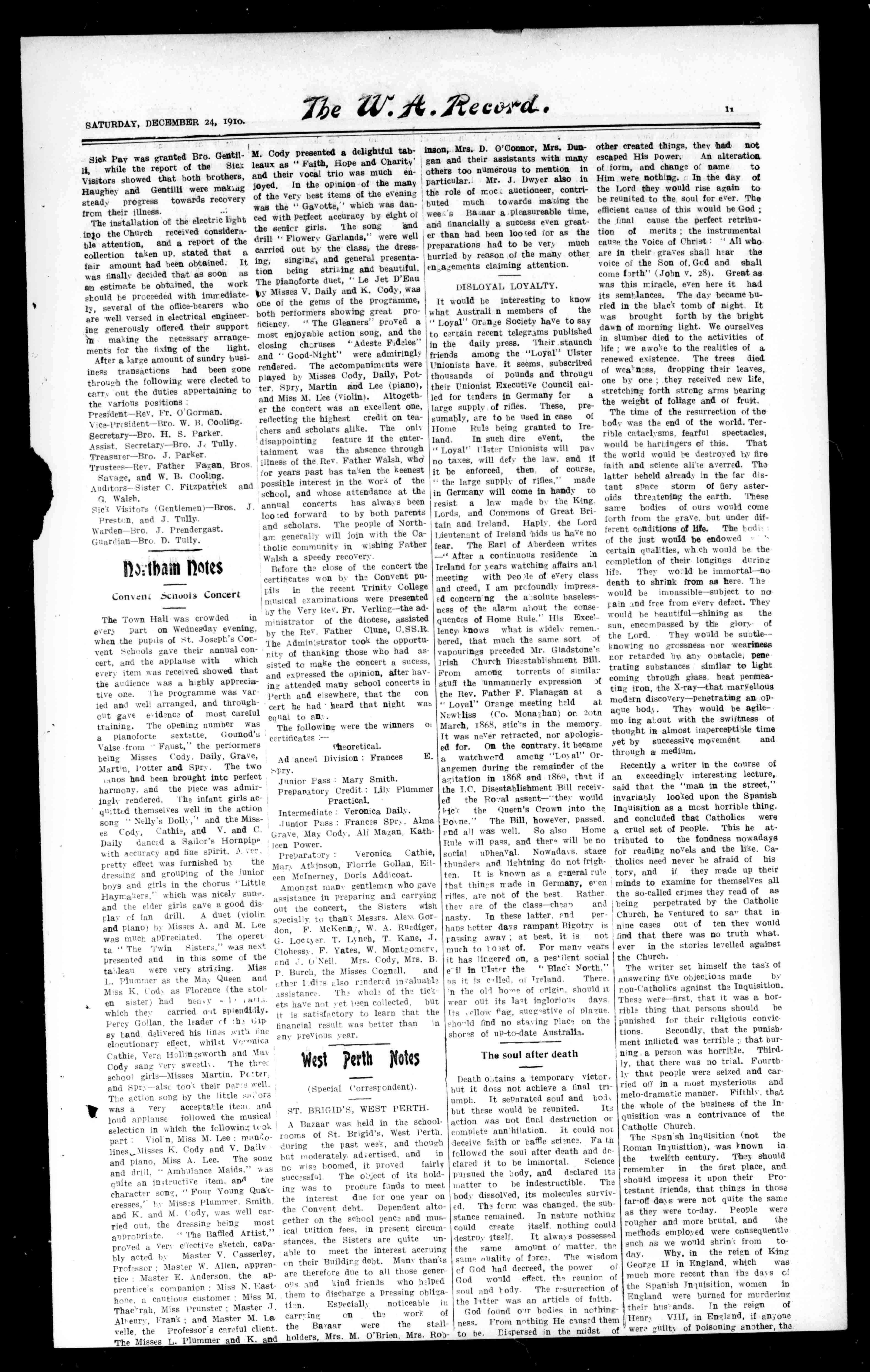 Formany,years,saysacorrespondentintheNewYork"Freeman's Journal,"ofOct.29,writingfrom St.Louis,therehasbeeninthis cityurgeatneedofanurserywhere Catholicmotherswhoareobligedto workduringthedaymihtplace theirsmallchildren,sovesterdaS Theirhest Rev.TimothyDempseypastorofSt. Patrick'sChurchandManagerof porridge, theWorkingmen'sHotel,whoarrivFatPigandGooseitselfoppose. edbutlastweekfromashortholiAndblasphemeCustardthroughthedayinIreland,completedarraneenose." meatsfortheestablishinentofaCatholicDayNusery.FatherDempsey hasleasedacomodioushouseatNo. 1019NorthSixthstreet.between CarrandWalshstreets.Itwillhe readyforoccupancyalmostimmediately,andDr.MaryLouiseLewisof TheQueen'sDaughters,willassume chargeofthefiftyormarechildren whowillheaccommodated.Father Dempseyandthosewhoassisthim inthis,hislatestcharitableenterprise.willhesurelyrewardedwith thegratitudeofneedymothers,who cannowco'totheir'employmentassuredthattheirsmallchildrenara beingcaredforandamuse& s Fewmovementsinthemissionof convertmakinghavearousedso muchenthusiasmastheregularSundayeveningserviceinthePaulist herchonColumbusavenue,N.Y., wheretheRev.WalterElliott,C.S.P. answersnuestionsofnon-Catholics, whoareanxtouetobnoasomething ofthetruedoctrinesofCatholicism,.