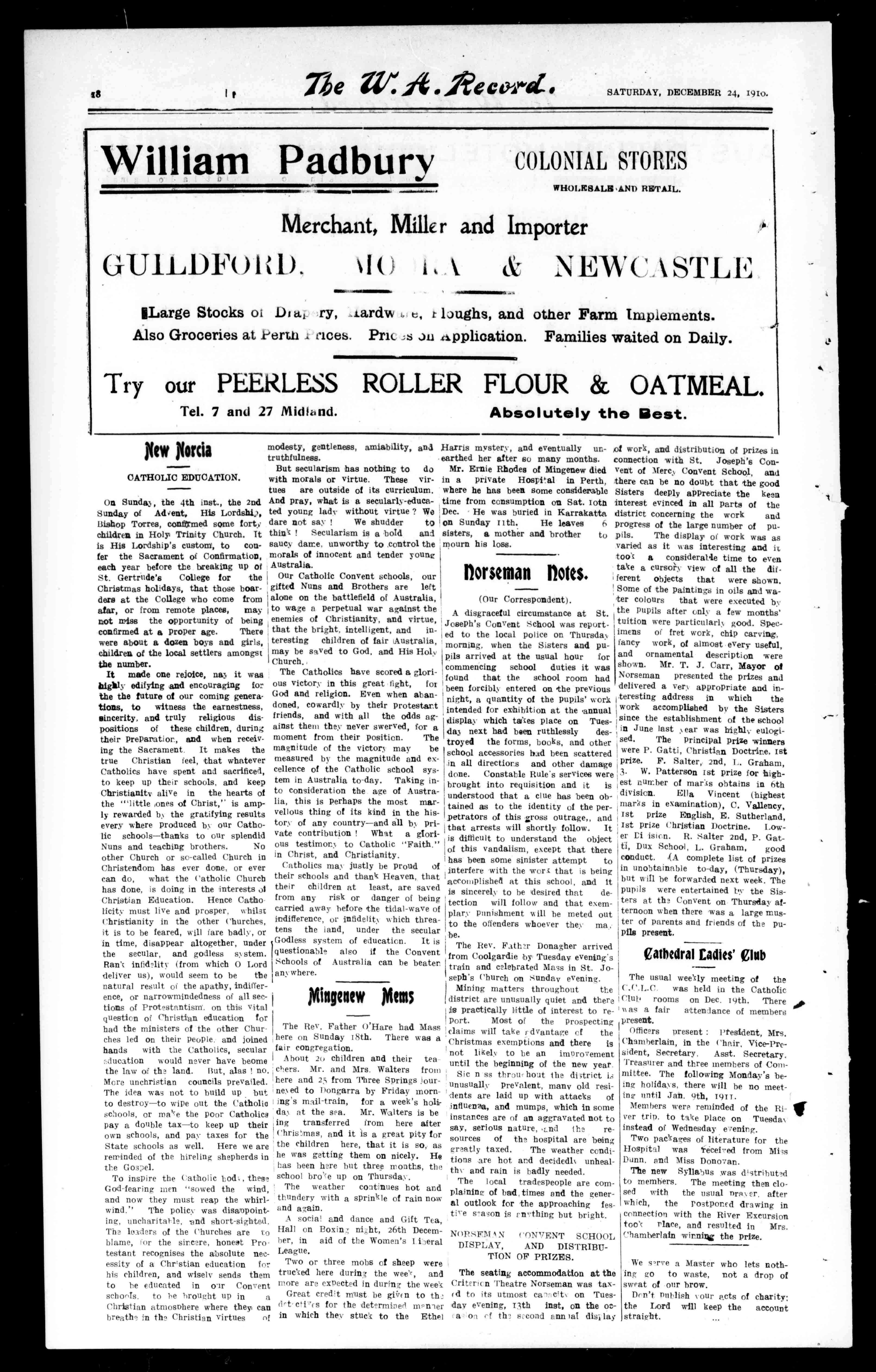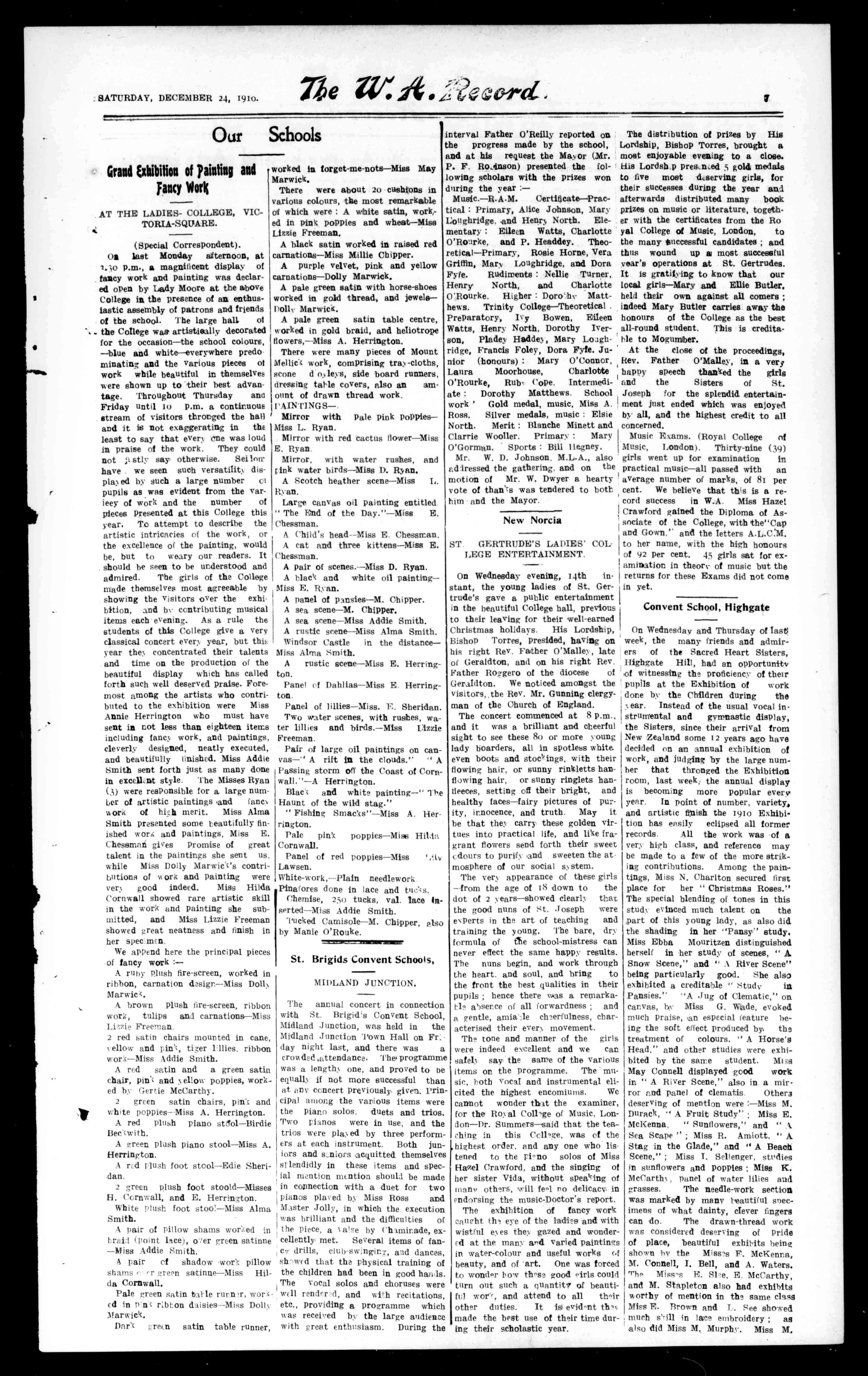 Atf1.3oa.m.,Sunday;December. ISth,theSundaySchoolteacher, MissStellaHowehadmuchPleasure inpresentingnolessthanfortyvaluableprizestothechildrenwho havebeenpayingmarkedattentionto catechismandrelieiousinstruction forthepresentyear.Theprizes consistedofhighli-instructiveand,religioushooks,whichmetwithuniversalanpreciation,eachrecipient's namebeinginsertedoneachbook. ThechiefPrizeswereprincipallyfor constantattendanceandproficiency inCatechism: Muchcreditisduetotheirable teacherwhohasleftnostoneunturnedinpromotingthewelfareof thenumeralschildrenentrustedto herdireandteachinMissStella Howe.