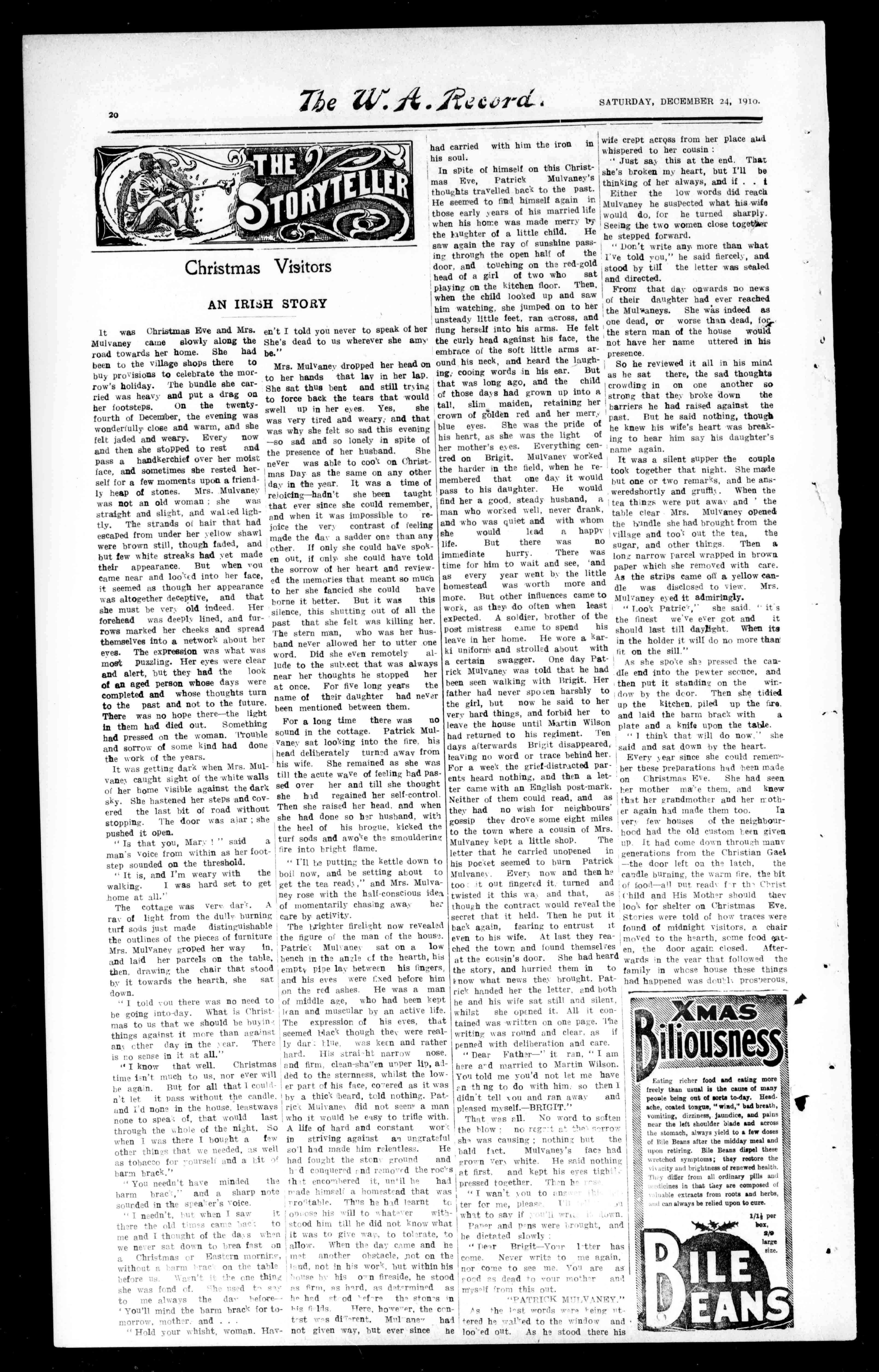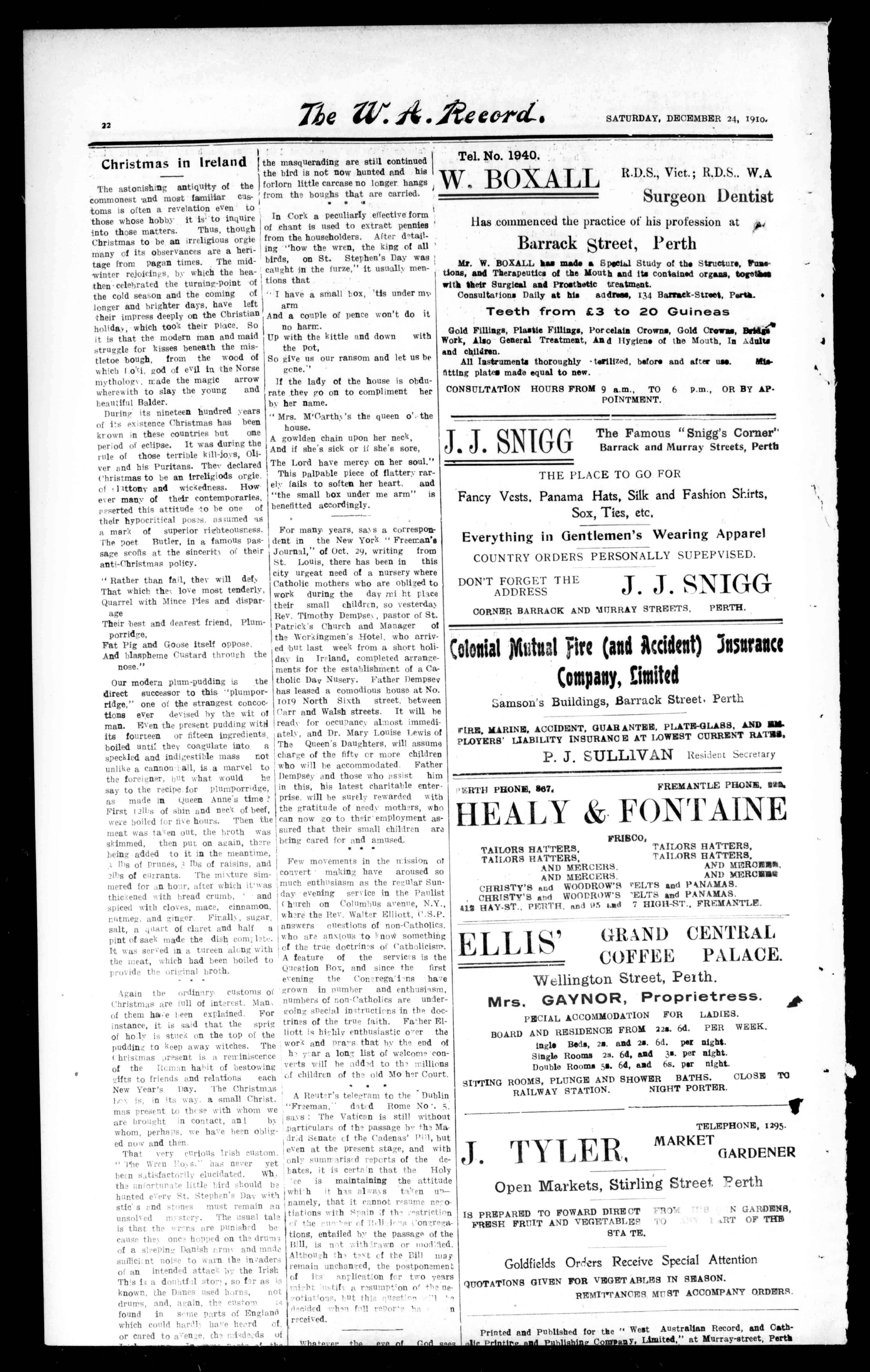 againtheordinary,customsof Christmasarefullofinterest.Man, ofthemha."eeenexplained.For instance,itissaidthatthesprig ofholyisstuckonthetopofthe puddingtokeepawaywitches.The (hristmasoresentisareminiscence oftheRumenhabitofbestowing -giftstofriendsandrelationseach NewYear'sDay.TheChristmas lesis,initsway.asmallChrist. maspresenttothosewithwhomwe arebroughtincontact,an1 by whom,perhaps,wehavebeenobligednowandthen. ThatverycuriousIrishcustom. "TheWren s."hasneveryet beensatisfactorilyelucidated.Wh, theunilrturAtelittlebirdshouldbe huntedeverySt.Stephen'sDaywith stiearndstonesmustremainan unsolvednostem-.Theusualtale isthatthearmsarePunishedbe. causetheone.,hoppedonthedrums ofaslseeine.Danisharmyandmade suffici,ntnoisetowarnthein:aders ofanintendedattackbytheIrish Th,sI.;adouatf.ilatom'sofirasis known,theDanesusedhorns,not drums,and,main,thecustoma foundinssinepartsofEngland whichcouldharillihatheardof. orcaredtoavemze. rsialsadsof